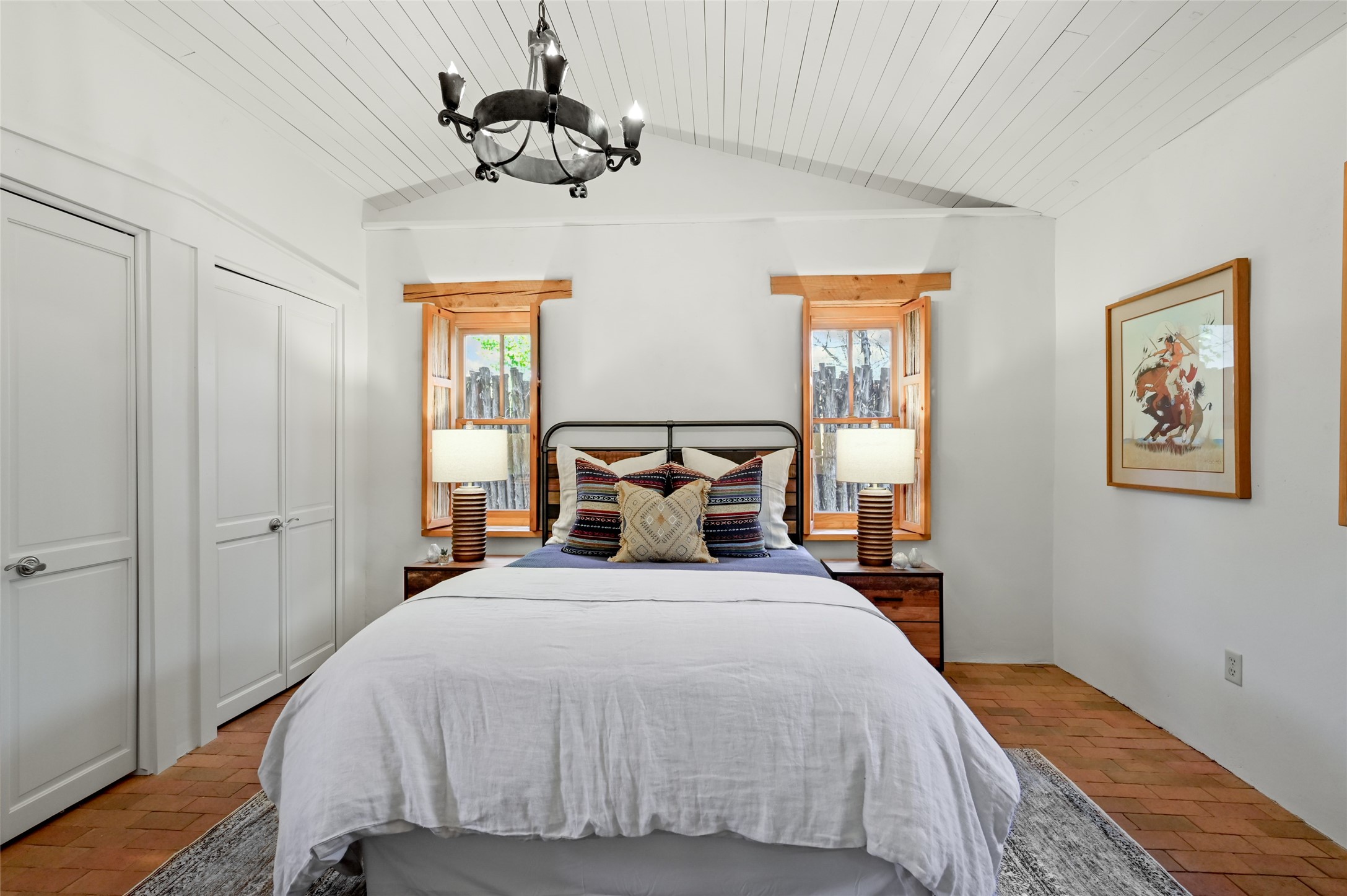 Discover the perfect gated downtown pied--terre--an ideal getaway second home or an effortless lock-and-leave casita for full-time living in Santa Fe. This charming residence features classic Santa Fe character throughout, including brick floors, hand-crafted wood shutters made with latillas, and timeless post-and-beam accents. High ceilings enhance the sense of space, while radiant heat keeps the home cozy and warm. Enjoy privacy, convenience, comfort, and the benefit of new appliances in a beautifully maintained, inviting retreat.