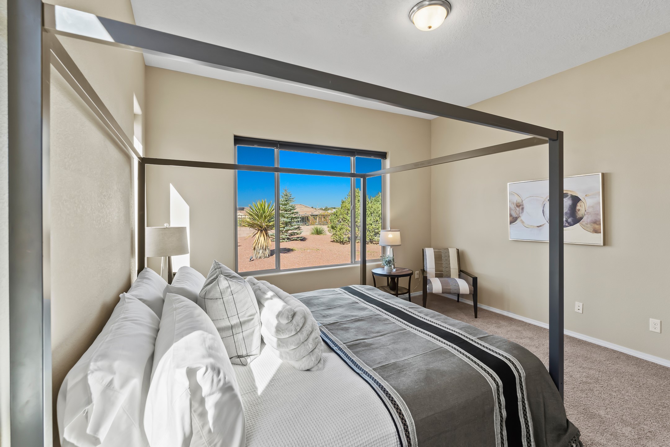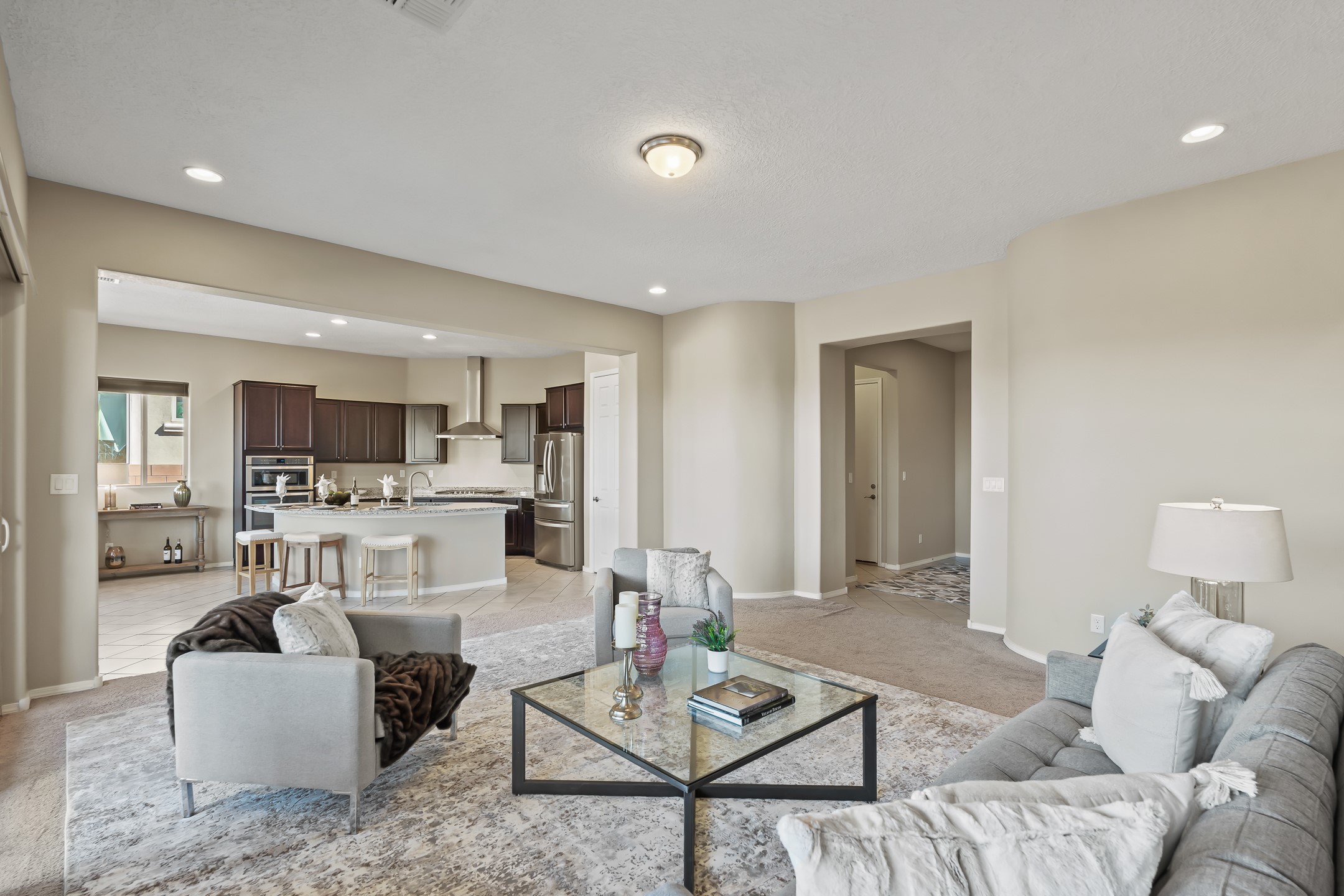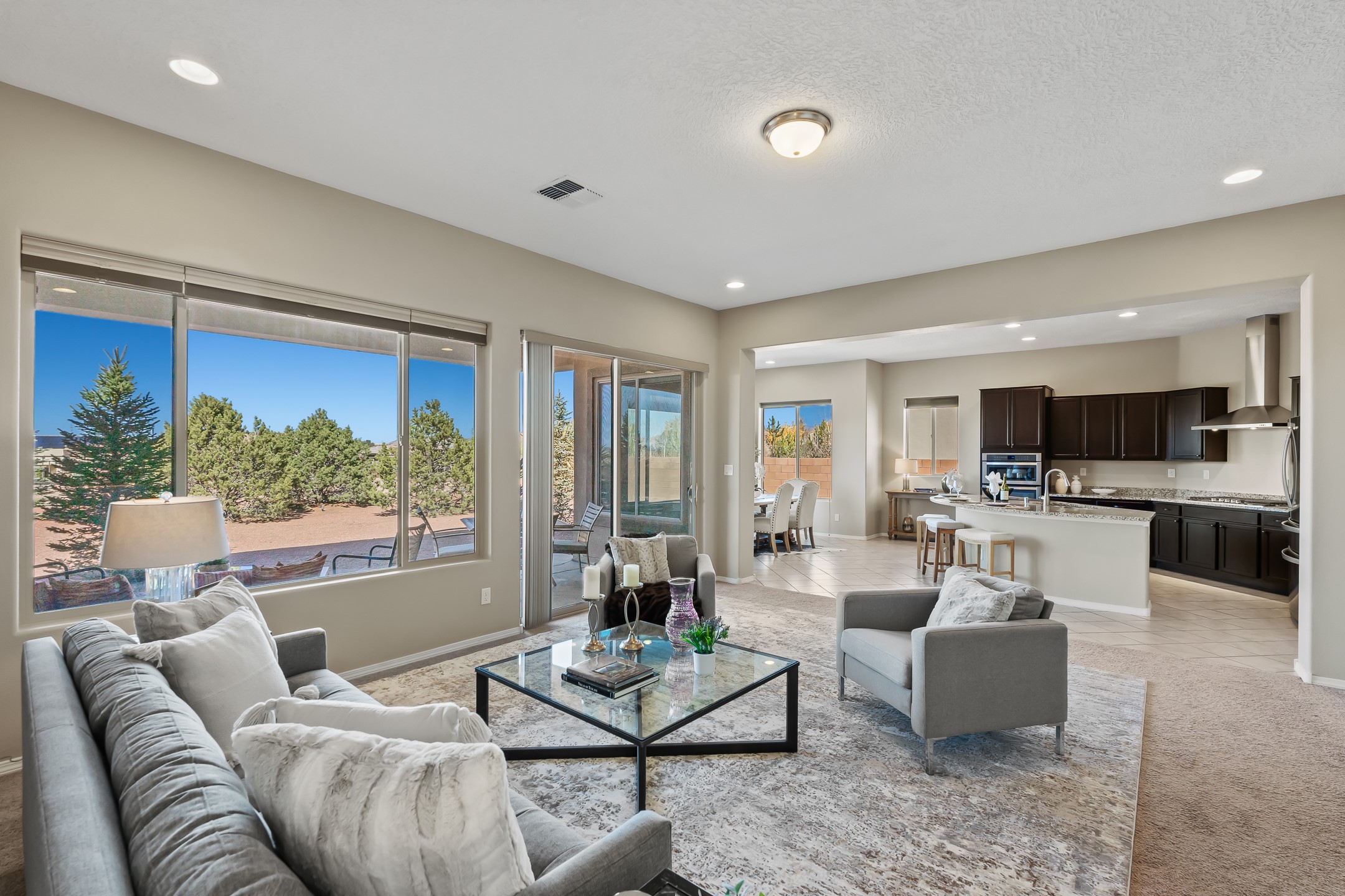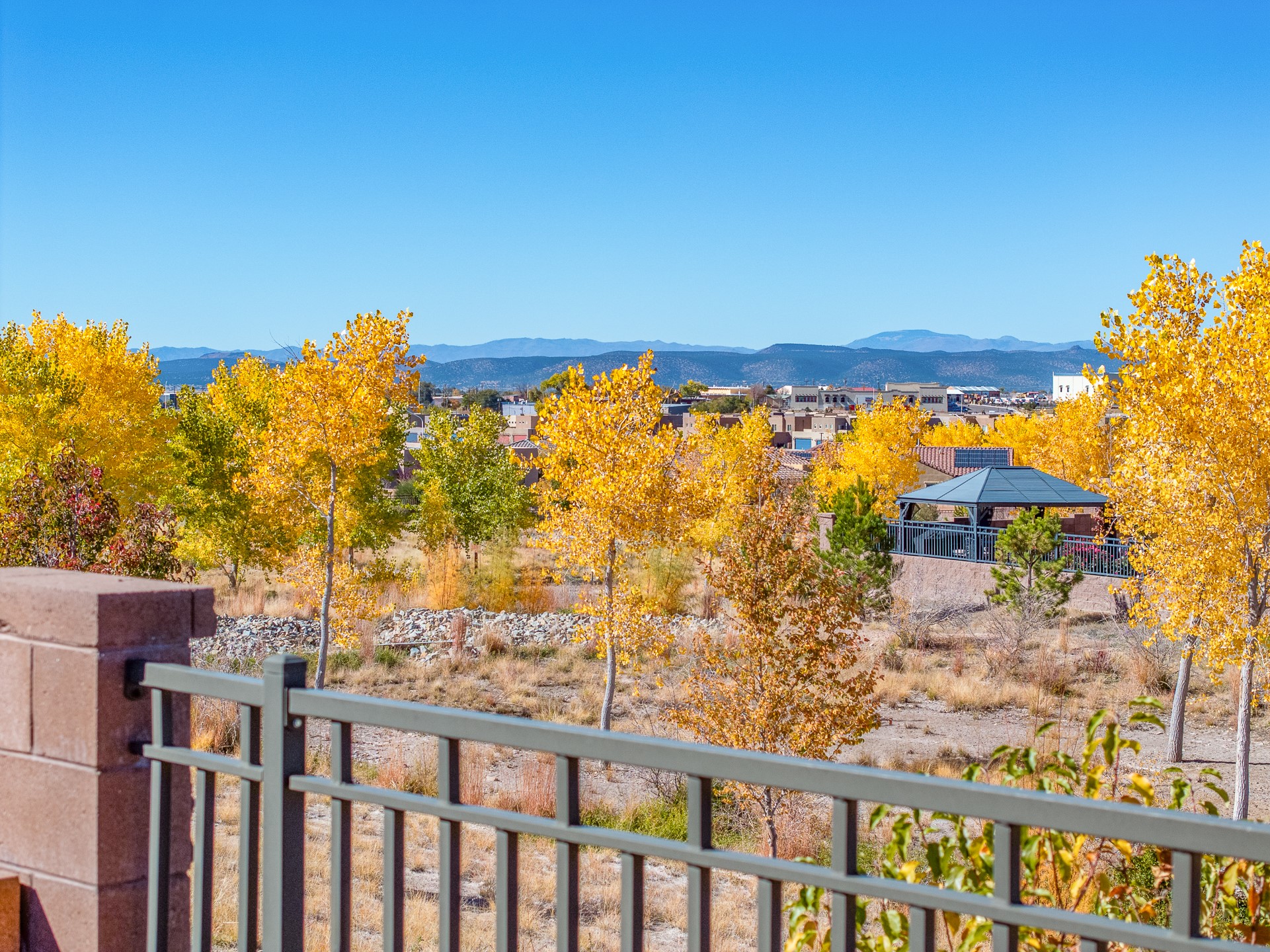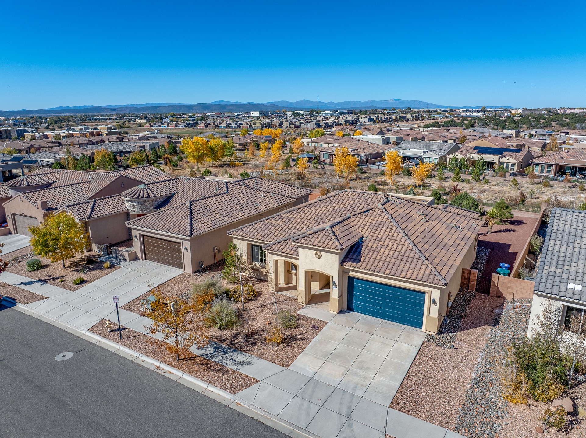 Positioned on a premier elevated lot, this refined single-level residence frames breathtaking views and glowing New Mexico sunsets. Designed for effortless living, the 3-bedroom, 2-bath floor plan spans about 2,045 sq. ft. with sun-filled open spaces, a dining bay window that captures the light, and well-crafted finishes that balance comfort and style.The 3rd bedroom is a 3-walled flex space --ideal as an office, studio, or den--and was thoughtfully designed to be easily enclosed if a true bedroom is desired.Outdoors, an artfully landscaped yard unfolds with evergreens--yucca, blue and green spruce, ponderosa, and pion--creating a serene natural backdrop for morning coffee or evening skies painted in color. Tucked within a quiet setting near scenic trails, the home offers both tranquility and convenient access to Santa Fe, Albuquerque, and nearby amenities.This combination of setting and views are rare in the Las Soleras community, an exceptional opportunity not to be missed.