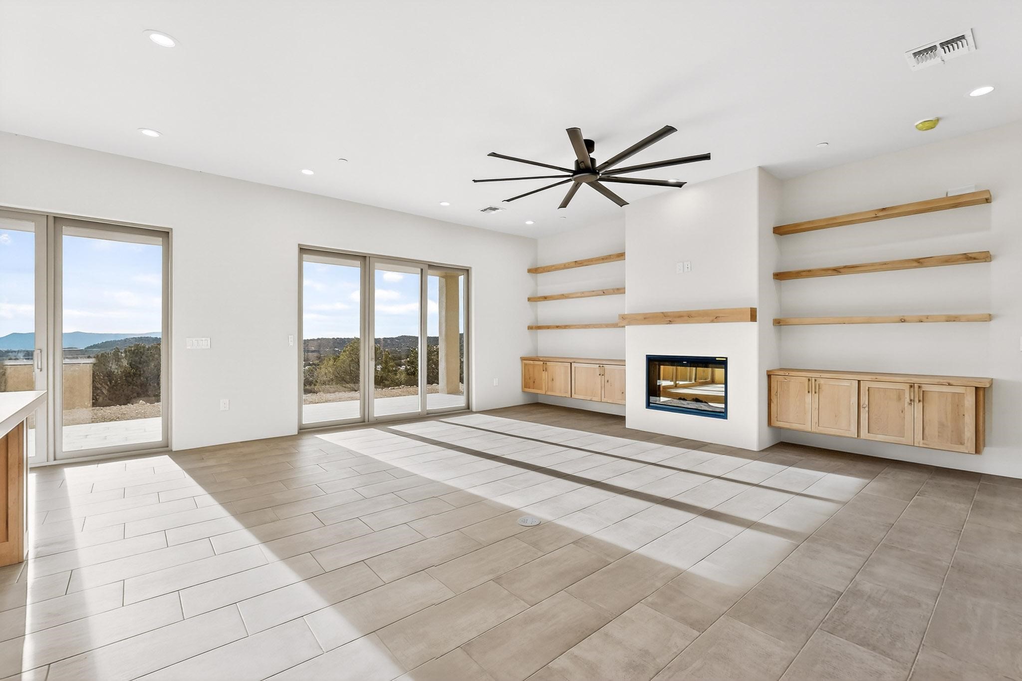 New Construction. Located in the exclusive Longview gated community, this 3-bedroom, 3-bath home with a 3-car garage offers breathtaking views of the Sandia and Galisteo Basin. Thoughtfully designed with two primary suites plus an office, the home features custom cabinetry, a walk-in pantry, and light-filled open living spaces. Enjoy seamless indoor-outdoor living, a spacious three-car garage, and the tranquility of one of Santa Fe's most sought-after settings. Owner/Broker.