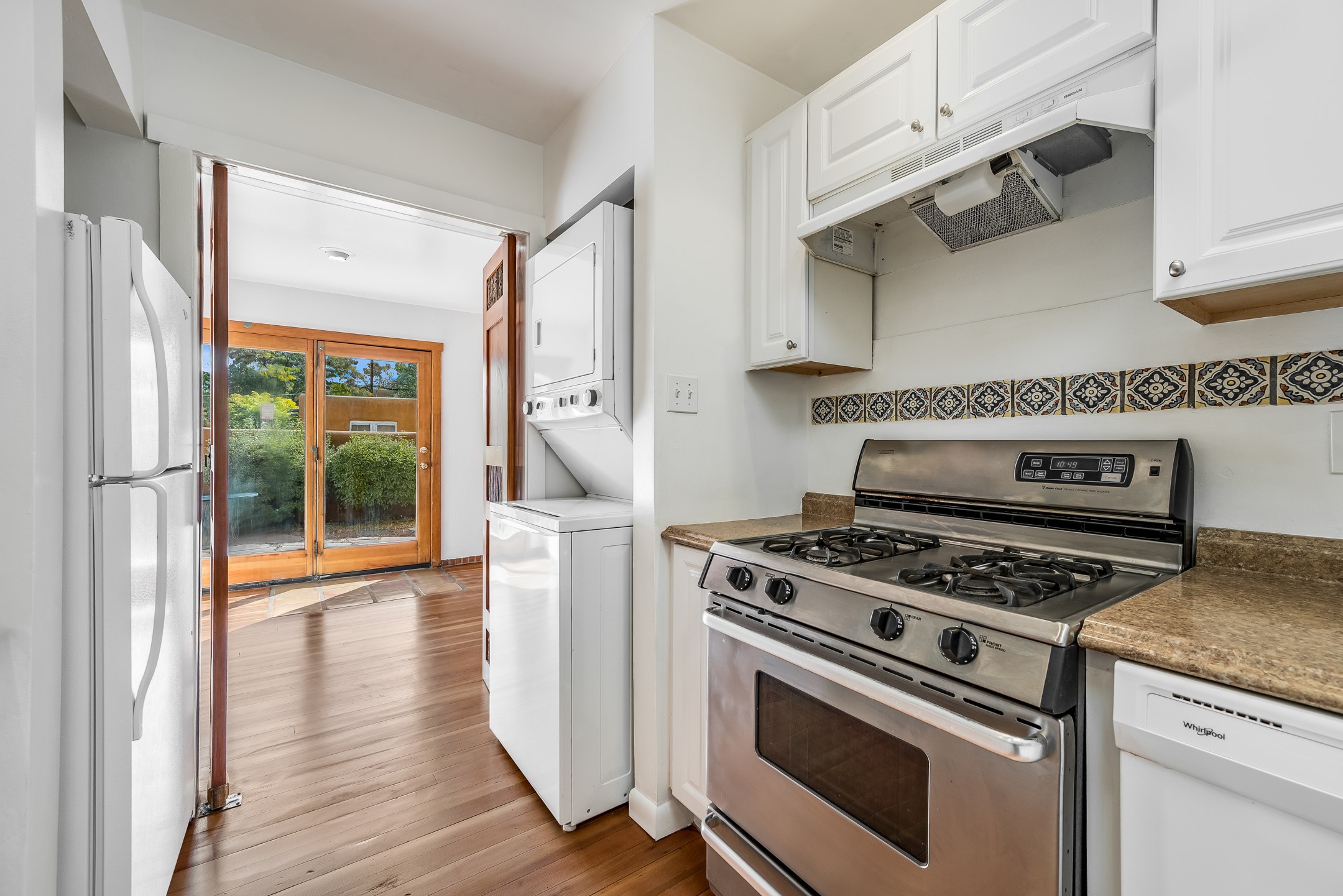 This quintessential Santa Fe style property offering Kiva fireplace, willow doors, Talavera and Saltillo tile, nichos, a walled courtyard, and off-street parking is tucked away in the much sought after Railyard Arts District. The setting is peaceful and quiet yet only a quick 5 minute jaunt to The Violet Crown, Farmer's Market, park, outdoor concerts, coffee shop, pubs, restaurants, and the vibrant vibe offered along Guadalupe Street! About a 15 minute walk to The Santa Fe Plaza where you will find work shopping, class dining, and galleries along with stellar museums. Walking and cycling trails are minutes away making this the perfect urban home. One can even hop on the train for a ride to Albuquerque! Opportunities Abound for this property which features a home with attached guest house. You can live in one unit and rent the other or rent them both! There is even room to add a casita! Easy access to St. Francis Drive is a plus for those who commute to Los Alamos! Both units offer office space for those who work from home. A Must See!