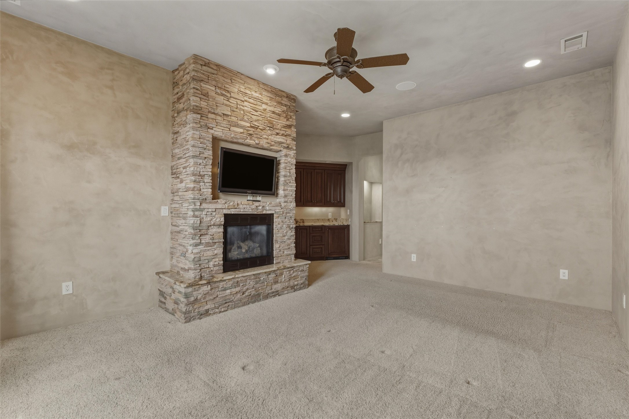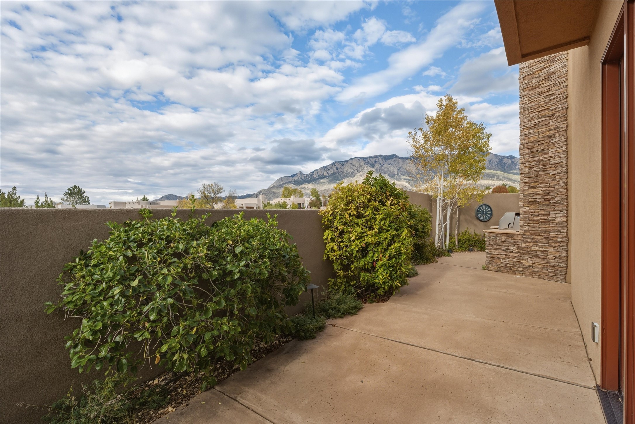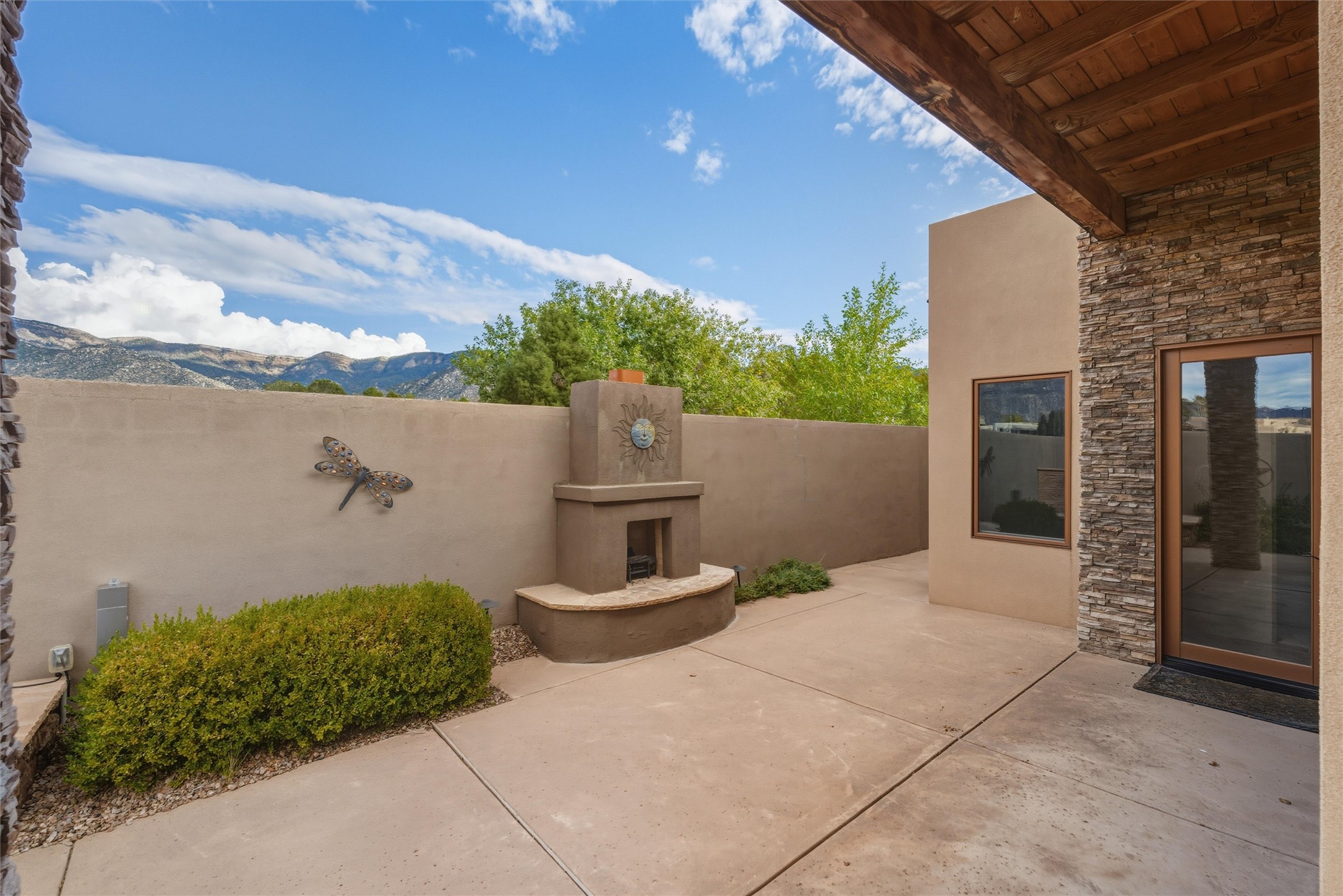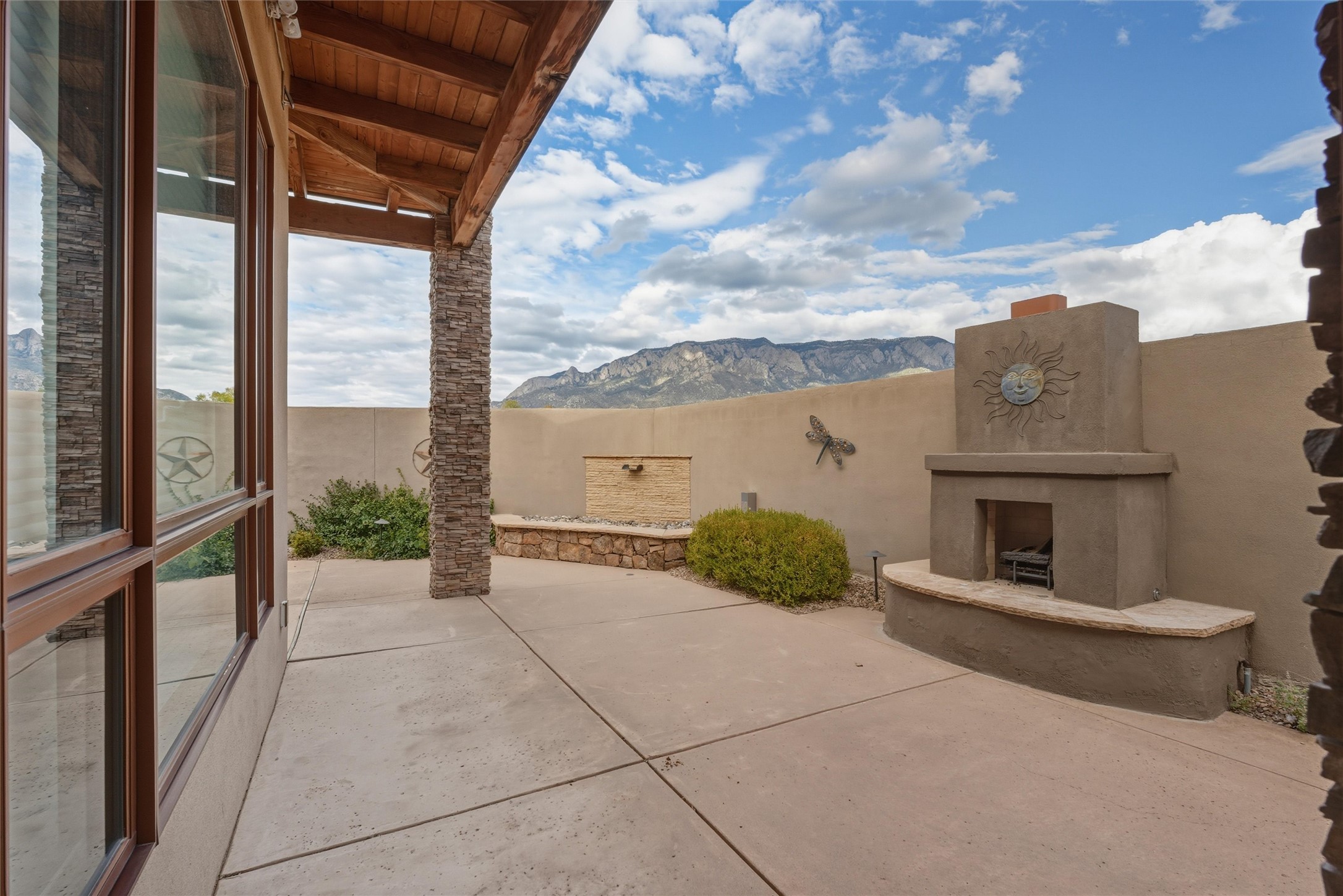 Discover a rare custom masterpiece at The Legends, where luxury and tranquility meet. This artfully designed home offers seamless indoor-outdoor living, highlighted by a chef's kitchen w/ all SS applainces & Sub-Zero wine storage, elegant great room for entertaining, and a spa-inspired primary suite with fireplace, steam shower & private patio. Enjoy alfresco evenings by the waterfall and outdoor fireplace. Private 2nd primary bedroom, potential basement wine cellar & gated privacy on a serene cul-de-sac make this residence an ultimate retreat for refined living near the Sandia Mountains. The owned solar system, full finished basement and privacy in this quiet High Desert community welcomes you home to serenity and peace. One owner has maintained this custom built and updated property.