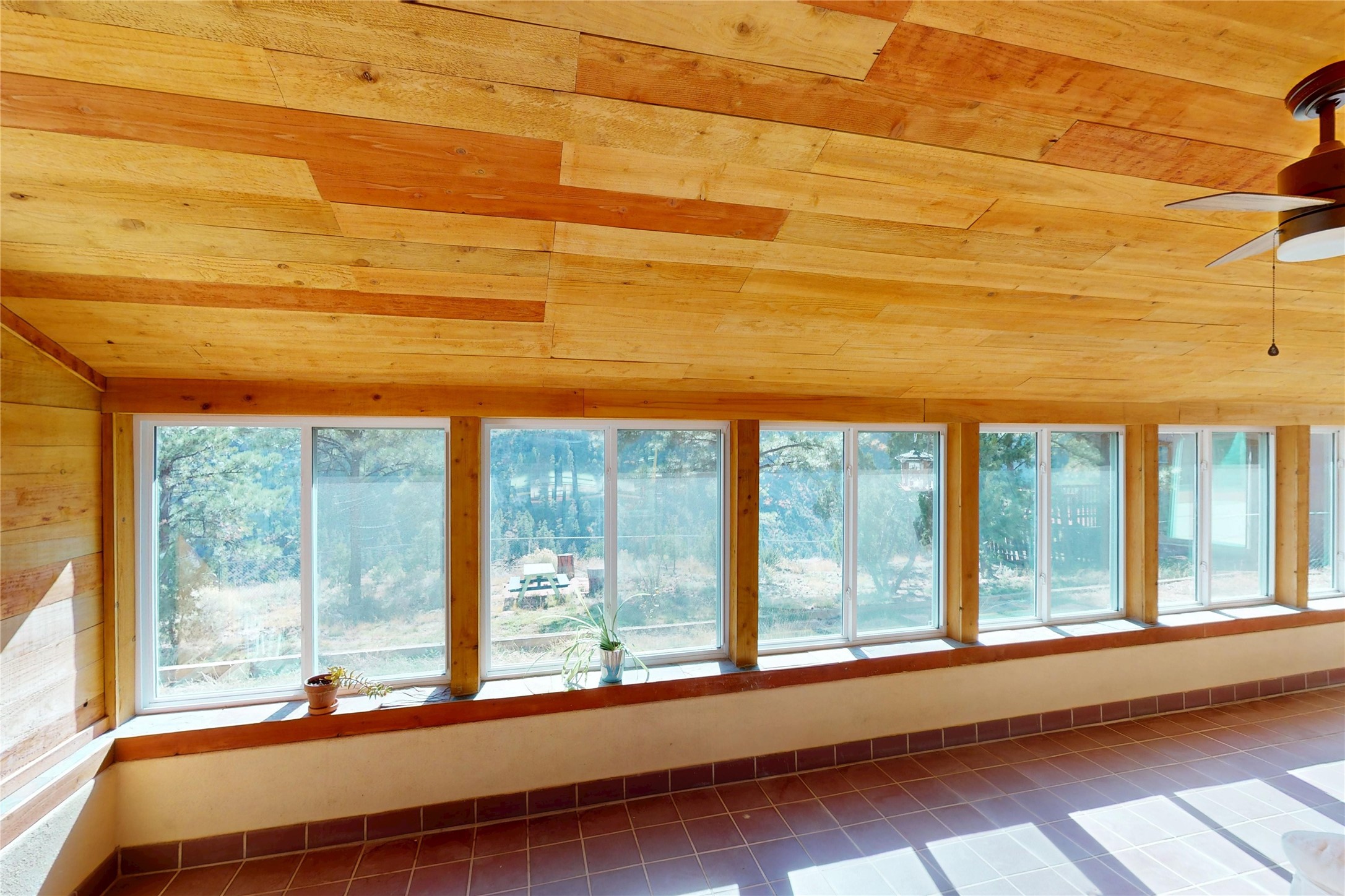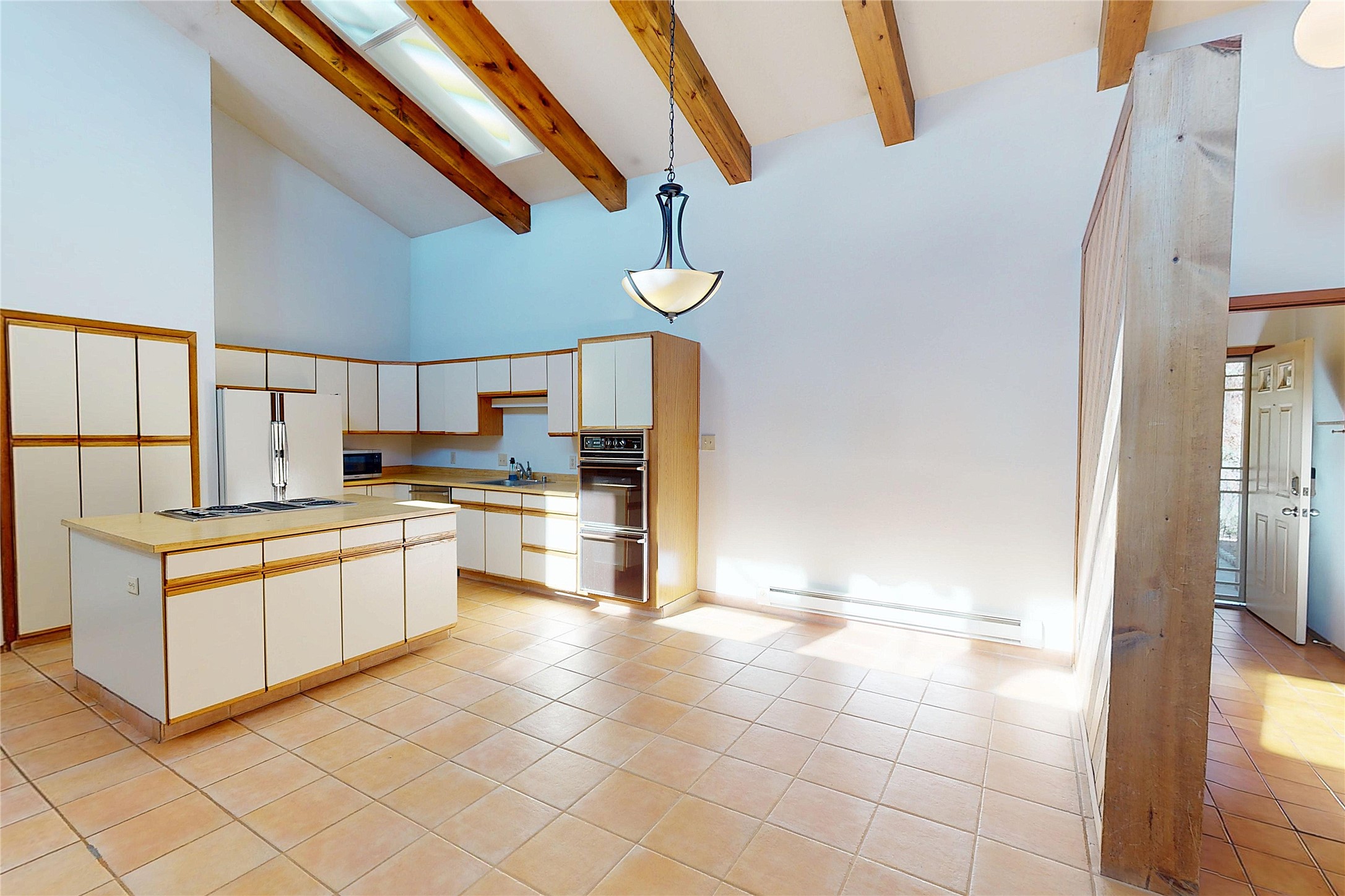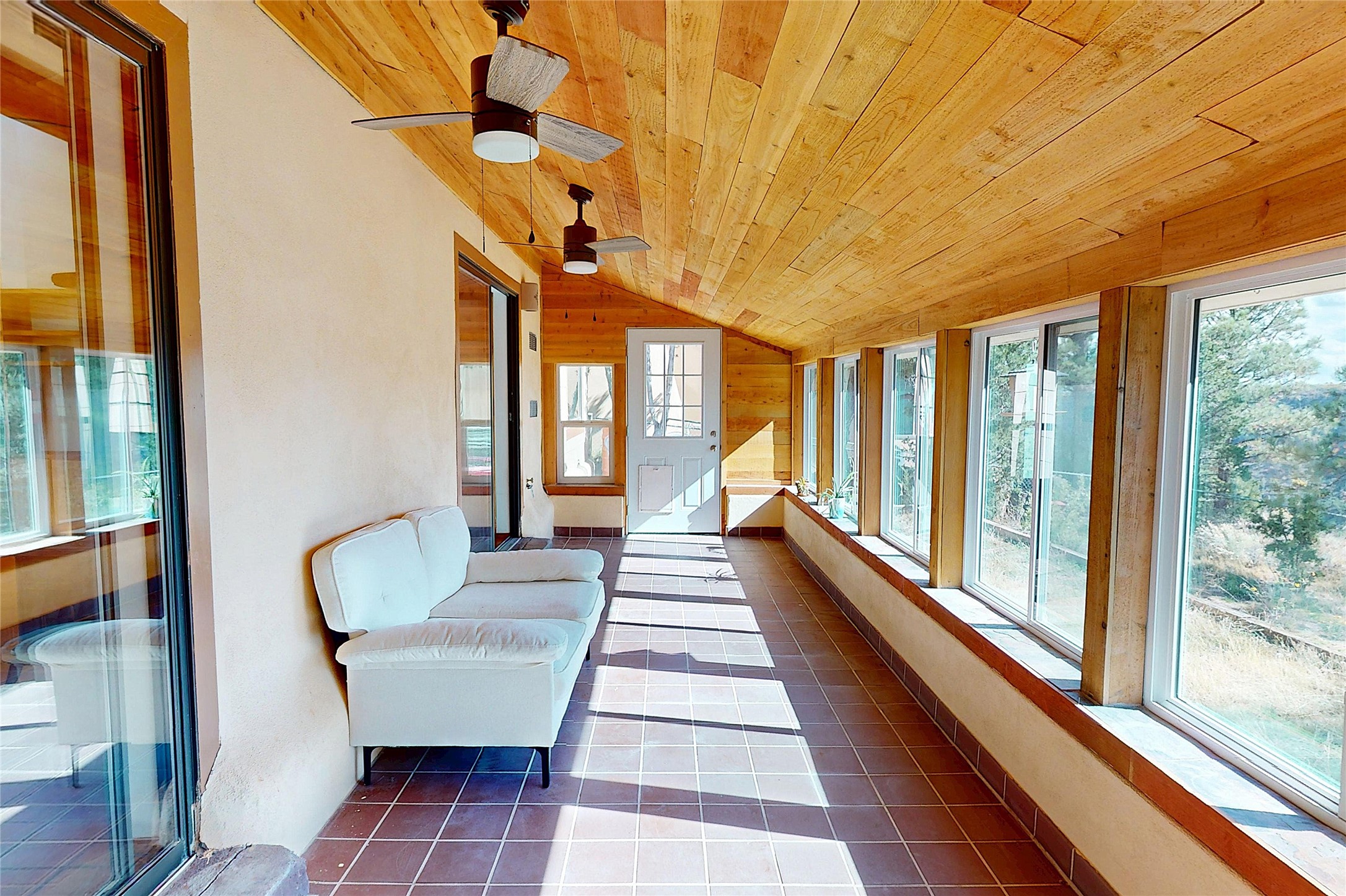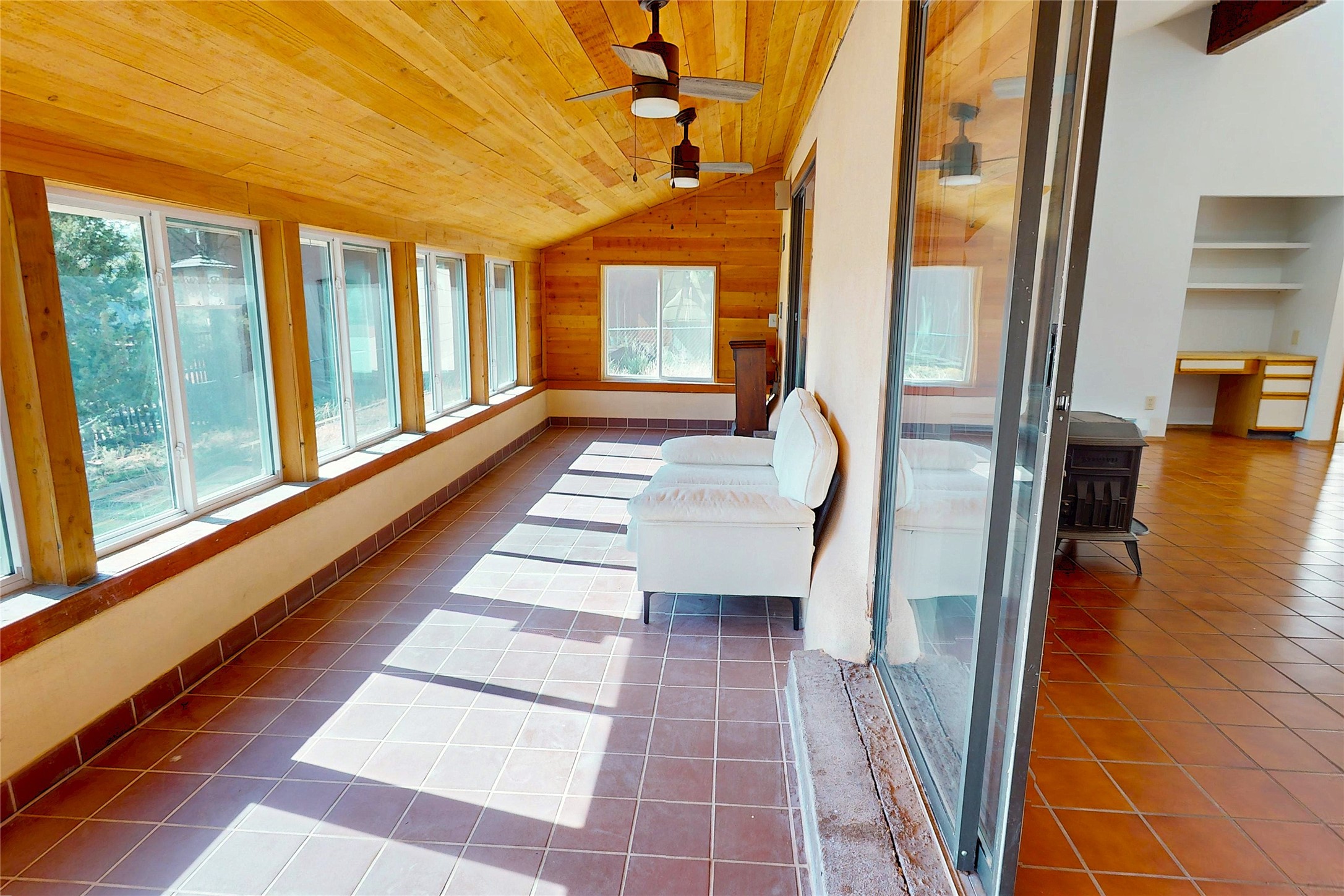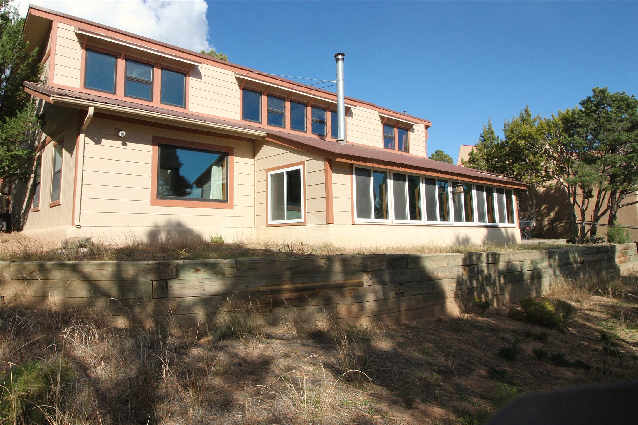 Set in a quiet North Mesa neighborhood at the end of San Ildefonso, this inviting home offers the privacy and views of canyon living along with the practicality of a large fenced yard--perfect for outdoor living and entertaining. This 3-bedroom, 2-bath home provides the ideal canvas for a dream lifestyle. Upon entry, you're welcomed by soaring ceilings, abundant natural light, and a sense of openness and serenity. The heart of the home is the kitchen and living area, where a wood-burning stove framed by an impressive stone wall creates a cozy focal point for relaxing evenings. Tile floors add warmth and charm throughout the main living spaces. Sliding glass doors open to a sunroom that seamlessly blends indoor and outdoor living, inviting you to enjoy the natural surroundings year-round. The primary suite includes a bedroom, a separate office, a walk-in closet, and an en-suite bath. Two additional bedrooms share a hallway bath with double sinks. One bedroom offers outstanding canyon views, while the other features a loft area with windows toward the canyon that provide an open feeling and lots of natural light. The loft is ideal for storage or additional living space. A large laundry/mudroom provides plenty of storage and has direct access to the two-car garage. Throughout the home, you'll find thoughtful details such as built-in shelving, exposed wooden beams, and architectural character that add both beauty and functionality. This home offers a lifestyle where you can create lasting memories, entertain friends, and enjoy the beauty of Los Alamos canyon living. Don't miss this opportunity to elevate your everyday experience.