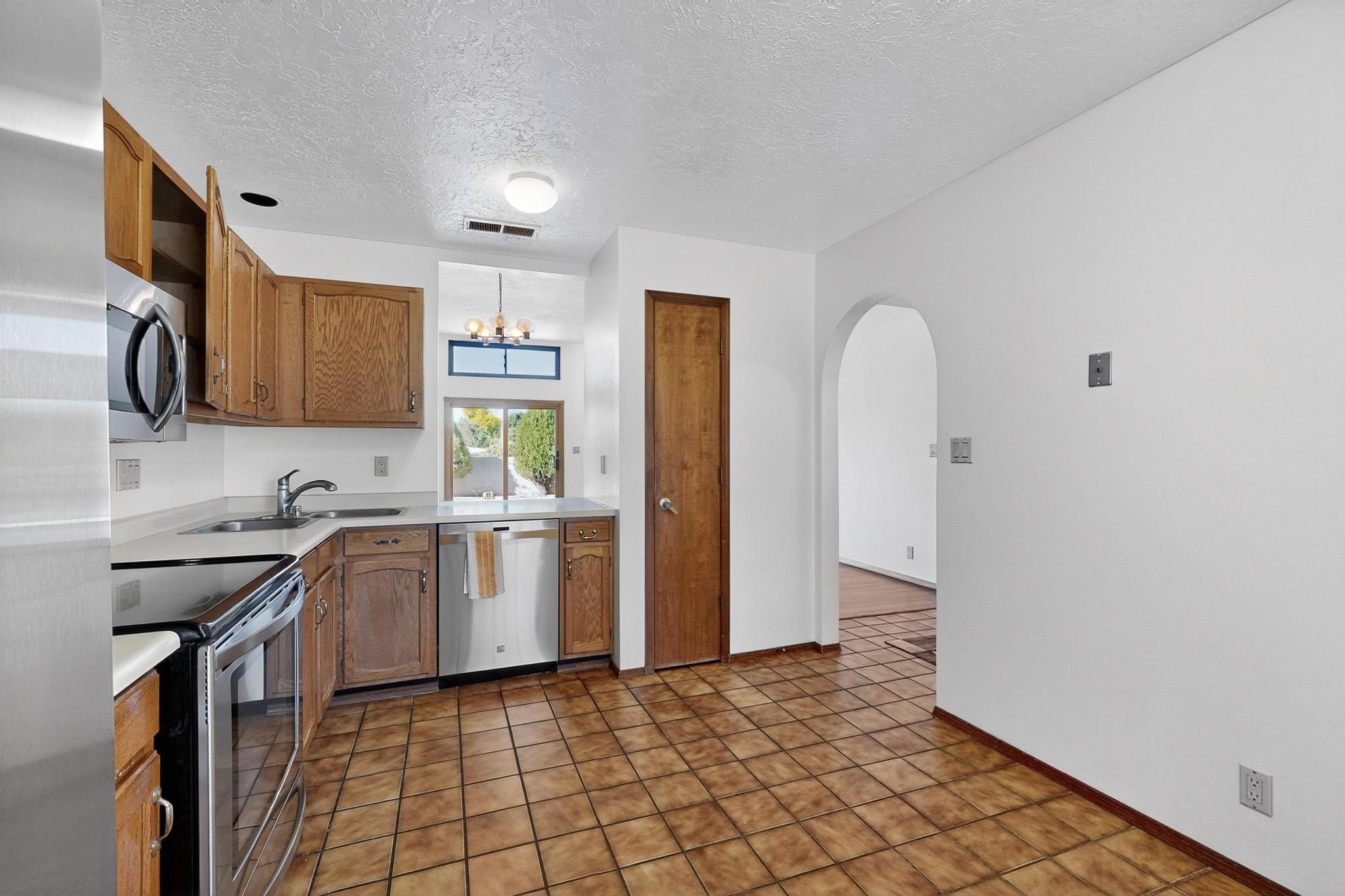 Welcome to 2104 Avenida de las Alturas! This single level home, built in 1983, has been lovingly cared for by the original owners. Once you enter the foyer, you are welcomed by recently added flooring throughout the home. There is a wood burning fireplace in the living room to enjoy on those beautiful cooler Santa Fe days and nights. The primary bedroom and bath are separated by the living area and the other two bedrooms. The updated guest bath has decorative tile in the shower and along the counter backsplash. A new roof was added recently and the garage door has been updated, along with the stainless-steel kitchen appliances. The fully enclosed back yard is a good size, with a few established trees and one of the side yards has planter beds. The front yard has xeriscape landscaping for minimal maintenance. This home is centrally located near shopping, schools, hospitals and restaurants.