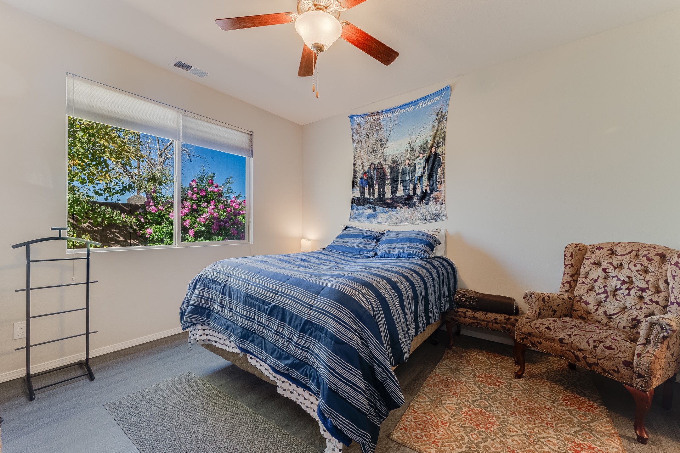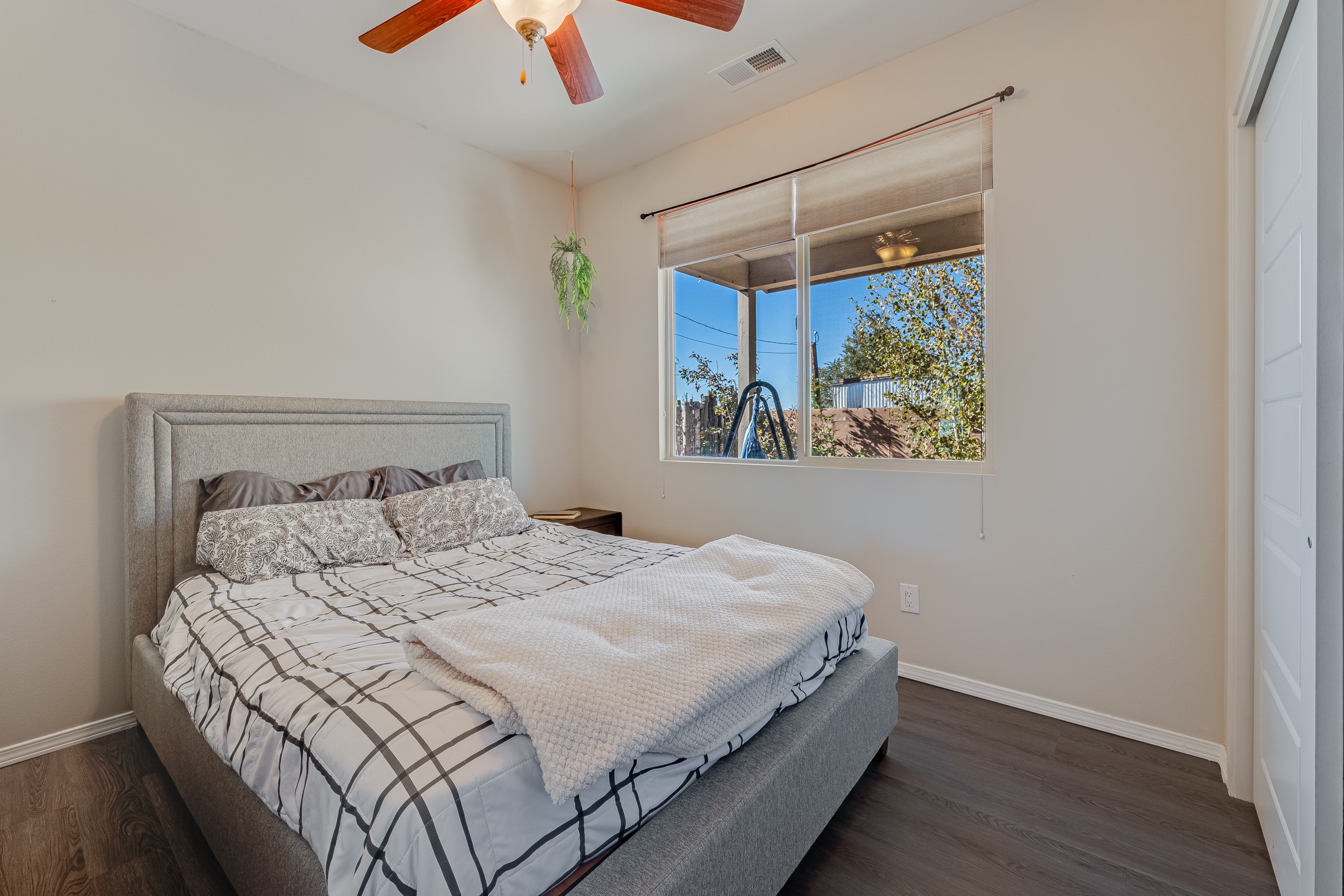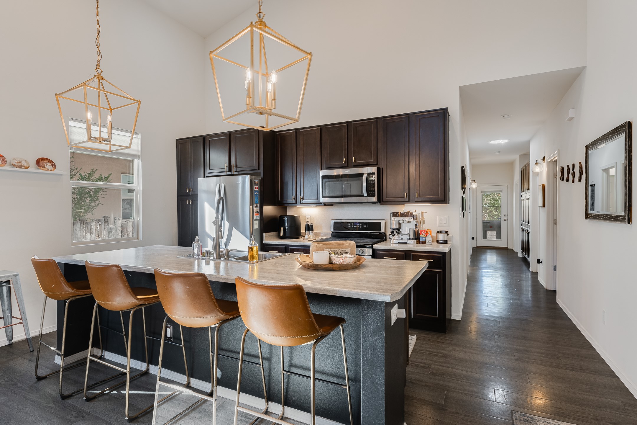 This newer construction single-level home offers comfort, convenience and peace of mind at a stellar price. The main living space, a well-balanced open concept design, is complemented by recessed lighting to create an airy, inviting atmosphere, with durable luxury vinyl plank flooring adding both style and functionality. The kitchen is equipped with modern stainless steel appliances and a large island for ample cabinet storage, perfect in everyday cooking and entertaining. Four spacious bedrooms and two bathrooms with large vanities provide room for larger families and/or a home office. For more to love, the home also benefits from central A/C and heat, an attached 2-car garage, fully xeriscaped grounds, and a SOLAR PV system to offset energy bills. Located just a short walk from parks, restaurants (Escondido is one block away), and only a quick drive to shopping and entertainment options, this home combines residential comfort with access downtown and everyday amenities. With its practical layout, appealing finishes, and competitive price point, this property is a smart choice for homeowners or investors alike. Don't miss this opportunity to own a well-appointed home in a desirable Santa Fe location. *details provided by Seller and to be verified by potential buyers.