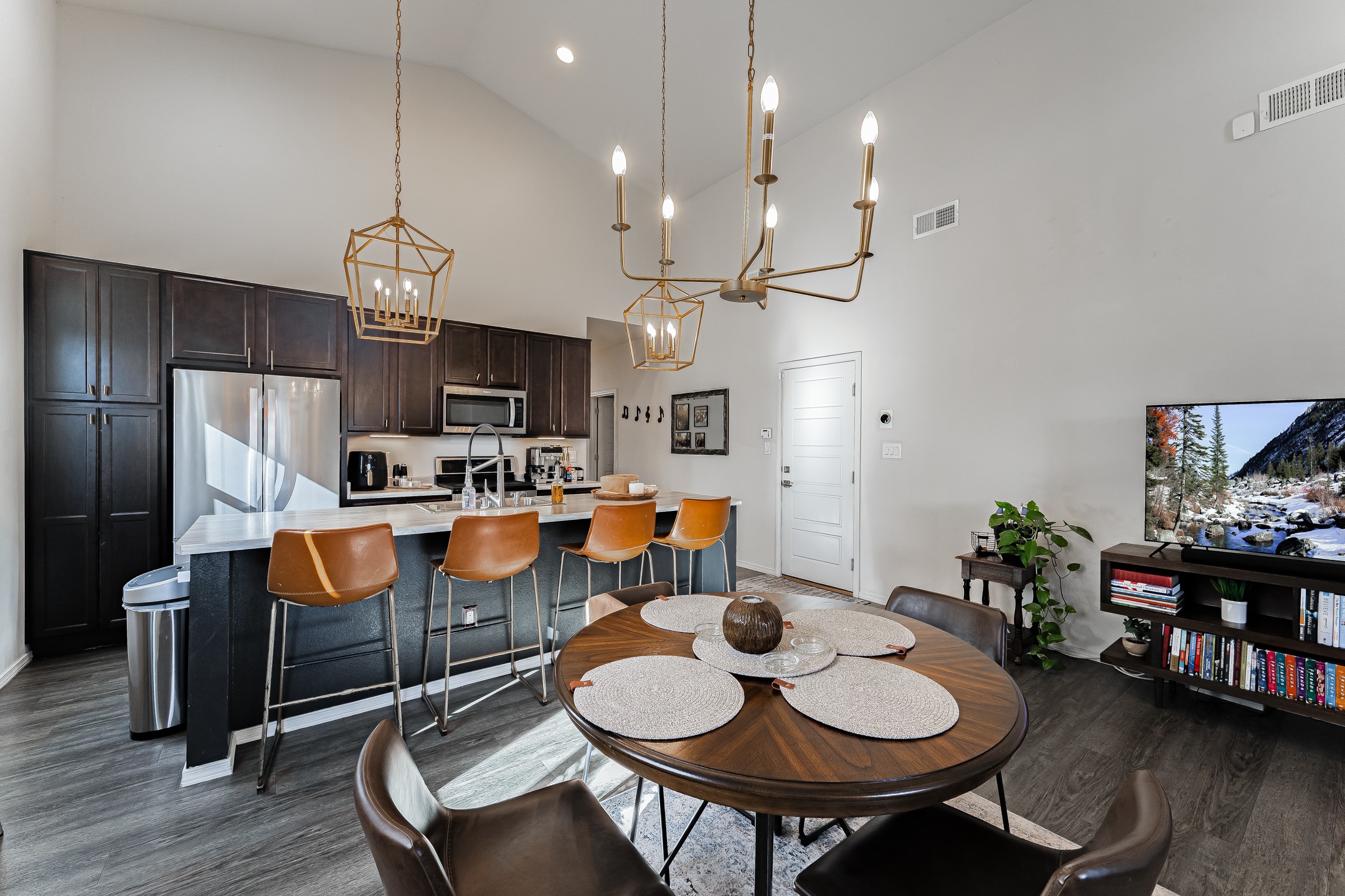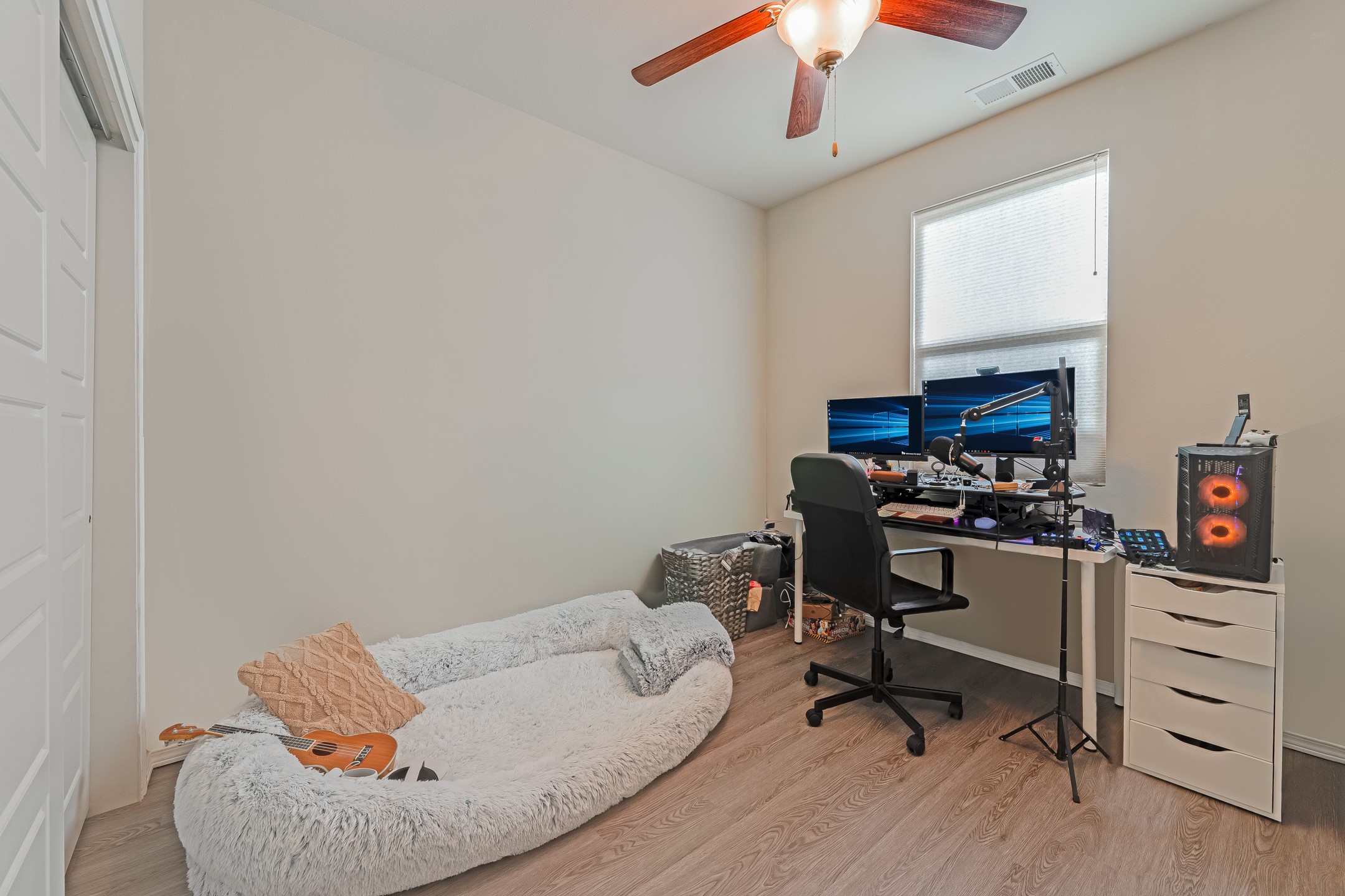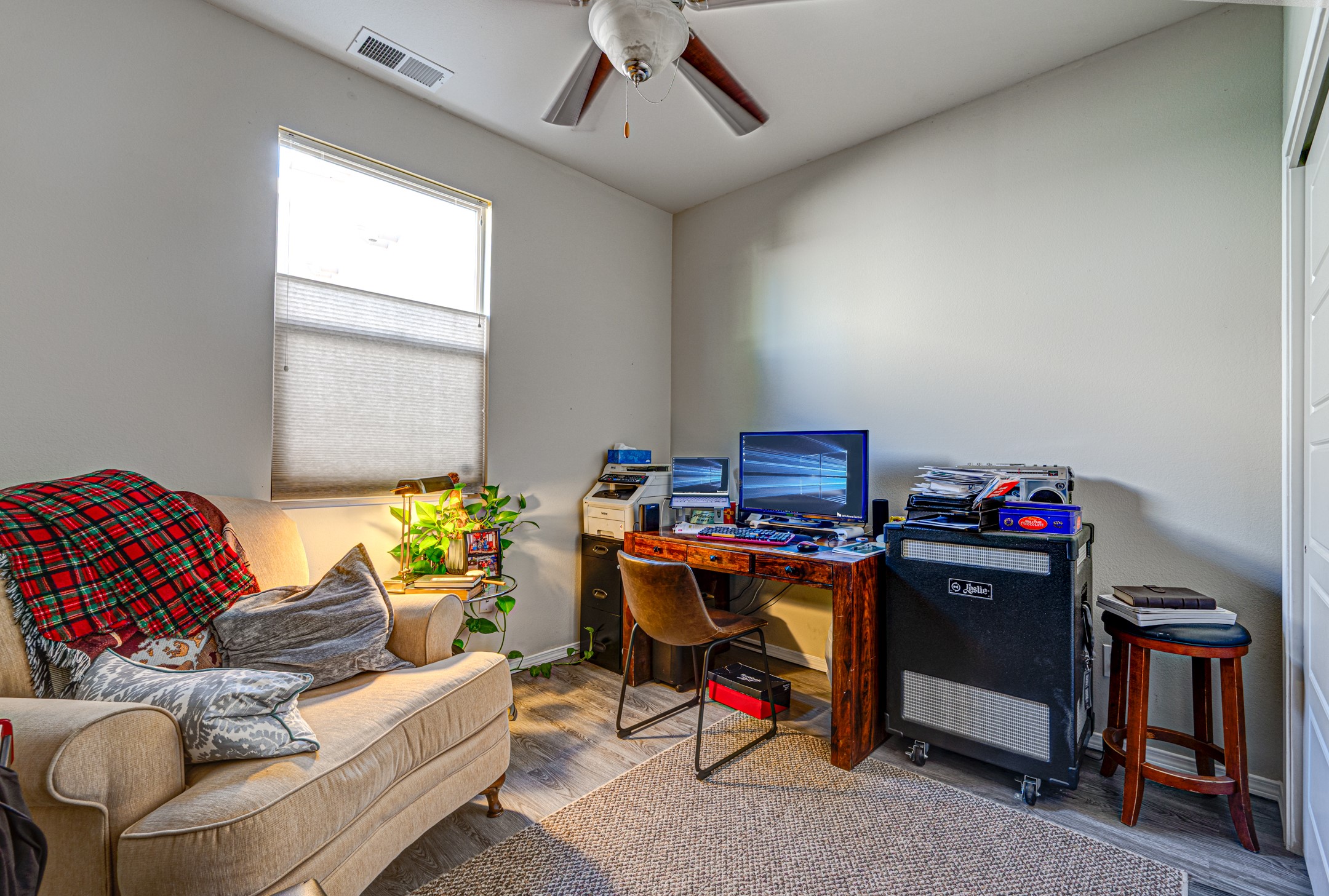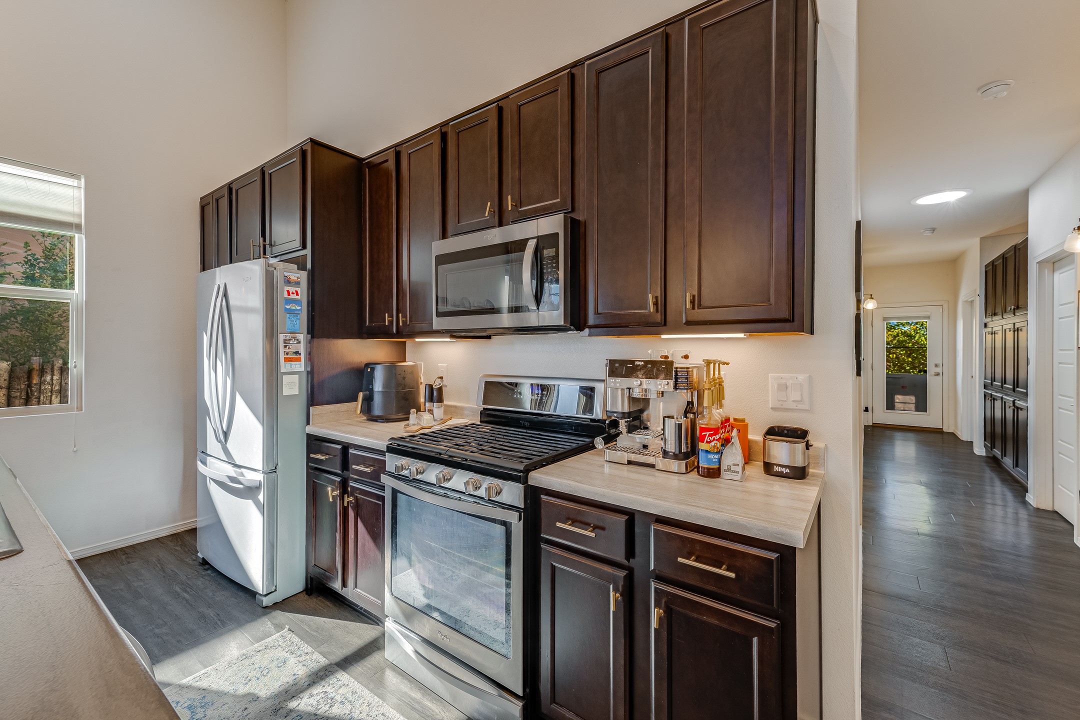 This newer construction single-level home offers comfort, convenience and peace of mind at a stellar price. The main living space, a well-balanced open concept design, is complemented by recessed lighting to create an airy, inviting atmosphere, with durable luxury vinyl plank flooring adding both style and functionality. The kitchen is equipped with modern stainless steel appliances and a large island for ample cabinet storage, perfect in everyday cooking and entertaining. Four spacious bedrooms and two bathrooms with large vanities provide room for larger families and/or a home office. For more to love, the home also benefits from central A/C and heat, an attached 2-car garage, fully xeriscaped grounds, and a SOLAR PV system to offset energy bills. Located just a short walk from parks, restaurants (Escondido is one block away), and only a quick drive to shopping and entertainment options, this home combines residential comfort with access downtown and everyday amenities. With its practical layout, appealing finishes, and competitive price point, this property is a smart choice for homeowners or investors alike. Don't miss this opportunity to own a well-appointed home in a desirable Santa Fe location. *details provided by Seller and to be verified by potential buyers.