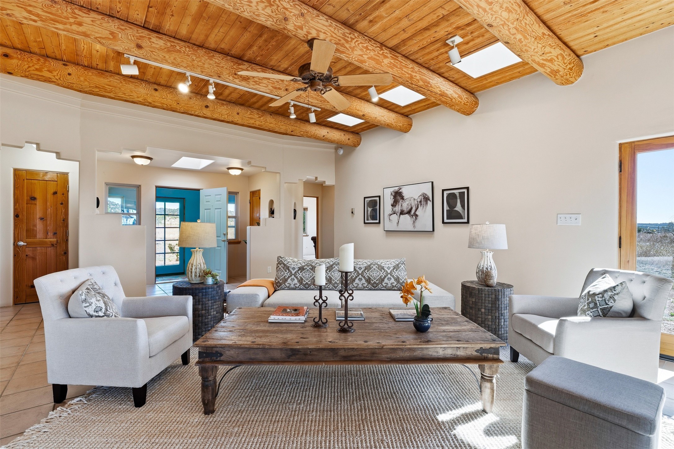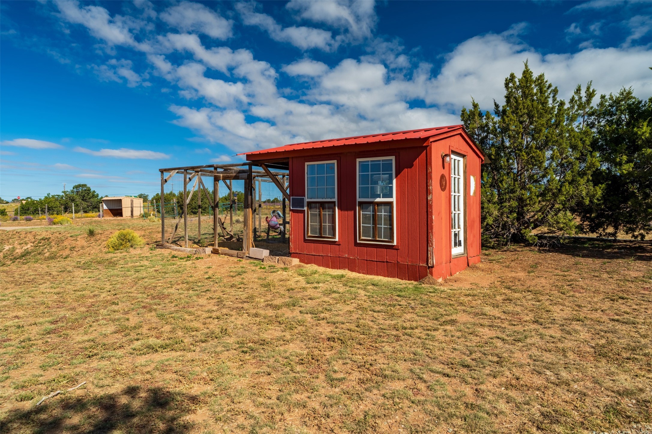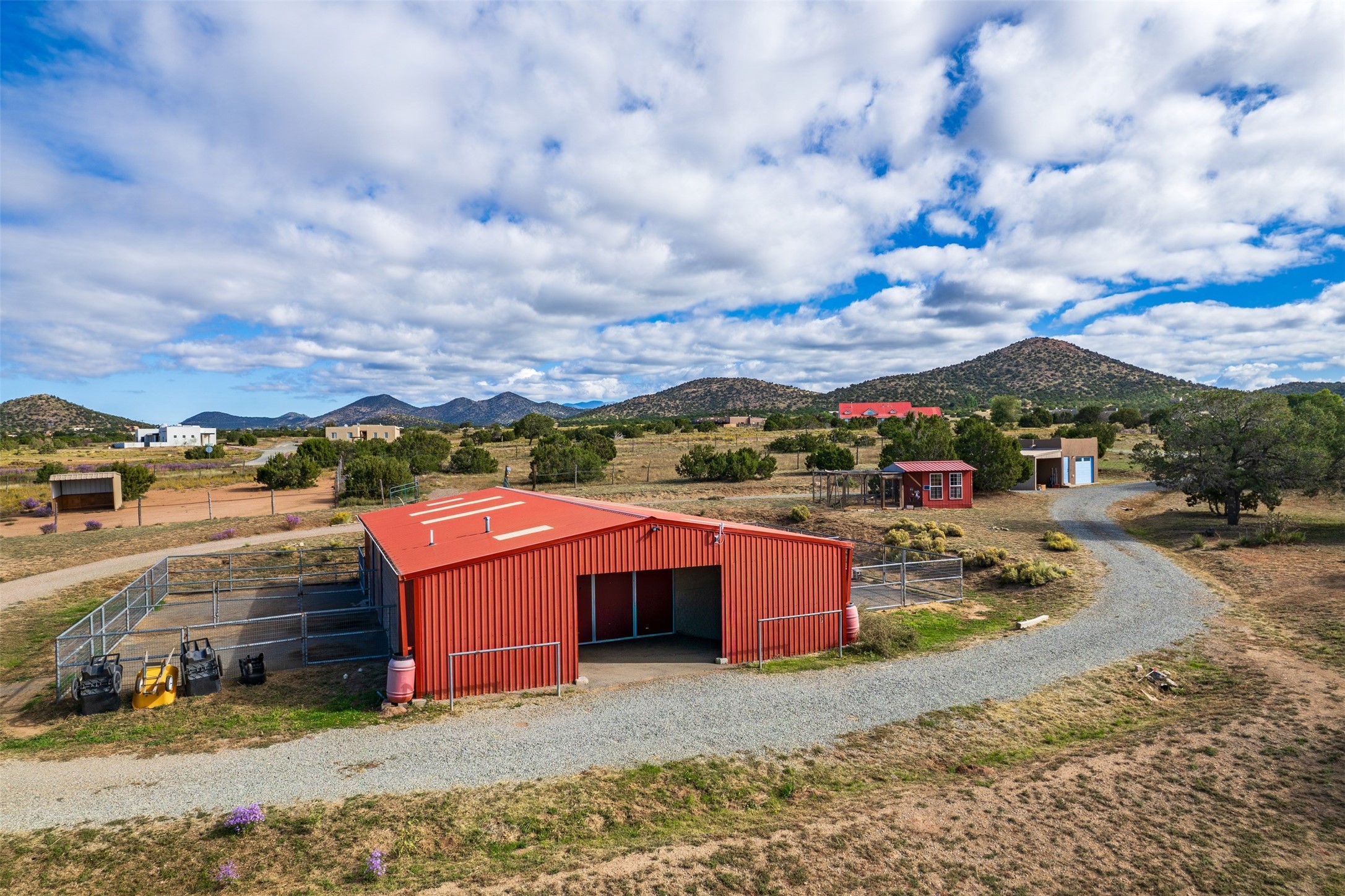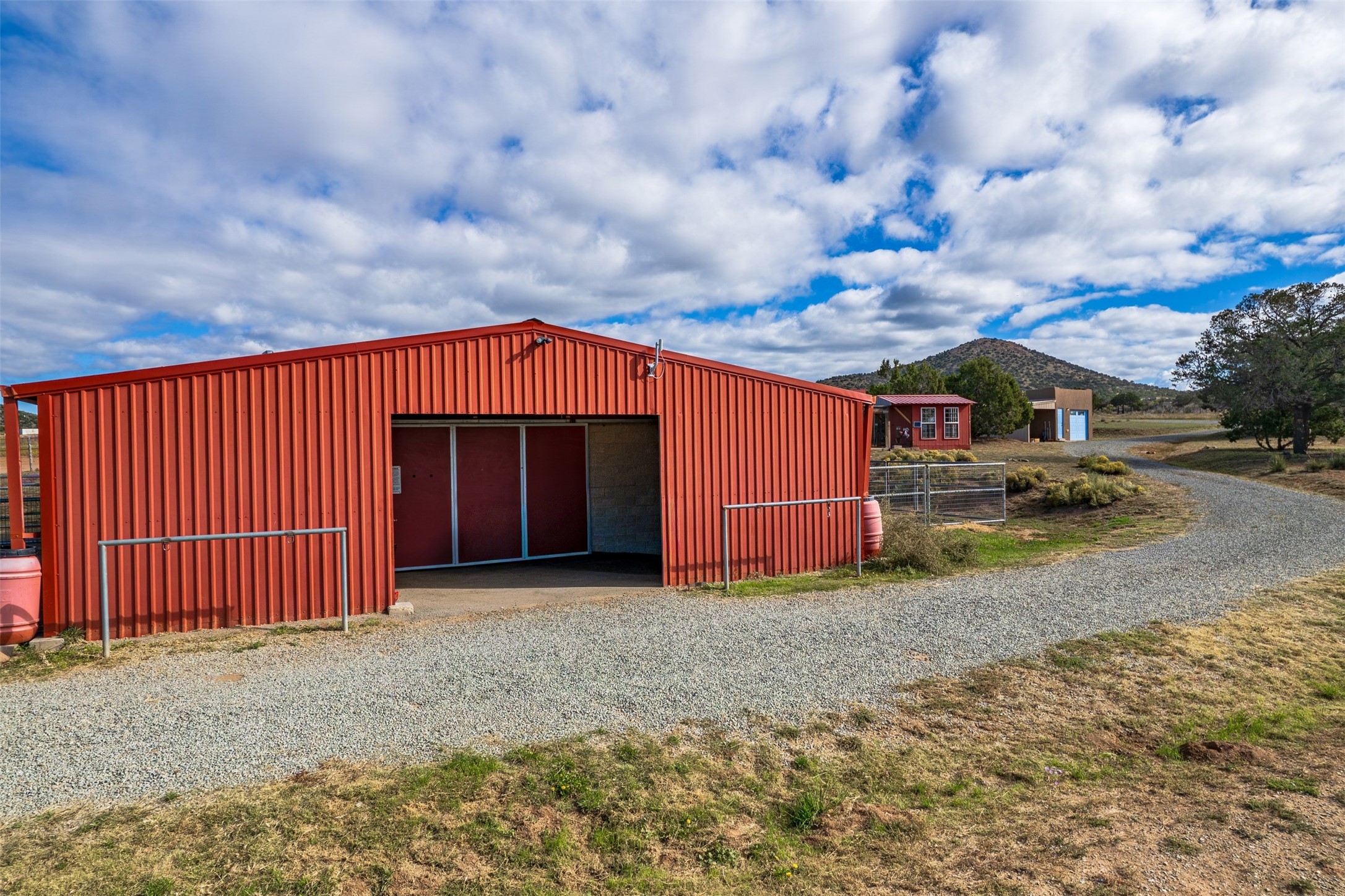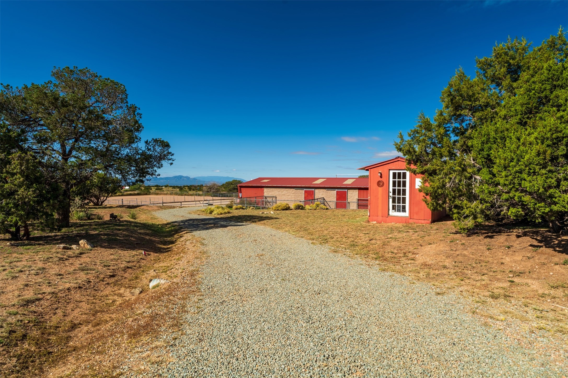 A small ranchette offering a great location and features. This property is situated directly across from Eldorado, offering convenient access to various community amenities. It is serviced by Eldorado water and natural gas, ensuring reliable utilities. The home is also a short distance off the highway, providing easy access to town. The home itself features a split floor plan and an open-concept living, dining, and kitchen area, making it ideal for comfortable living and entertaining. It also has southerly mountain views. For equestrian enthusiasts, this property is particularly well-equipped with a 2400 sq ft center aisle, block and metal 4-stall barn with attached piped paddocks, crusher fine footing, automatic heated waterers, a tack room, a hot water wash rack, hay storage, and a feed room with a sink and toilet. Additionally, there is a piped rail sand arena and 4 turnouts with run-in sheds. The property also a detached unheated workshop/studio with a carport and storage. No HOA.