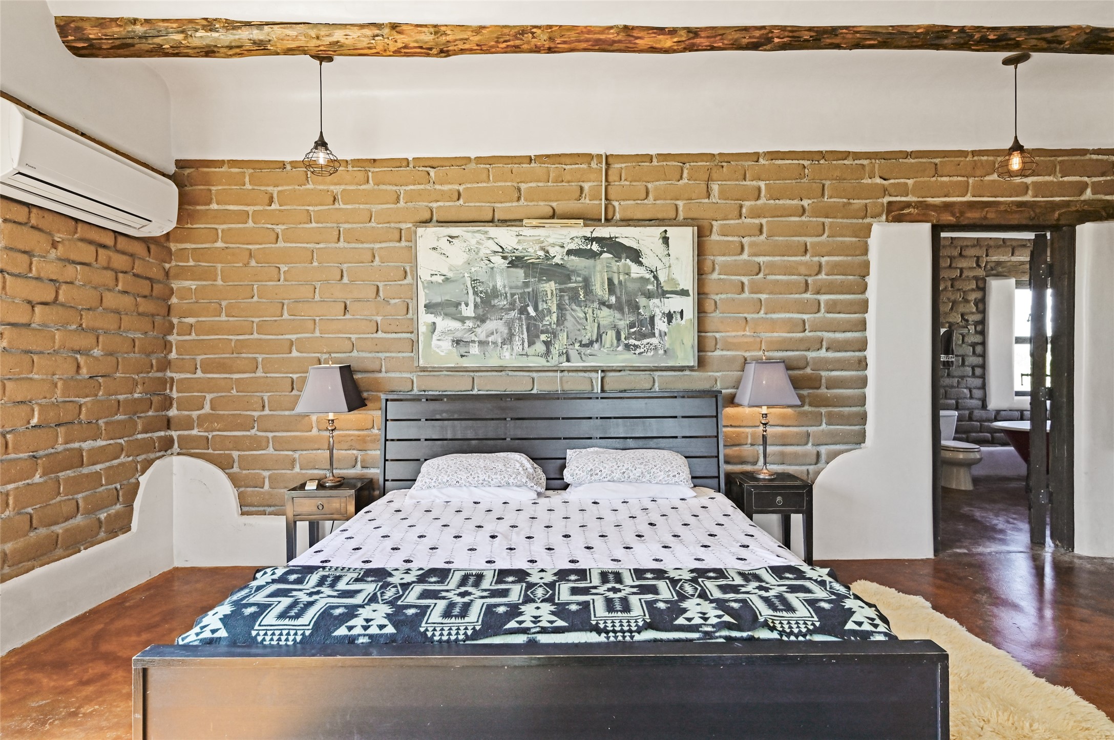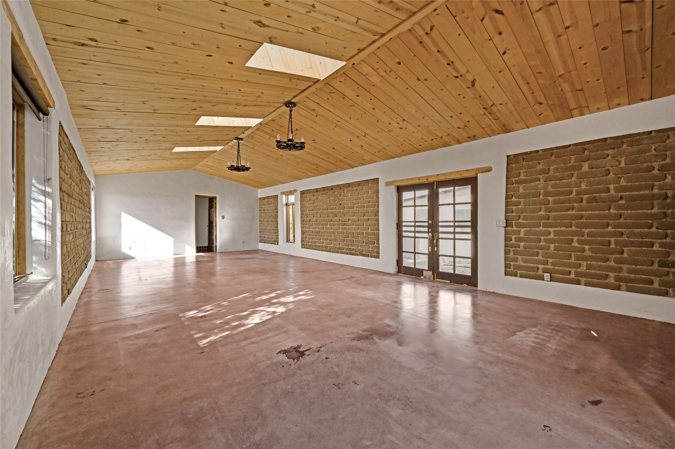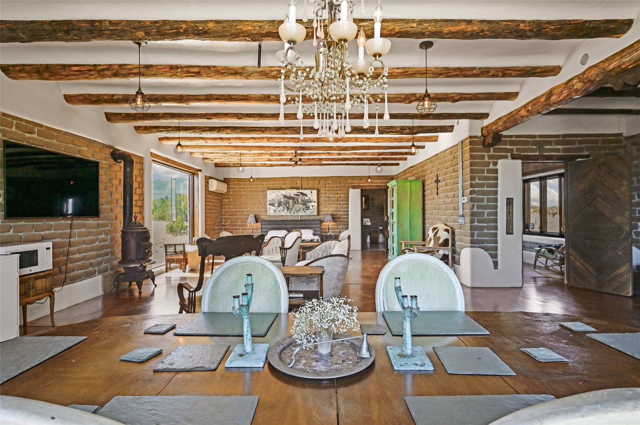 Welcome to this remarkable property that exudes the rustic charm of the old west and features the adobe walls that distinguishes true Santa Fe from the rest! Settled on just under a 10 acre naturally landscaped parcel of land with dreamy mountain views and populated with Pinon and Juniper Trees throughout, this property is the one you've been waiting for. The one bedroom one bath private main home boasts an open concept floor plan and 1,500+/- heated square feet. In addition to the main home there are three separate studios for your use and imagination! A 1,000 +/- sqft adobe with one bath would be great for your guests. The 985+/- sqft "music studio" with one bath attracts great natural light and contains a loft up above the main level. The cute 300 +/- detached studio is just off of the walled courtyard and next to the outdoor hot tub. Another great feature and added benefit to this property is the designated RV parking and hookup area! Come and own your own unique perspective of the gorgeous sunrise and sunset views that Santa Fe is known for from this one of a kind property. The property is fully-fenced and is about a 20 minute drive from the Santa Fe city limits.