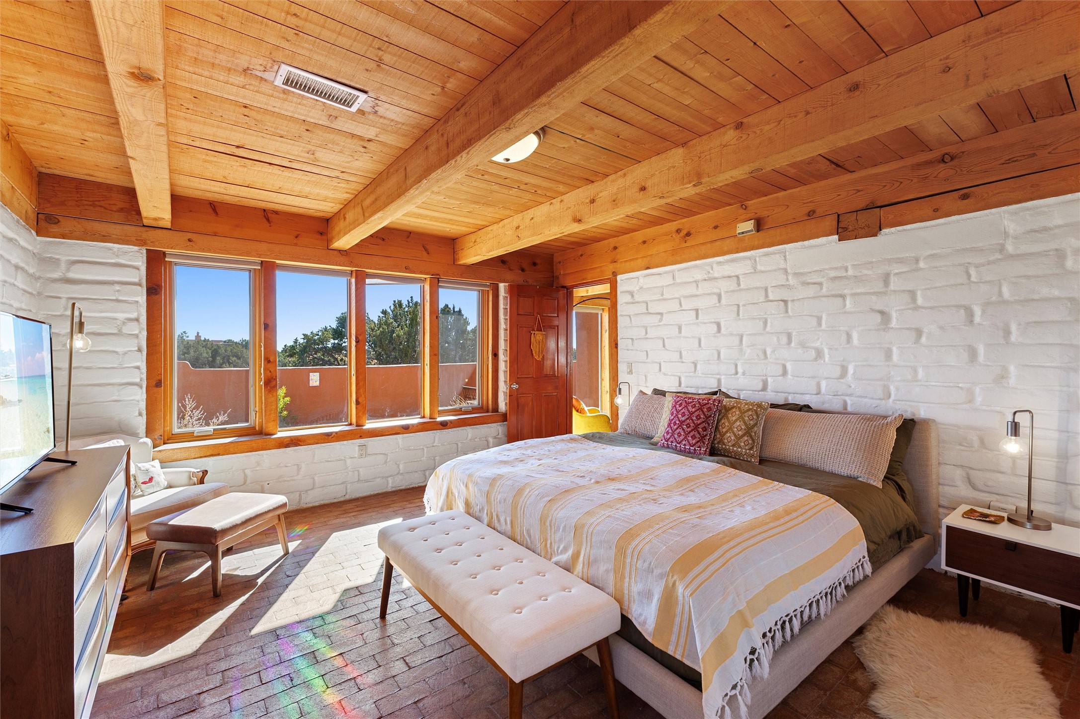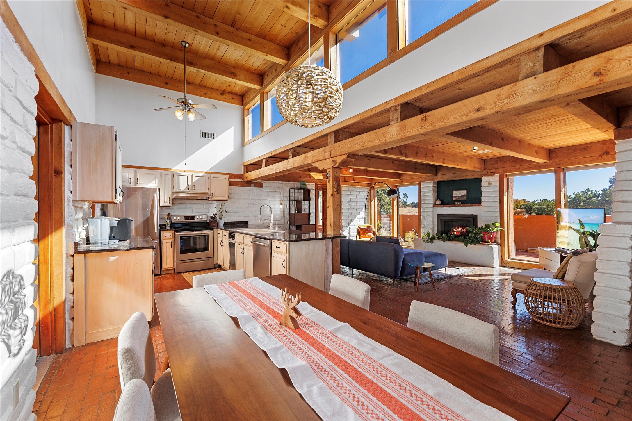 Possibilities abound in this inviting and well cared for, passive solar home, in the sought after Eldorado at Santa Fe community, with outstanding amenities for all who live within its tranquil setting.*Currently operating as a successful short term to mid-term rental, this income producing property allows you to dream.Whether you're looking for a turn key investment, a way to offset the expense of your own home away from home in Santa Fe or a comfortable place to call home full time, this idyllic retreat is not to be missed.Offering 2-primary suites, with excellent separation, the open floor plan features striking wood beams, abundant natural light, and expansive views, plus a dedicated office space, separate laundry room, 2 car garage and separate generator. Enjoy the beautiful views and sunsets that Eldorado is known for from one of the fully fenced outdoor patios.Fully stocked and tastefully appointed, this serene and stylish retreat blends southwestern charm with relaxed sophistication, checking all the boxes for you and your guests. Schedule your showing today and see how easy it can be to make your Santa Fe dreams come true!*Community amenities include walking and biking trails, greenbelts, hiking trails, basketball courts, tennis courts, pickle ball, seasonal swimming pool, and more. HOA fees are annual, at $620 per household.