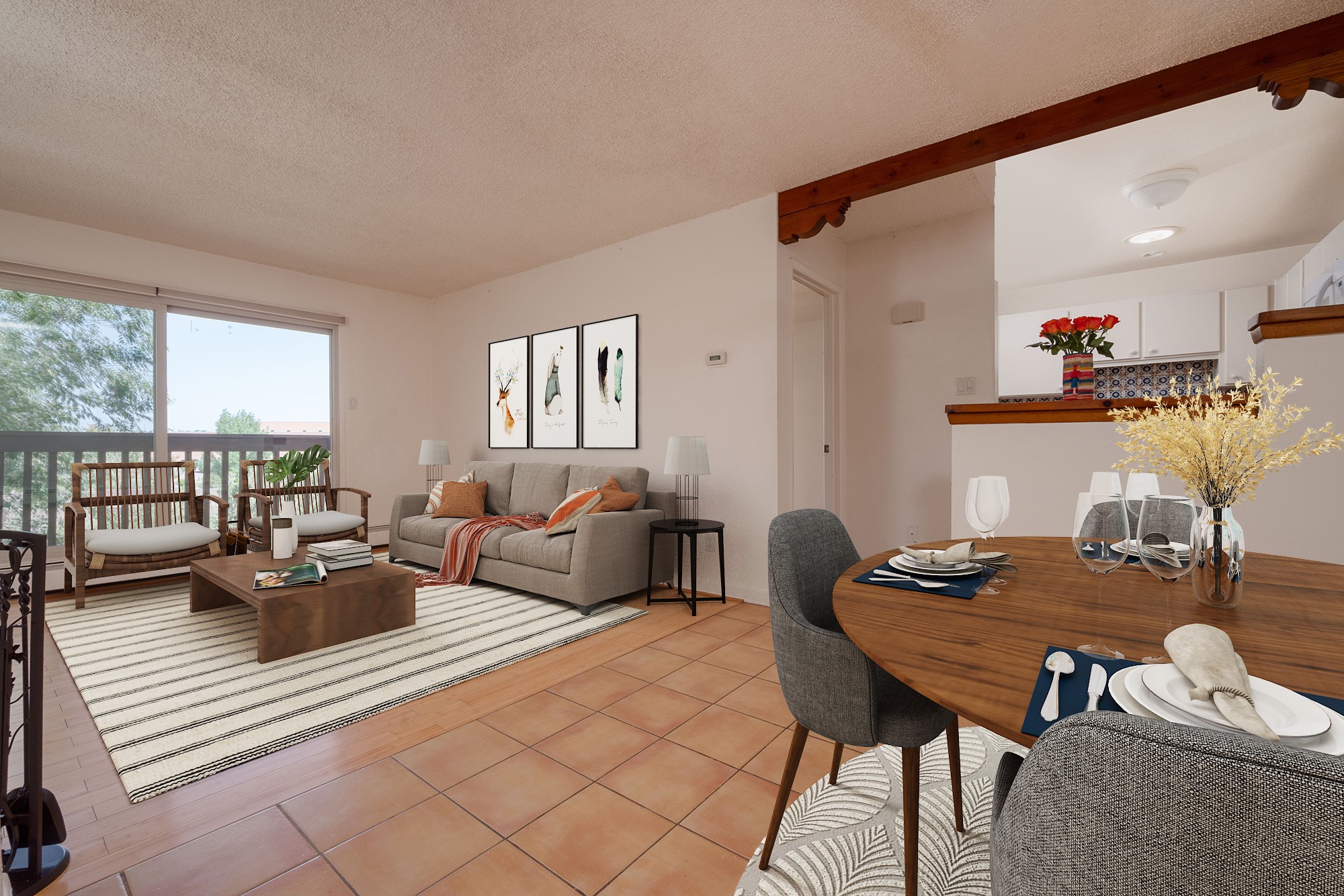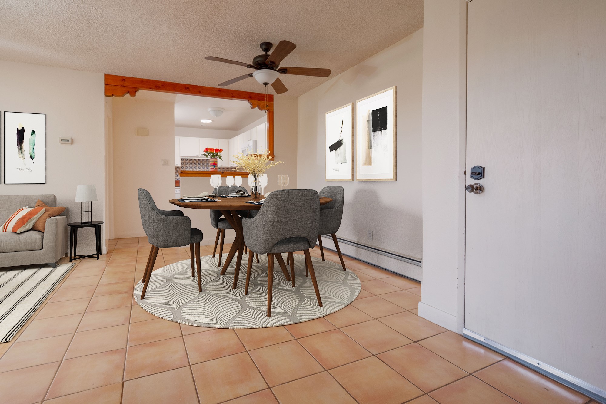 Where else can you find two bedrooms with access to a pool, sauna, and gym at this affordable price on the East side of St. Francis? Coming home begins at the beautiful garden path from the parking lot to the breezeway. This cute unit is a second-floor walk-up with a tree-shaded deck overlooking the arroyo and a cozy fireplace for winter vibes. Los Arroyos is a wonderful community with beautiful grounds surrounded by million-dollar homes. Amenities include hot water baseboard heat, water, indoor pool, sauna, gym, lawn, BBQ area, tennis court, basketball hoops, walking trails and community room and more included in a reasonable condo association fee. This is also a rare complex that doesn't limit your number of small pets to two - a big win if your fur family is larger. If you've given up finding a sweet, affordable place in Santa Fe, come see this lovely home and community and put yourself at ease.