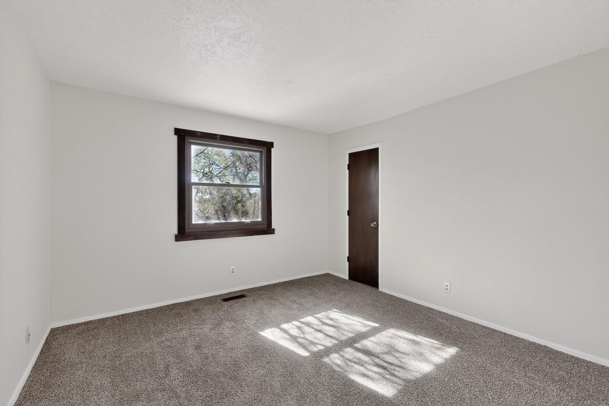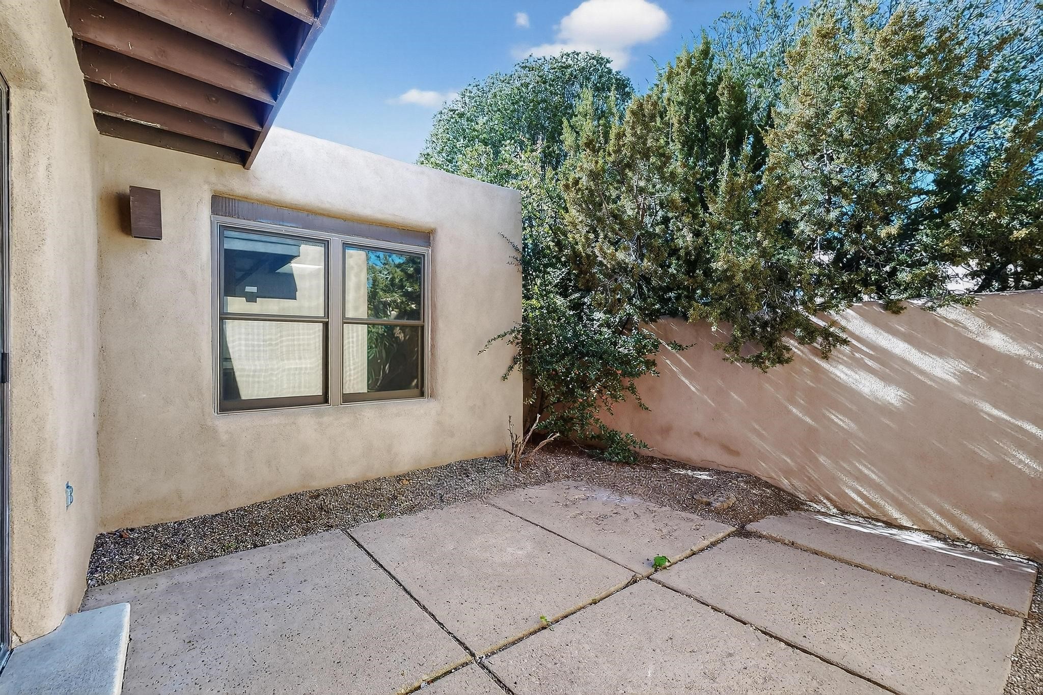 You are just going to love this beautiful free standing single level three bedroom Northside condo just a quick five minute drive to the historic Santa Fe Plaza! Beamed ceilings, wood burning kiva fireplace, two full baths, two private courtyards, a single car garage, refrigerated air conditioning, brand new carpet and mountain views!