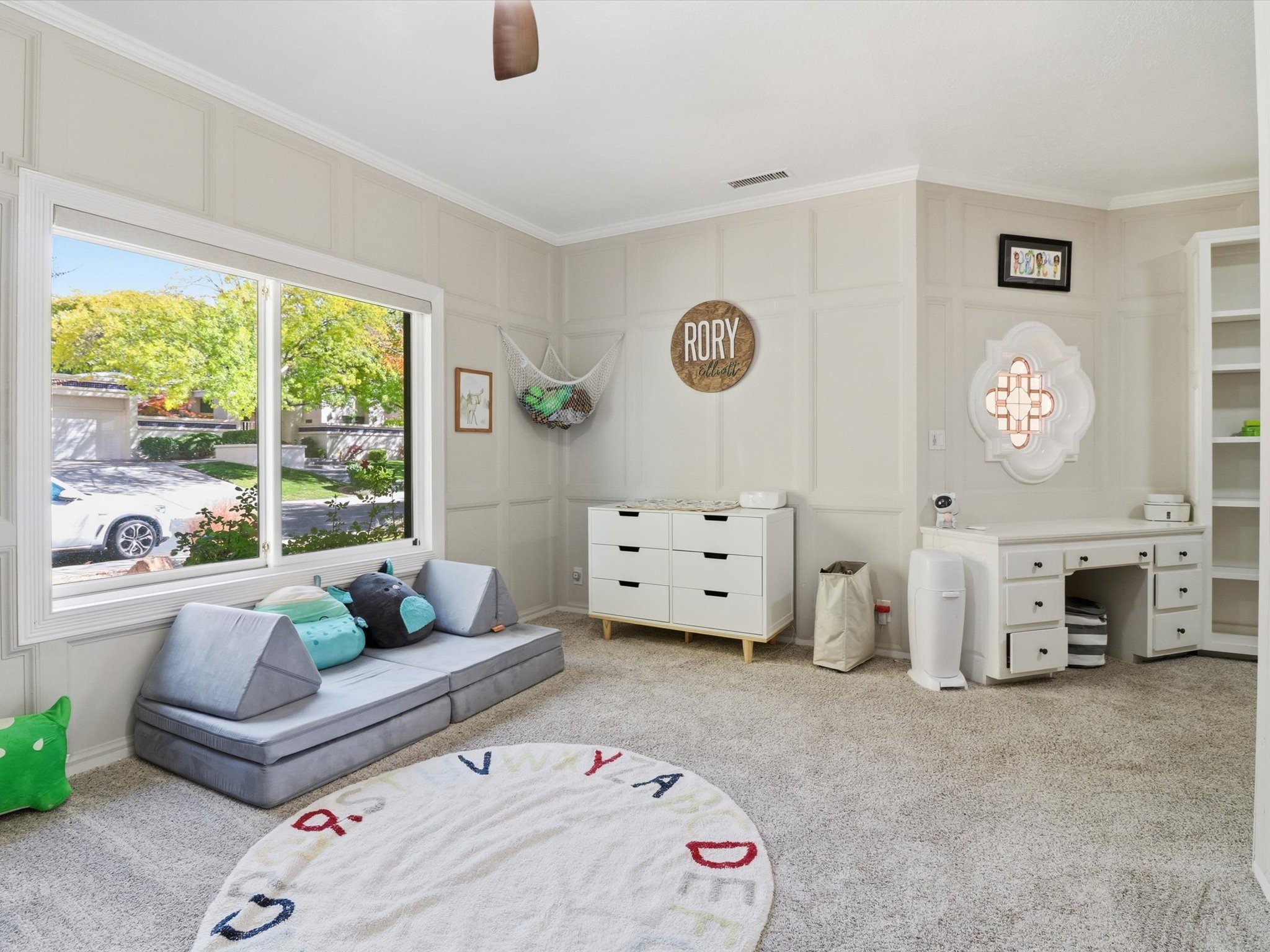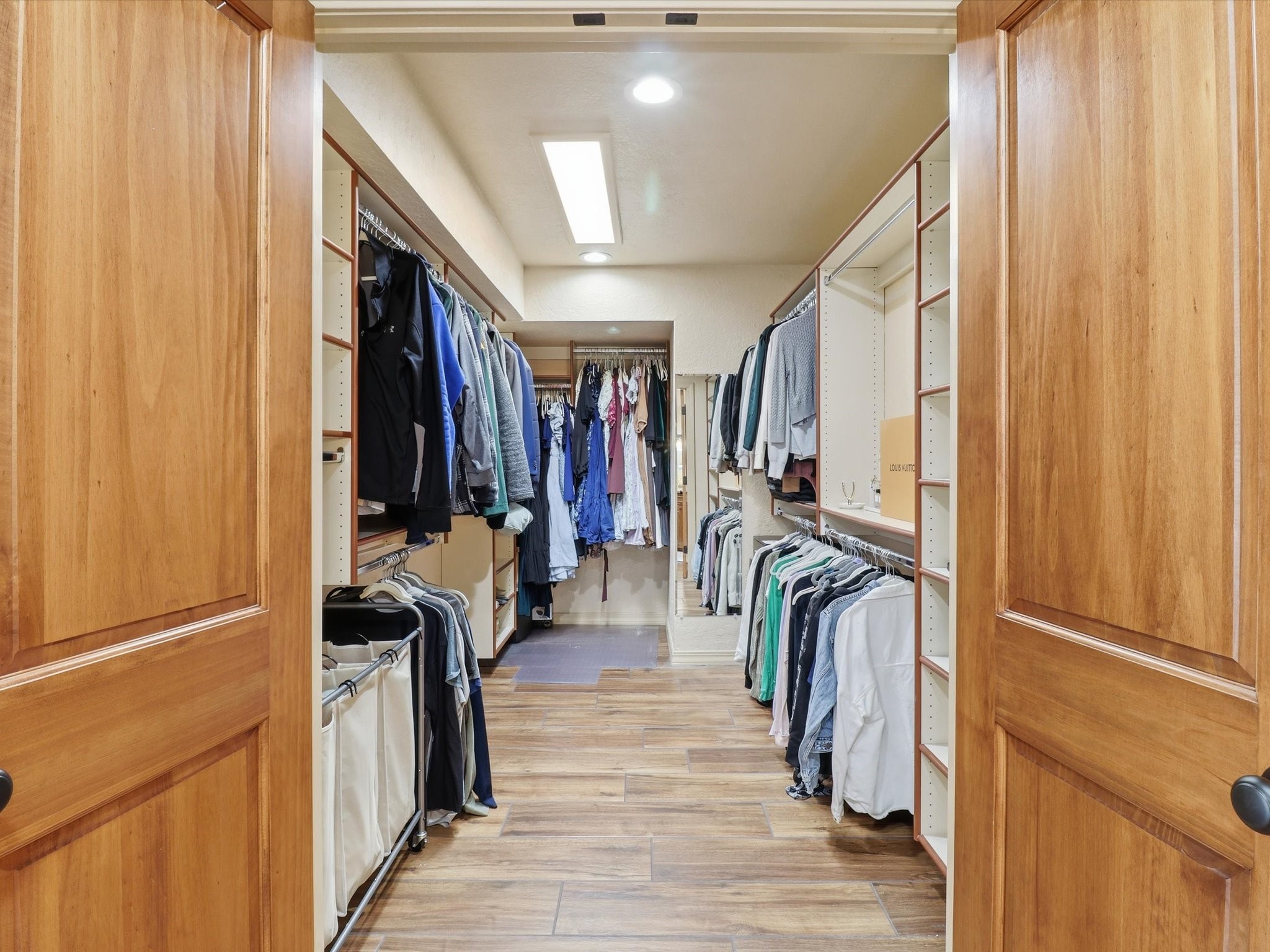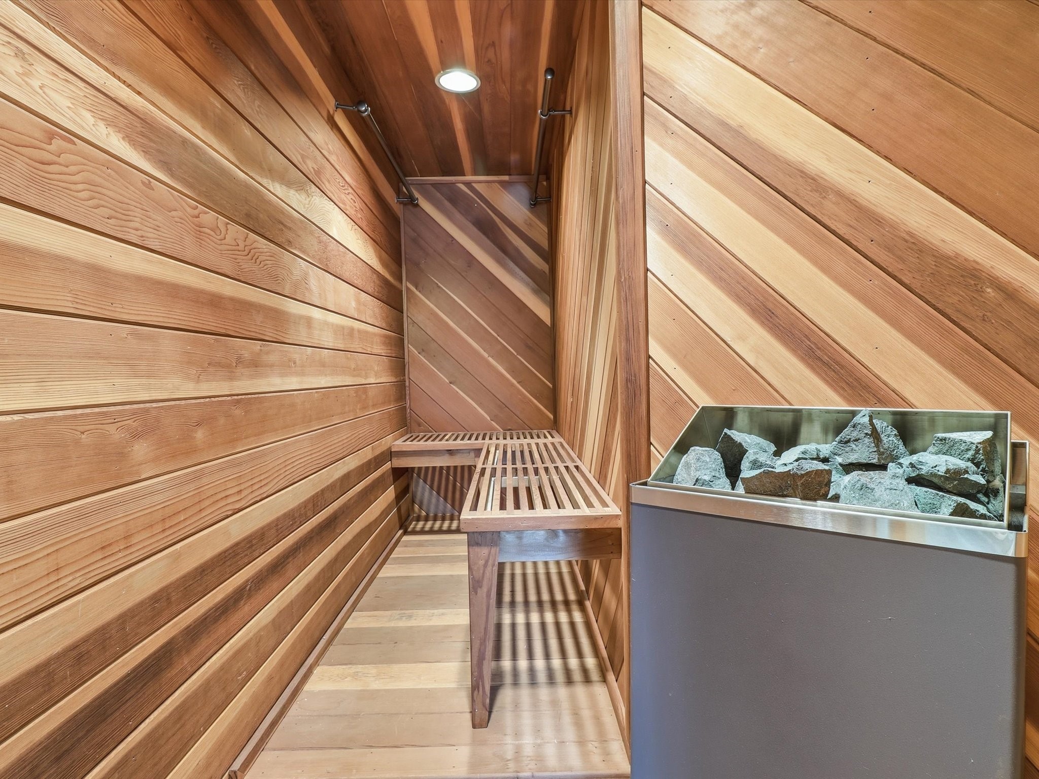 Nestled on one of Tanoan's beautiful tree lined streets, this stunning home sits nearby a cul-de-sac and within walking distance of the country club. This updated home has exquisite attention to detail, showcasing high-end finishes throughout, including Venetian plaster walls, hand-chiseled stone and hardwood floors. Upon entering the home you will appreciate the high ceilings and many windows that open to the backyard and patio, offering lots of natural light into the home. Downstairs you will find 3 generously sized bedrooms with good separation between them. Off the foyer is the formal dining room and large expansive living room with dry bar nearby. The kitchen will not disappoint, with dual ovens, granite countertops, tile backsplash and undermount lighting, plus an eat-in kitchen area. There is also a room off the back patio that is currently being used as an at home gym. The upper level is dedicated to a private primary suite, featuring a spacious bedroom, a cozy loft sitting area with balcony access, and a luxurious spa-like bath complete with a soaking tub, large shower, sauna, and generous walk-in closet. The landscaped backyard offers a beautiful lawn, multiple covered patios ideal for outdoor living and entertaining, along with a heated pool with automatic cover system. 3 car garage with EV charger, water filtration system and soft water system. Recent seller updates include replacement of a portion of the TPO roof, A/C unit, dishwasher, automated irrigation system and heated pool. Enjoy the tranquility, privacy, and security of Albuquerque's 24/7 guard-gated country club community.