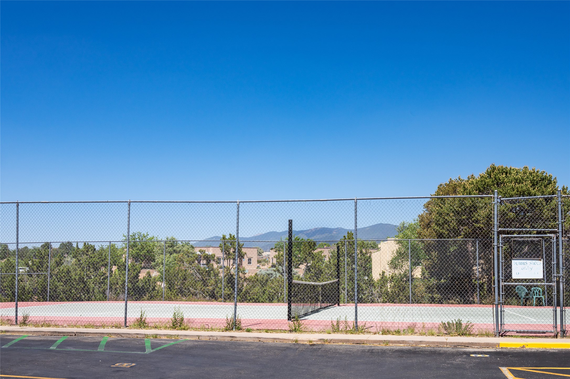 This spacious second-story condominium in the desirable Los Arroyos community offers comfort, convenience, and Santa Fe charm. Centrally located near the hospital and many of the city's premier amenities, this home is one of the larger units in the complex, featuring two bedrooms, one full bath, one bath, and a dedicated laundry room.The bright and open living and dining areas feature easy-care laminate flooring, while the kitchen and baths are finished with tile and the bedrooms offer cozy carpeting. A generous northeast-facing deck provides a lovely outdoor retreat with seasonal mountain views in winter-- perfect for relaxing or entertaining. Residents enjoy a wealth of community amenities, including a clubhouse, indoor swimming pool, sauna, and tennis courts, along with nearby walking trails. The home includes one assigned parking space plus additional guest parking. The association includes roof and exterior maintenance, heating, water, and common areas, ensuring low-maintenance living in one of Santa Fe's most convenient neighborhoods. Your Santa Fe comfort awaits!