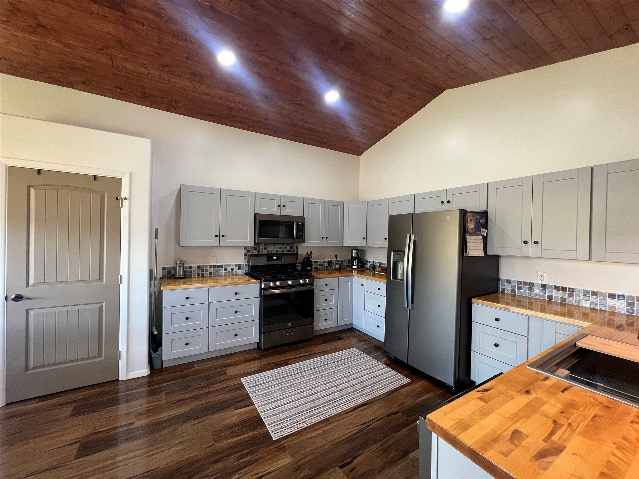 Immaculate mountain retreat with panoramic views and exceptional craftsmanship. Built in 2022, this beautifully maintained mountain home combines modern comfort with comfortable living. Situated on two lots with 0.83 acres allows for easy access off the paved county road. Step inside to soaring vaulted ceilings and a bright, open living area centered around a cozy pellet stove--perfect for relaxing or entertaining in style. The light bright well designed kitchen boasts butcher block countertops protected with an epoxy finish and a spacious pantry. The thoughtfully designed floor plan with luxury vinyl flooring throughout features a primary bedroom with en-suite bath and walk-in closet and a guest bedroom and another full bath. A convenient laundry area and mud room leads to the attached spacious oversized insulated finished 900-square-foot heated garage offering far more than parking--complete with a wood stove, workshop space, utility sink, and 220-volt outlet, it's ideal for hobbies, projects, or extra storage. Step out to the covered deck and take in breathtaking valley, mountain, and forest views--a peaceful setting where you'll love to unwind. Lush lawns frame the property, accented by two hand-built bridges and a large new storage shed with electricity for added convenience. Generac hard-wired full-house generator provides worry-free backup power. Offered furnished, this move-in-ready home is the perfect blend of quality, comfort, and mountain serenity. Located just 25 miles from Las Vegas, NM, and an easy 1-hour drive to Santa Fe or Taos, this property invites you to relax, recharge, and enjoy life in one of northern New Mexico's most scenic settings.