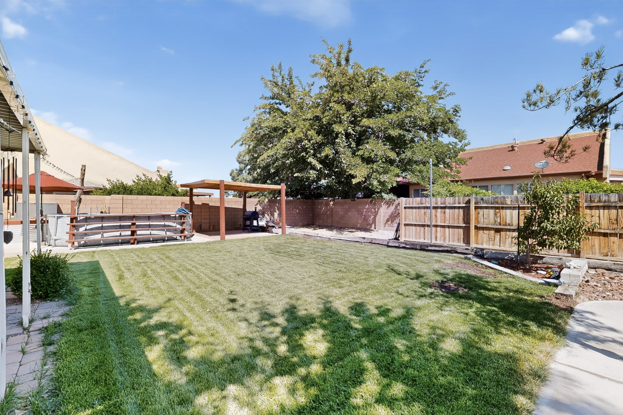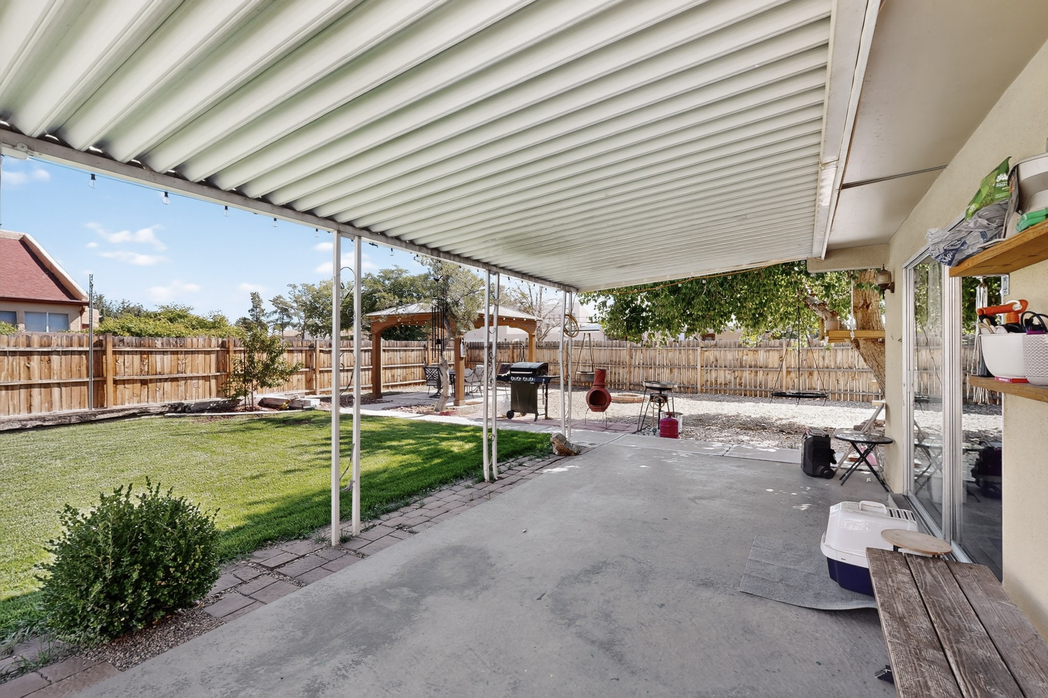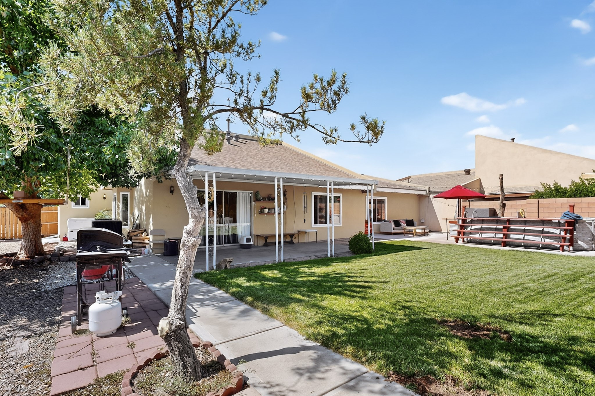 Welcome to this stunning 4 bedroom 2 bathroom property that offers 2,106 sq ft of thoughtfully designed living space in one of the most desirable neighborhoods in Rio Rancho. This home features REFRIGERATED AIR, Central air Heating, water heater installed 2023, NEWER roof TPO with a TRANSFERABLE WARRANTY. The Solar System ONLY has a bill of 109.00$ and a PNM bill of $8 dollars. NO POLYBUTYLENE. Conveniently located close to restaurants, shopping centers and schools. Come and take a tour of this beautiful home today!