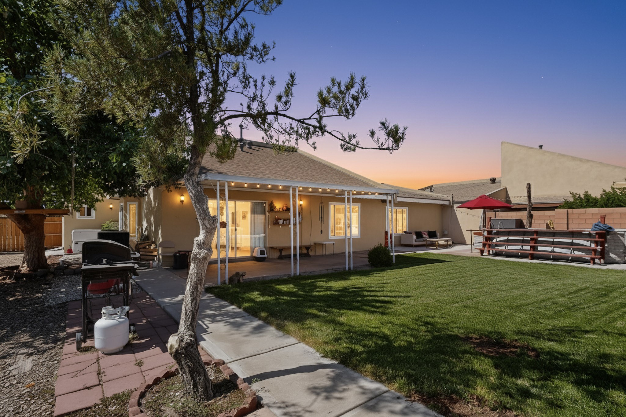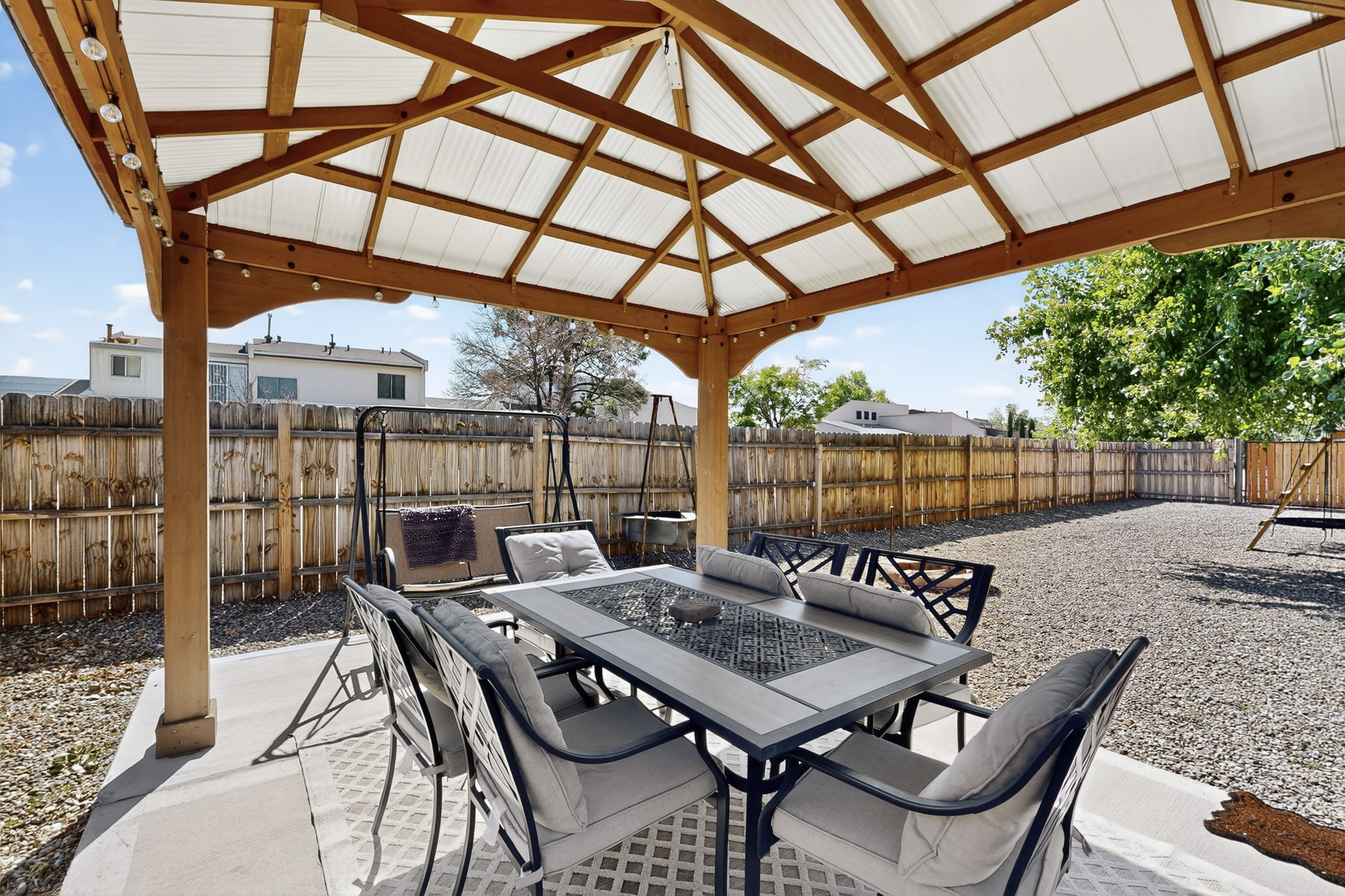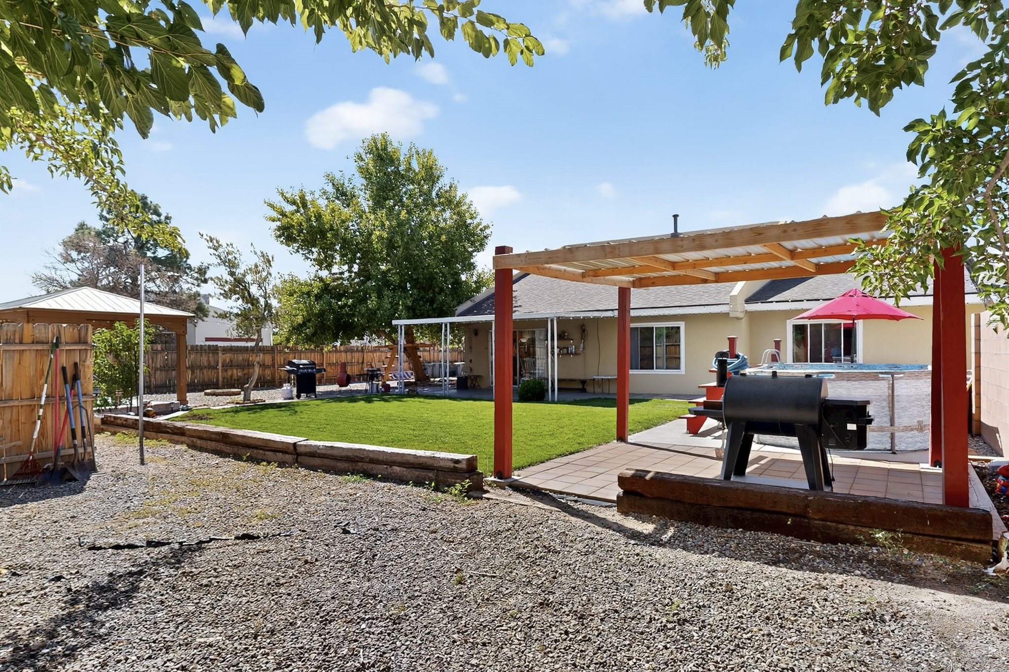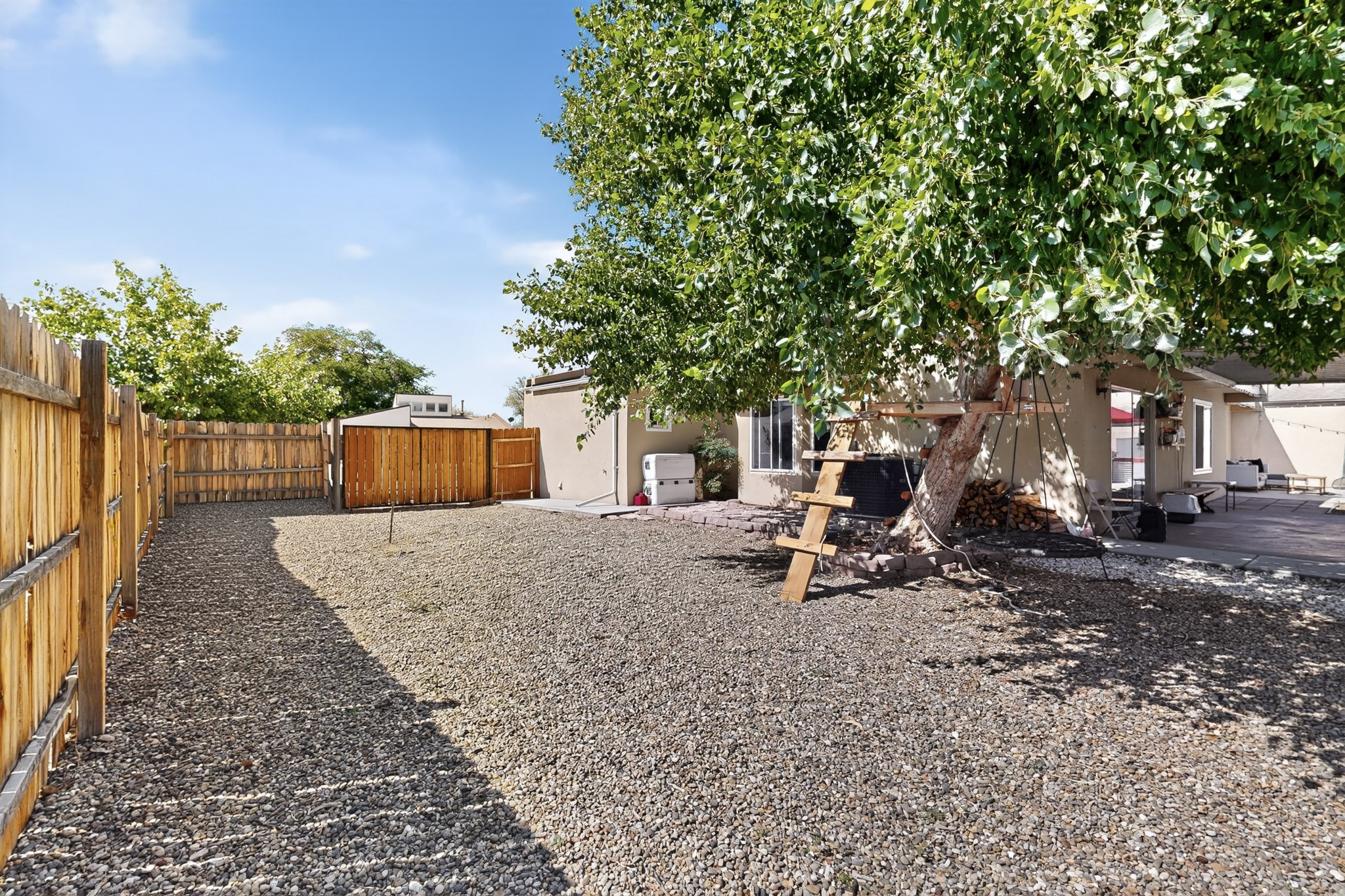 Welcome to this stunning 4 bedroom 2 bathroom property that offers 2,106 sq ft of thoughtfully designed living space in one of the most desirable neighborhoods in Rio Rancho. This home features REFRIGERATED AIR, Central air Heating, water heater installed 2023, NEWER roof TPO with a TRANSFERABLE WARRANTY. The Solar System ONLY has a bill of 109.00$ and a PNM bill of $8 dollars. NO POLYBUTYLENE. Conveniently located close to restaurants, shopping centers and schools. Come and take a tour of this beautiful home today!