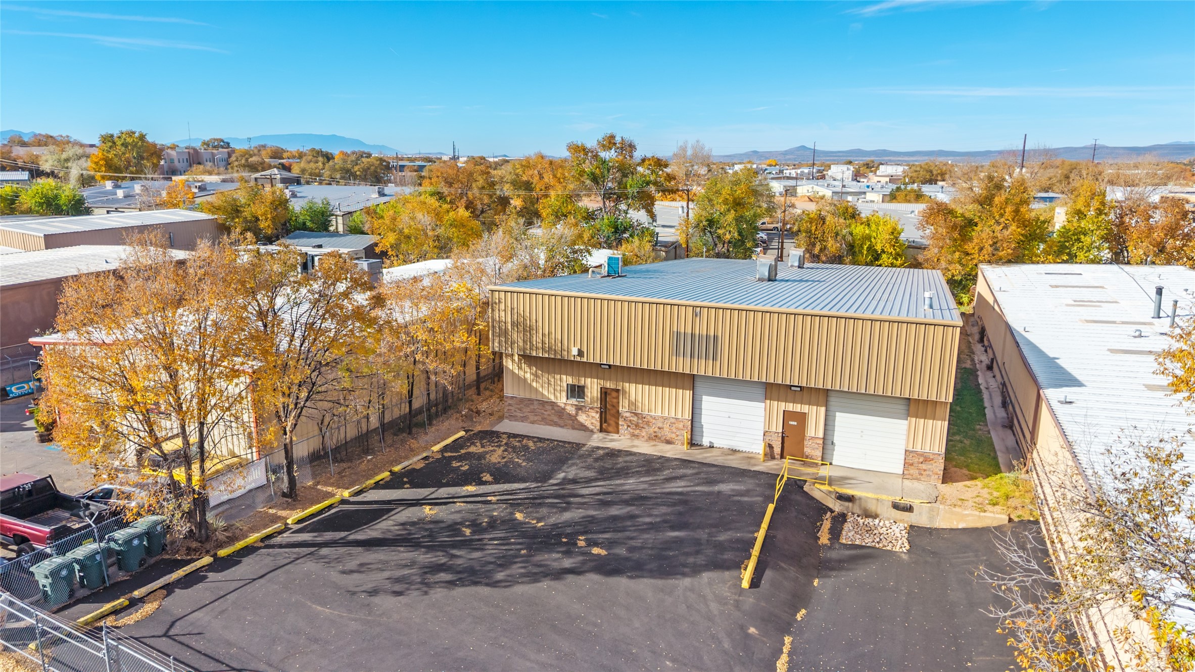 UPDATED BUILDING 7,818 SF industrial building on 0.35 acres located in the Siler corridor. THE property includes a high-bay warehouse with drive-in access, truck high loading dock, fenced and paved yard, and a small office area with restroom. The building is constructed of steel framing, metal roof, and concrete slab flooring. Clear height is approximately 18 feet. Zoned I-1 (Light Industrial). Suitable for warehouse, fabrication, or distribution uses. Utilities include gas, water, sewer, and 120/240 V single-phase power (3-phase available nearby). Built in 1989 and now freshly updated with new asphalt, new LED Lights, new 200amp electrical service, new mini split Airconditioners, new paint/flooring in the offices, new sinks in the bathroom, fresh roof maintenance and fresh gutter/drainage maintenance.