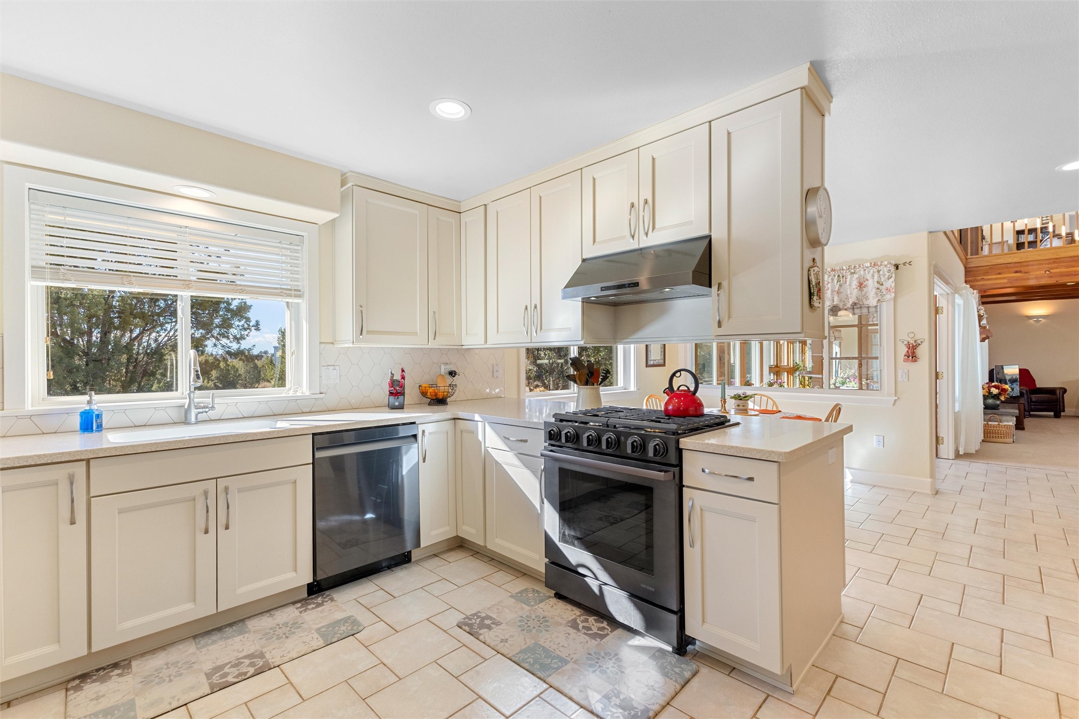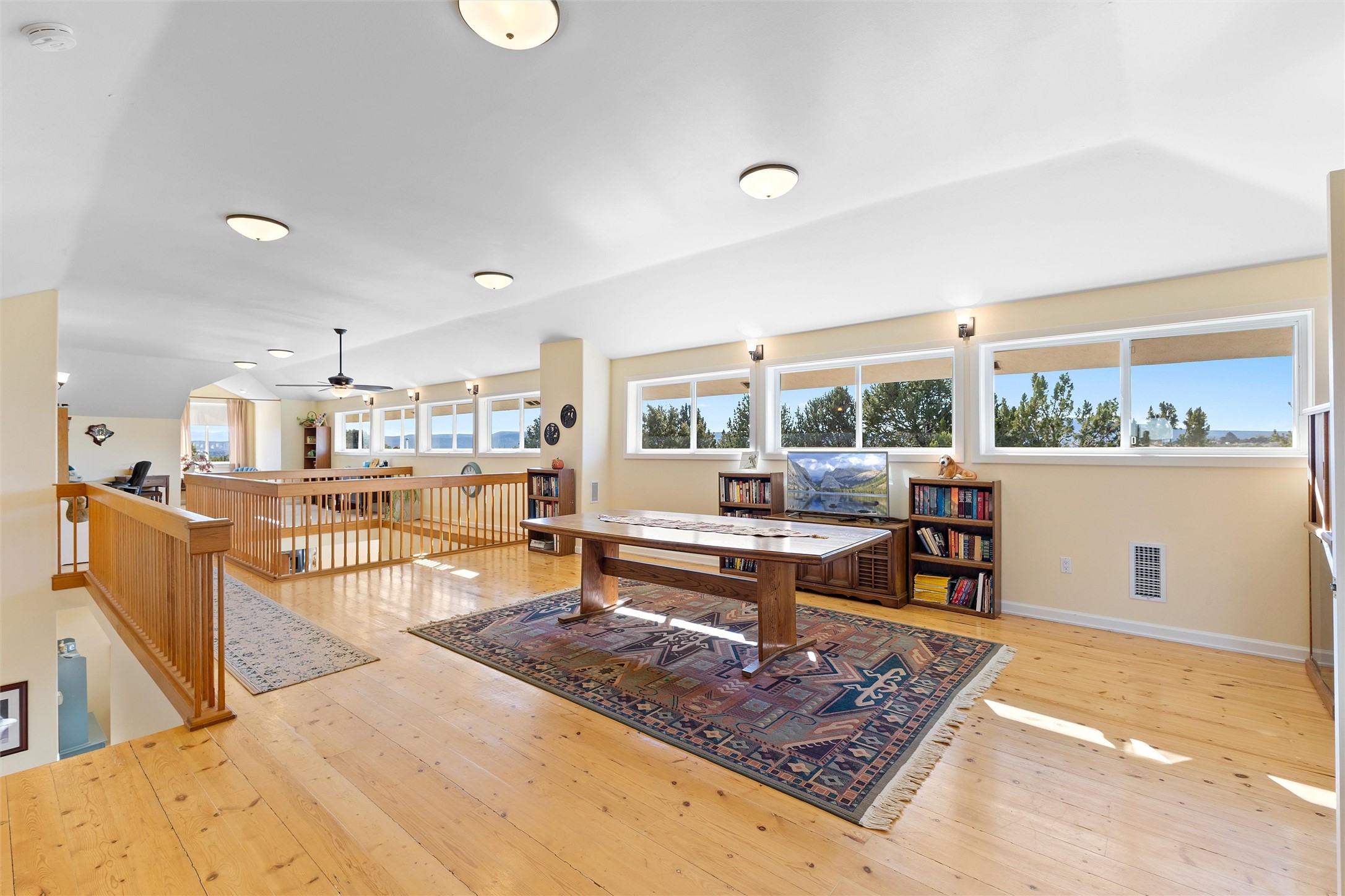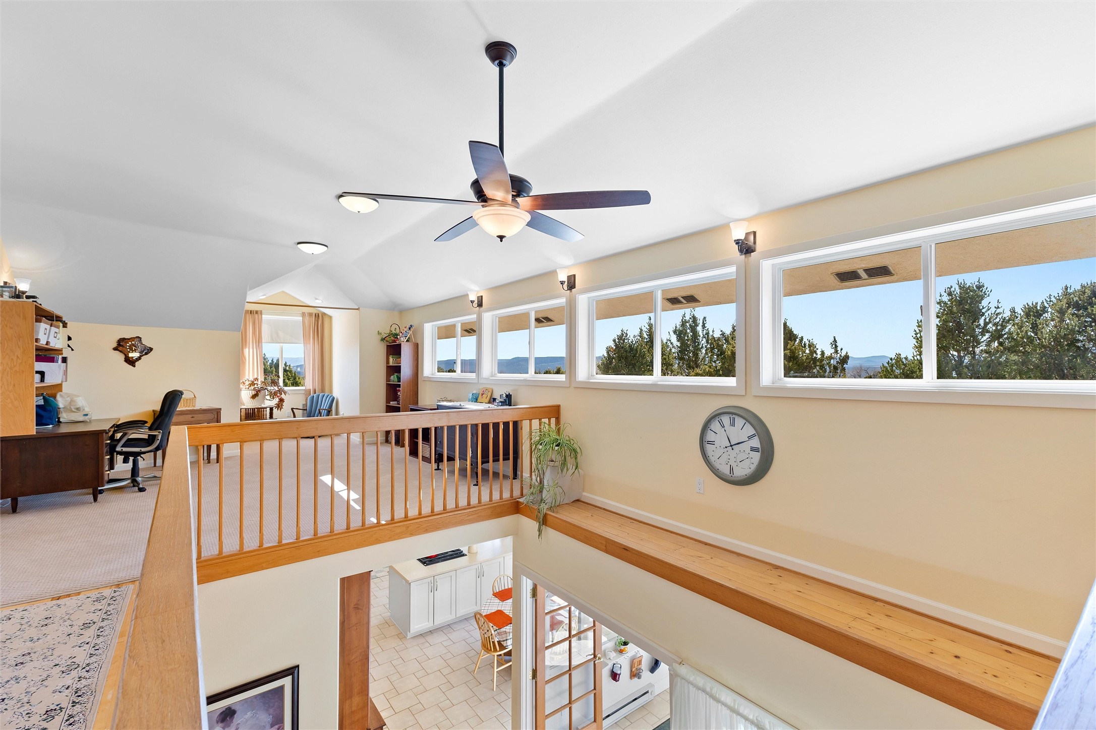 Spacious, thoughtfully designed, and full of extras, 177 Piedra Loop offers room to live, work, and play. The main home features 4 bedrooms, 5 bathrooms (3 full, 2 half) and approximately 4,810 sq ft of living space, with ADA-friendly features including extra-wide hallways and doorways, raised electrical outlets, ramps, and a bedroom with an attached ADA-compliant bath. Bedrooms enjoy cozy dormer sitting areas and laminate wood flooring, and there is excellent storage throughout, including two walk-in-height attic spaces upstairs.The heart of the home centers around an updated kitchen, a two-sided glass fireplace shared by the living room and the 10x40 sunroom, and comfort features like a central vacuum system and cellular blinds. The sunroom offers wonderful solar gain and is an ideal spot for plants to thrive indoors year-round.Outside, an automatic gate welcomes you into a treed lot with defined gardening areas and a watering system, plus a patio and fire pit for outdoor relaxing and entertaining. A true standout is the approximately 2,600 sq ft shop, with two bays featuring RV-height doors. Inside, you'll find a heated, well-lit woodworker's dream space with easy-clean floors and its own bathroom. Above the shop is a studio with a kitchenette, bathroom, additional storage, and an electric cargo lift to make moving items upstairs a breeze.This property is an exceptional opportunity for anyone needing generous living space, accessibility features, hobby/workshop space, guest or rental potential, and room for RVs or special projects--all in one place.