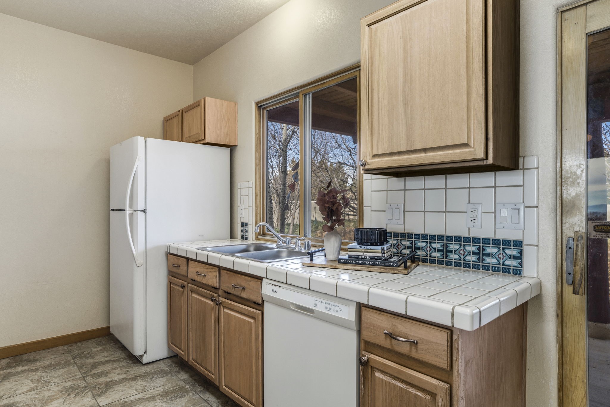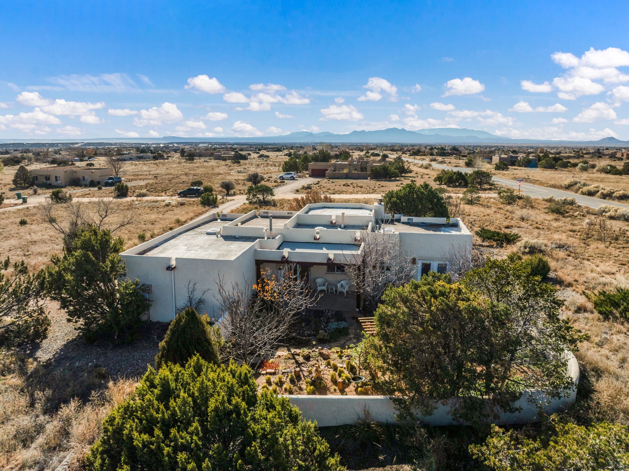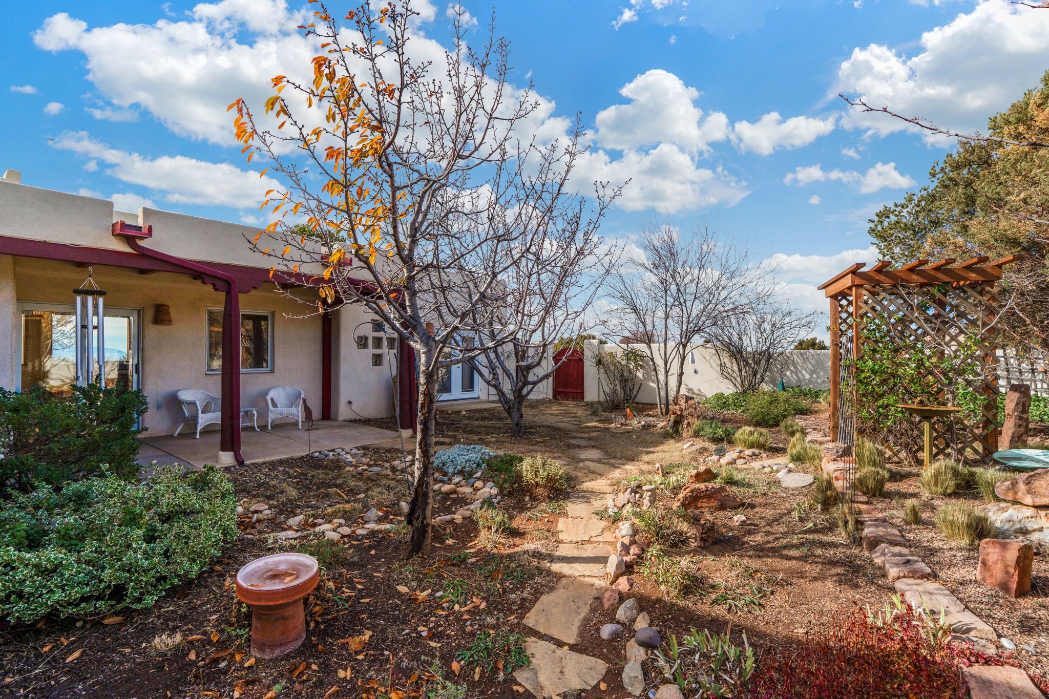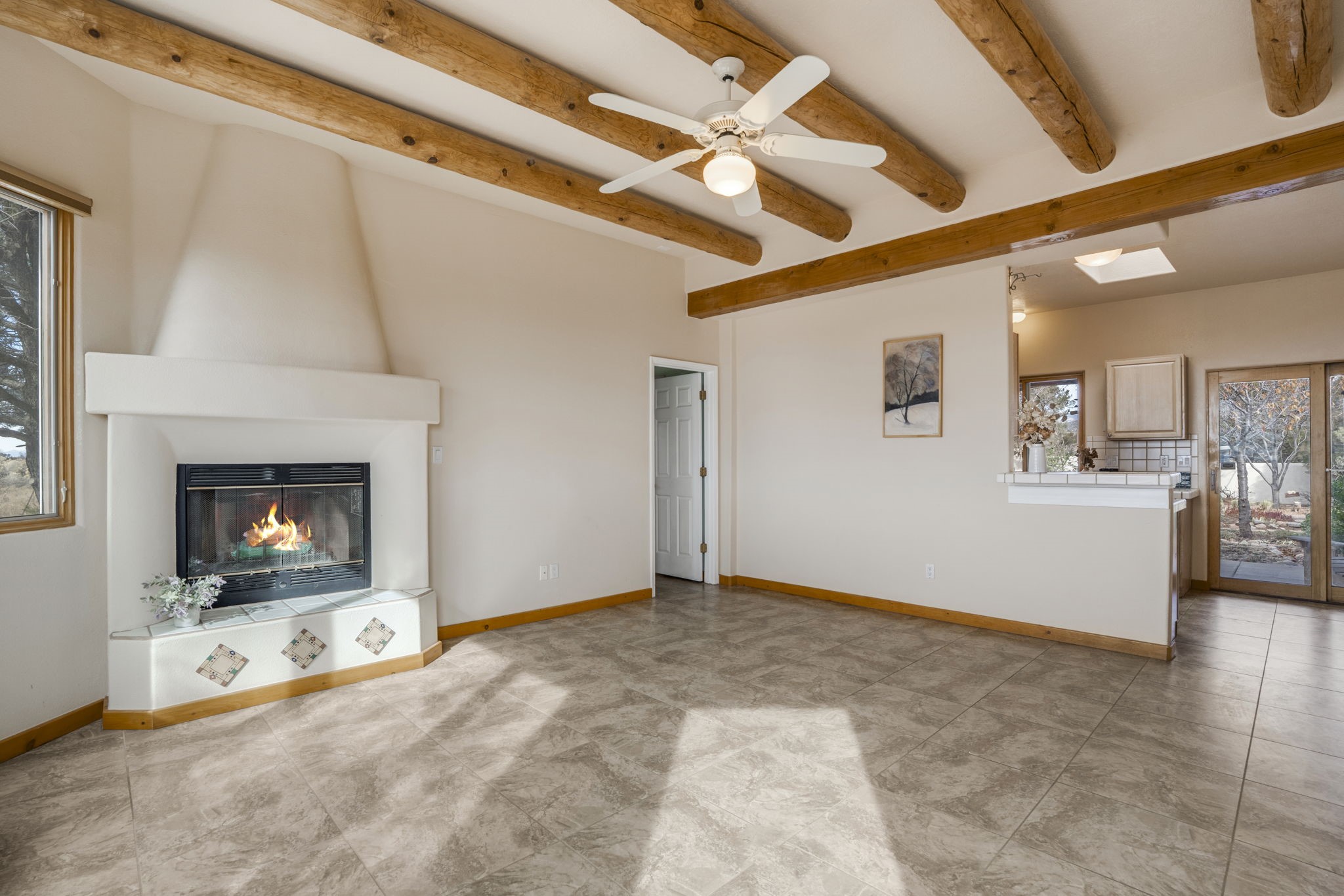 Experience Eldorado living in this light-filled home set on 1.44 acres with wide-open Santa Fe skies. This inviting 3-bedroom, 2-bath residence offers no carpet, wood beam accents, and a charming fireplace, creating a warm Southwestern feel with a clean, modern touch. Large windows throughout the home offer natural light and frame the surrounding landscape. The thoughtfully designed layout offers easy everyday living, while the private, fully enclosed courtyard with a covered patio provides a serene outdoor retreat, perfect for morning coffee, sunset views, or quiet evenings under the stars. Eldorado residents enjoy access to a clubhouse, pool, playground, tennis, basketball and pickleball courts, a dog park, miles of walking trails, and horse stables. With beautiful views in every direction, it feels like country living just minutes from the heart of Santa Fe.