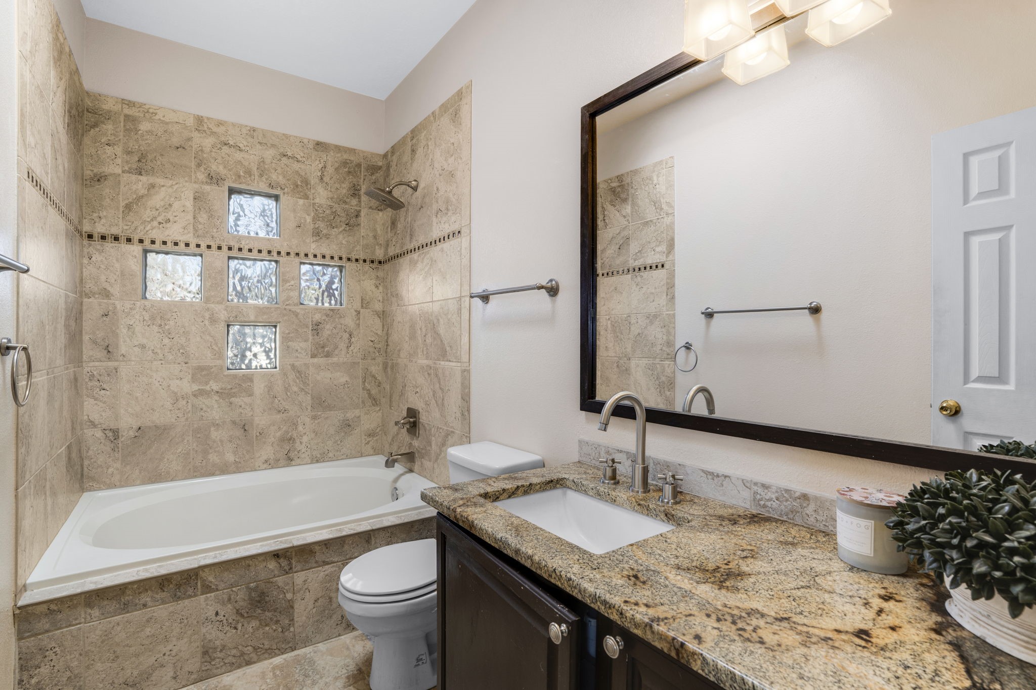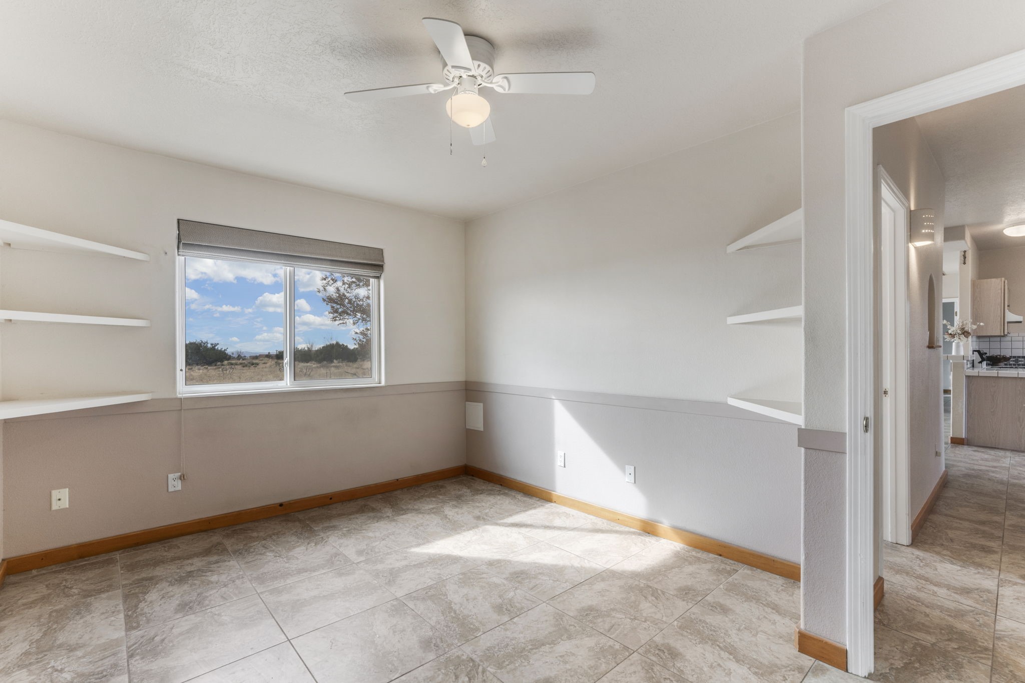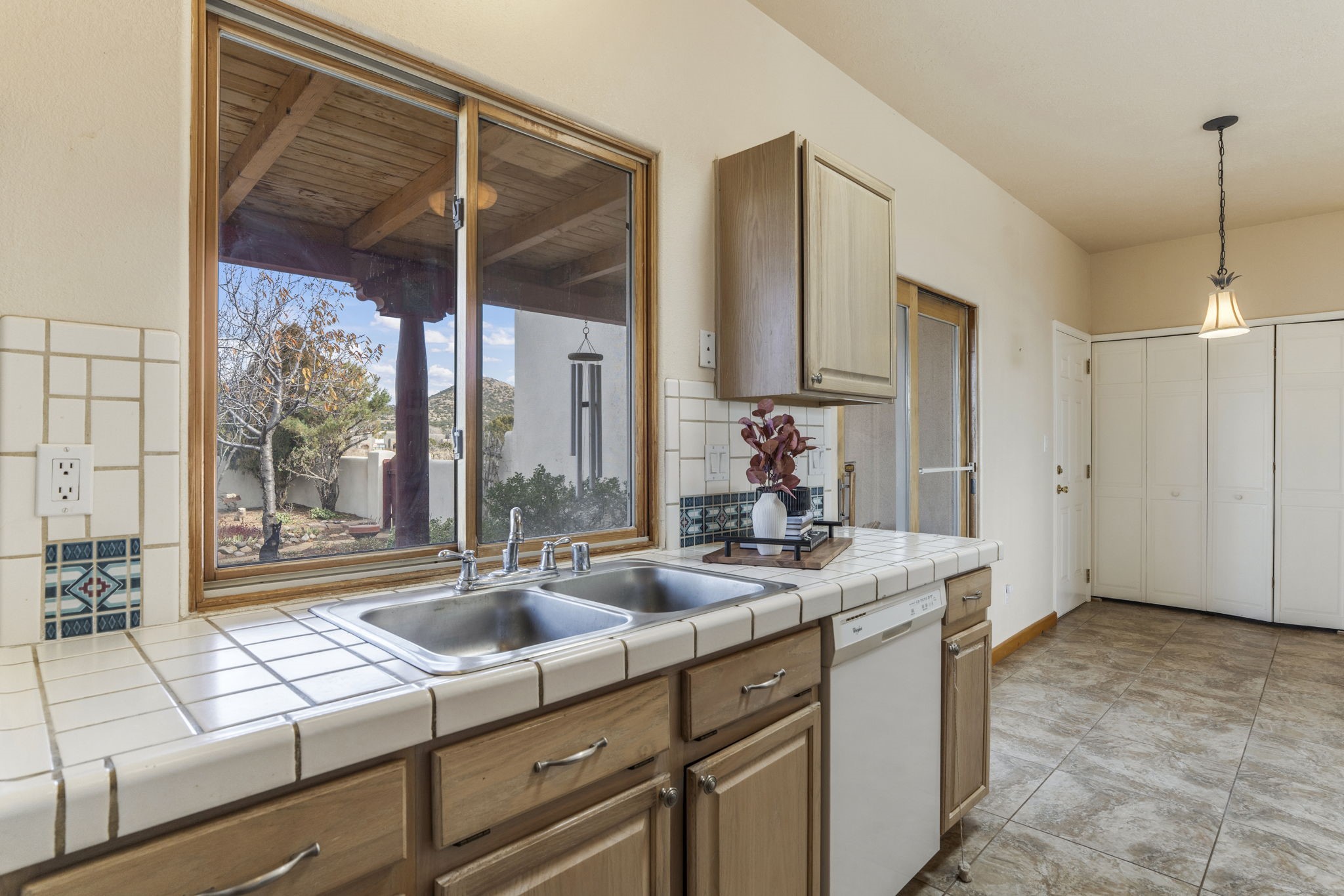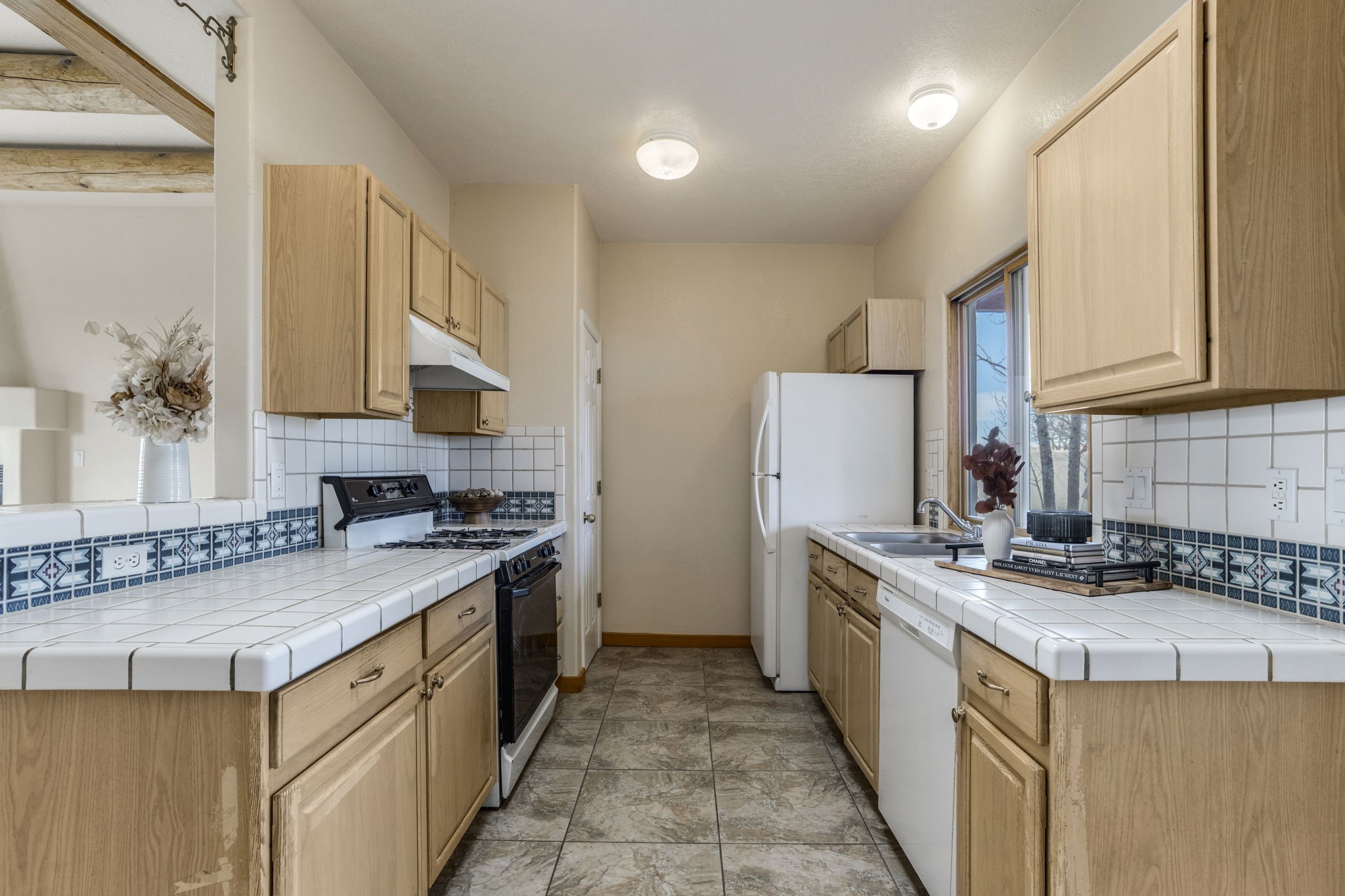 Experience Eldorado living in this light-filled home set on 1.44 acres with wide-open Santa Fe skies. This inviting 3-bedroom, 2-bath residence offers no carpet, wood beam accents, and a charming fireplace, creating a warm Southwestern feel with a clean, modern touch. Large windows throughout the home offer natural light and frame the surrounding landscape. The thoughtfully designed layout offers easy everyday living, while the private, fully enclosed courtyard with a covered patio provides a serene outdoor retreat, perfect for morning coffee, sunset views, or quiet evenings under the stars. Eldorado residents enjoy access to a clubhouse, pool, playground, tennis, basketball and pickleball courts, a dog park, miles of walking trails, and horse stables. With beautiful views in every direction, it feels like country living just minutes from the heart of Santa Fe.