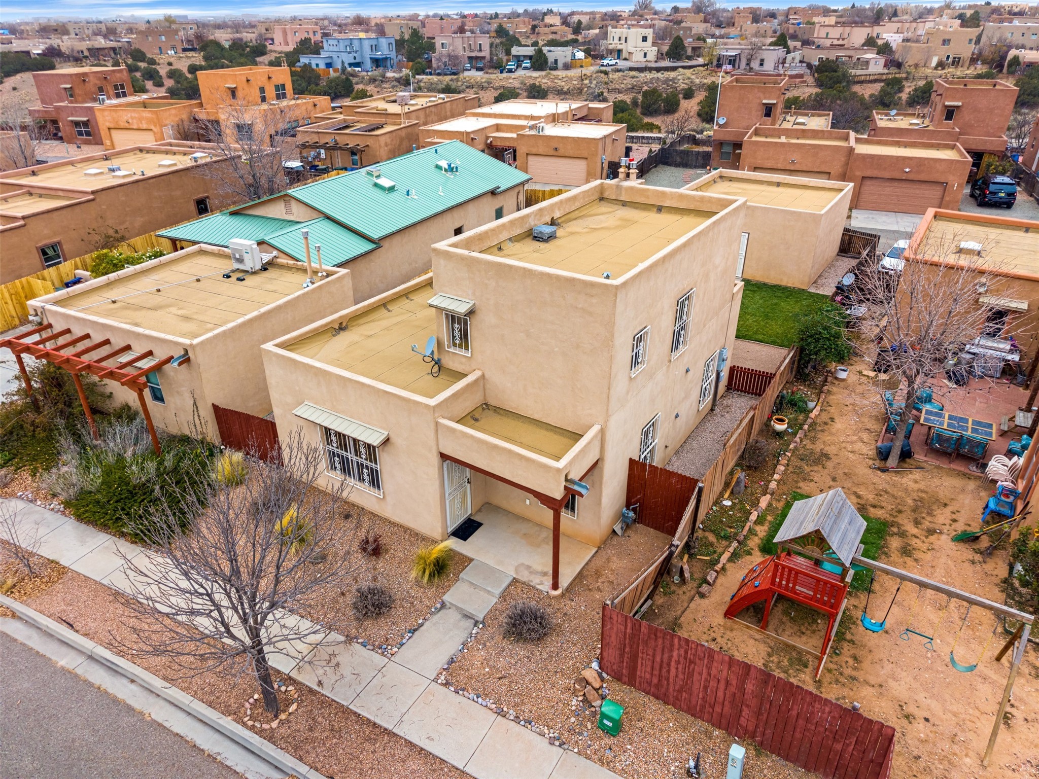 Inviting and well-loved 3-bedroom, 2-bath home featuring a spacious primary suite on the second floor. This property offers a generous lot with a detached garage, fully landscaped grounds, beautiful Venetian plaster walls, and security bars on the windows. Situated in a perfect location in Santa Fe, NM, the home is close to shopping, schools, multiple parks, the local library, and youth center programs, with easy access to I-25 and 599. A warm, well-cared-for home ready to welcome its next owner.