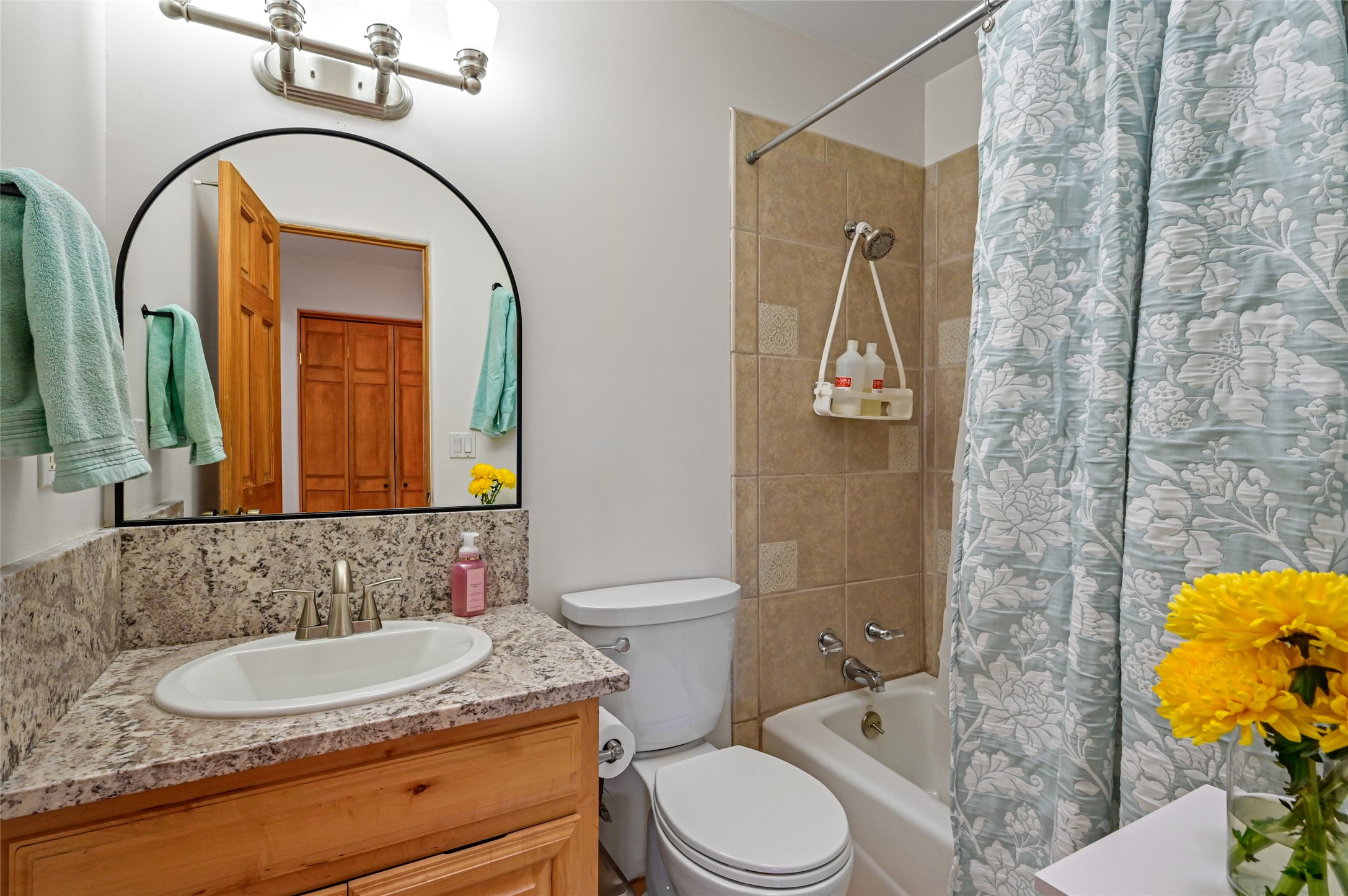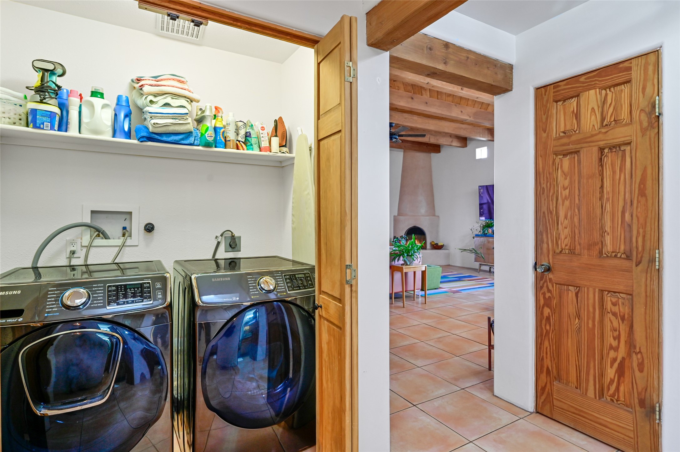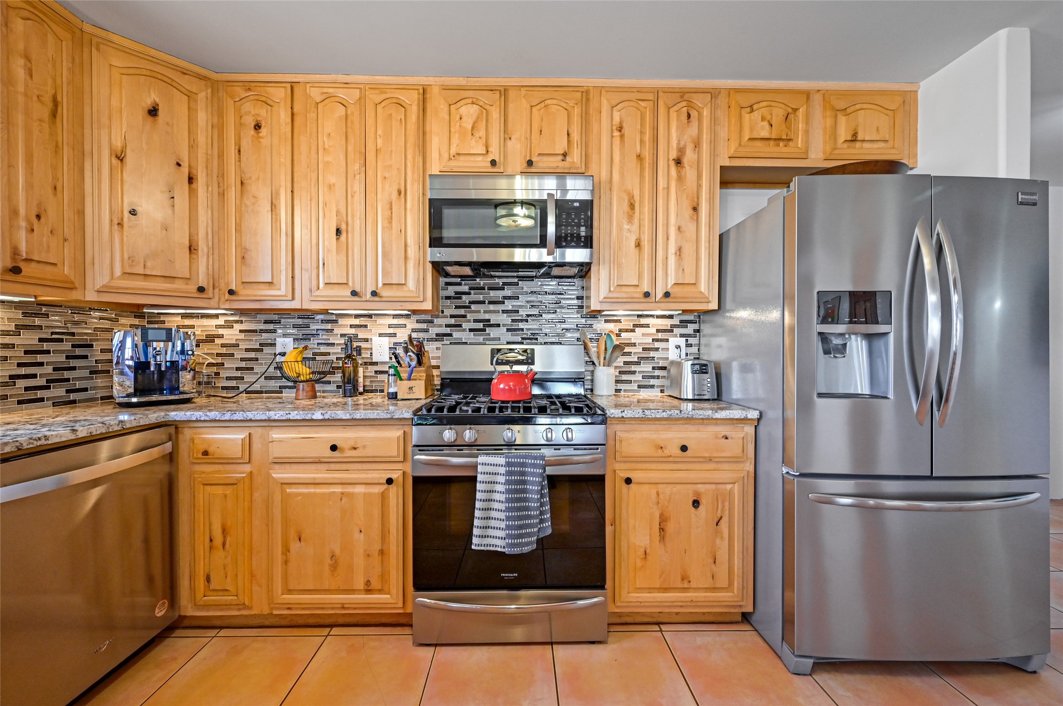 You will be delighted the minute you walk into this move in ready gem. Loaded with Santa Fe style, yet with all the modern touches, tile floors, mini-splits, granite counters, SS appliances. The open flow from living area to dining room and kitchen is perfect for gatherings with family and friends. The Owner's suite and oversized second bedroom are situated allowing for access to enjoy the backyard covered patio. The location is central to trails, shopping, the plaza, and fine dining, and located just down the street you can enjoy the neighborhood park. Once you see this home, I think you will agree it has a lot to offer.