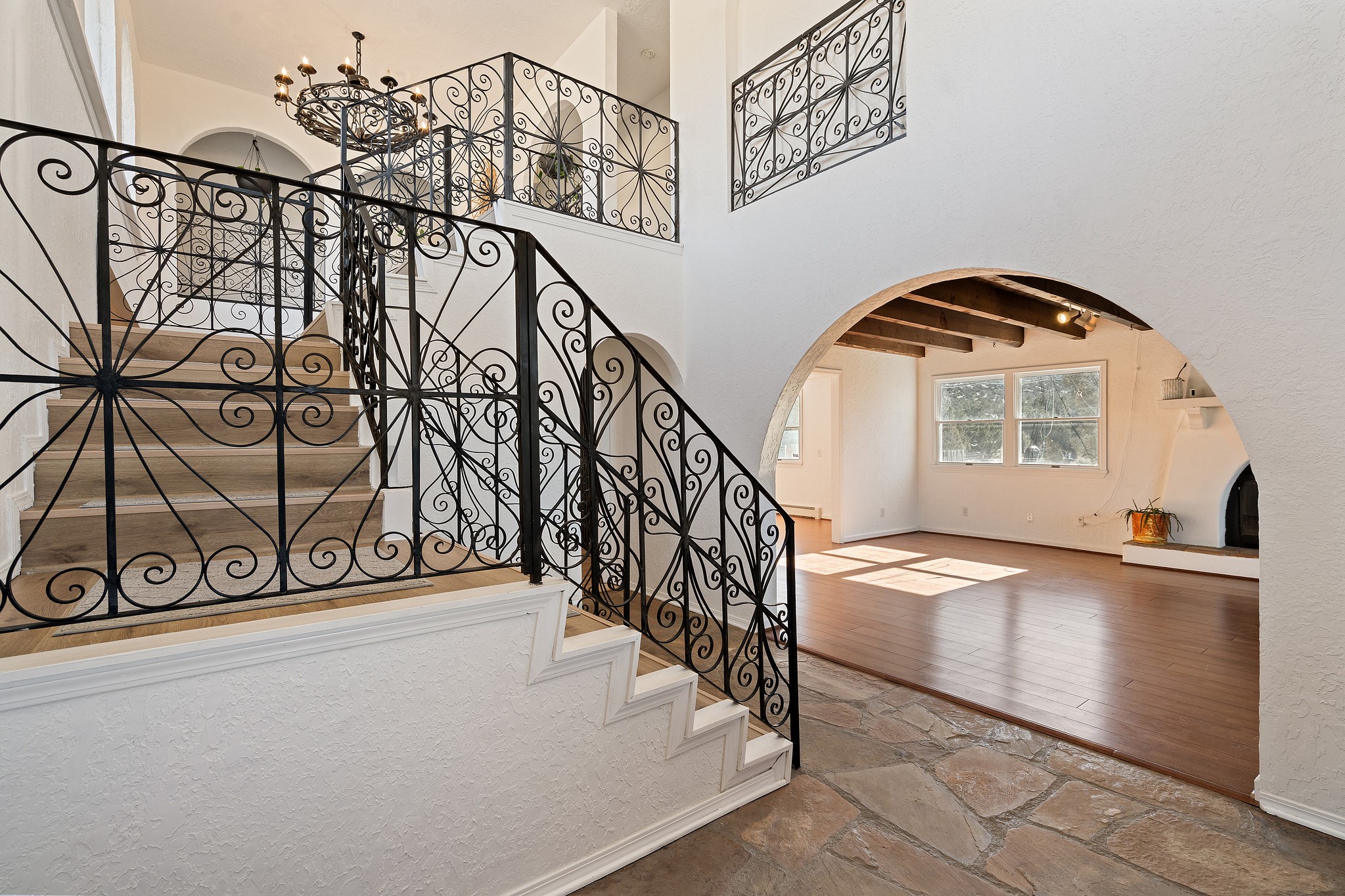 Experience Northern New Mexico living in this beautifully crafted 4-bedroom, two-story stucco home on .83 acres in Velarde. A classic Spanish tile roof, mature landscape, and a welcoming spacious foyer set the tone the moment you walk in. The home offers an ideal layout with a formal dining room for gatherings, a bright kitchen with a cozy breakfast nook, and three fireplaces that create warmth and ambiance throughout.Upstairs, step out onto the rooftop deck and enjoy sweeping valley and mountain views--perfect for stargazing or evening relaxation. The oversized 2-car garage provides ample storage and includes two EV circuits, making it future-ready for modern living.With nearly an acre of space to spread out, this property offers privacy, charm, and room for gardens, outdoor living, or simply enjoying the peaceful surroundings. This Velarde gem blends character, comfort, and a touch of historic style--you'll want to see this one in person.