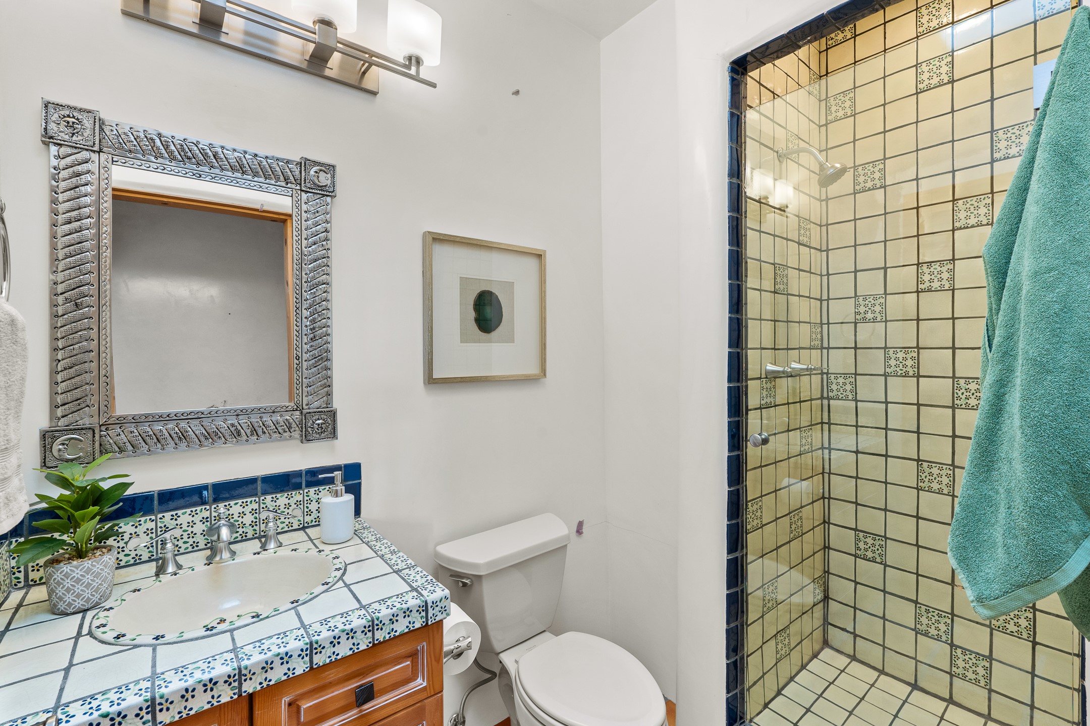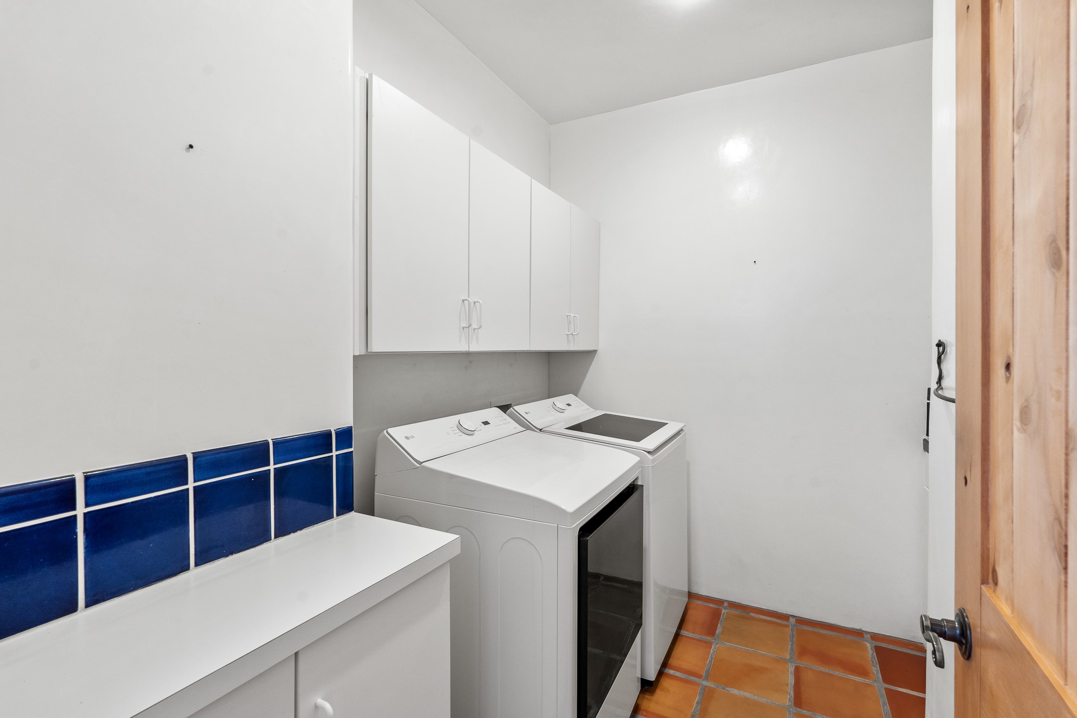 Located on a quiet cul-de-sac in the desirable Cerros Colorados neighborhood, this beautifully renovated 2,693 sq. ft. home sits on 0.58 acres with sunset and Sandia mountain views. Just 10 minutes to the Plaza and directly adjacent to the Dale Ball Trail system, this residence offers the perfect blend of natural beauty, privacy, and accessibility. Renovated down to the studs between 2022-2024, the home is filled with handcrafted Southwestern details--high viga ceilings, white hand-troweled plaster walls, coved ceilings, and a custom Indonesian front door. The main South-facing living area features a kiva fireplace and opens to a wraparound portal for seamless indoor-outdoor living. The kitchen is outfitted with white stone countertops, a butcher block island with prep sink, Viking range, Sub-Zero refrigerator, and bar seating--ideal for gatherings. A cozy den with its own kiva fireplace sits just off the kitchen. The private primary suite is located in the southwest corner with a balcony for stargazing and sunset views, one large West-facing banco and a spa-like bath with a clawfoot soaking tub, walk-in shower, and a generous walk-in closet. Two guest bedrooms and a full bath are located on the north side of the home, along with a large laundry room. A central powder room includes an additional shower for flexible guest use. A stairway leads to a heated 700 sq. ft. garage, perfect for storage, studio, or workshop needs. This property is a rare offering--artful, serene, and reimagined for modern Santa Fe living.