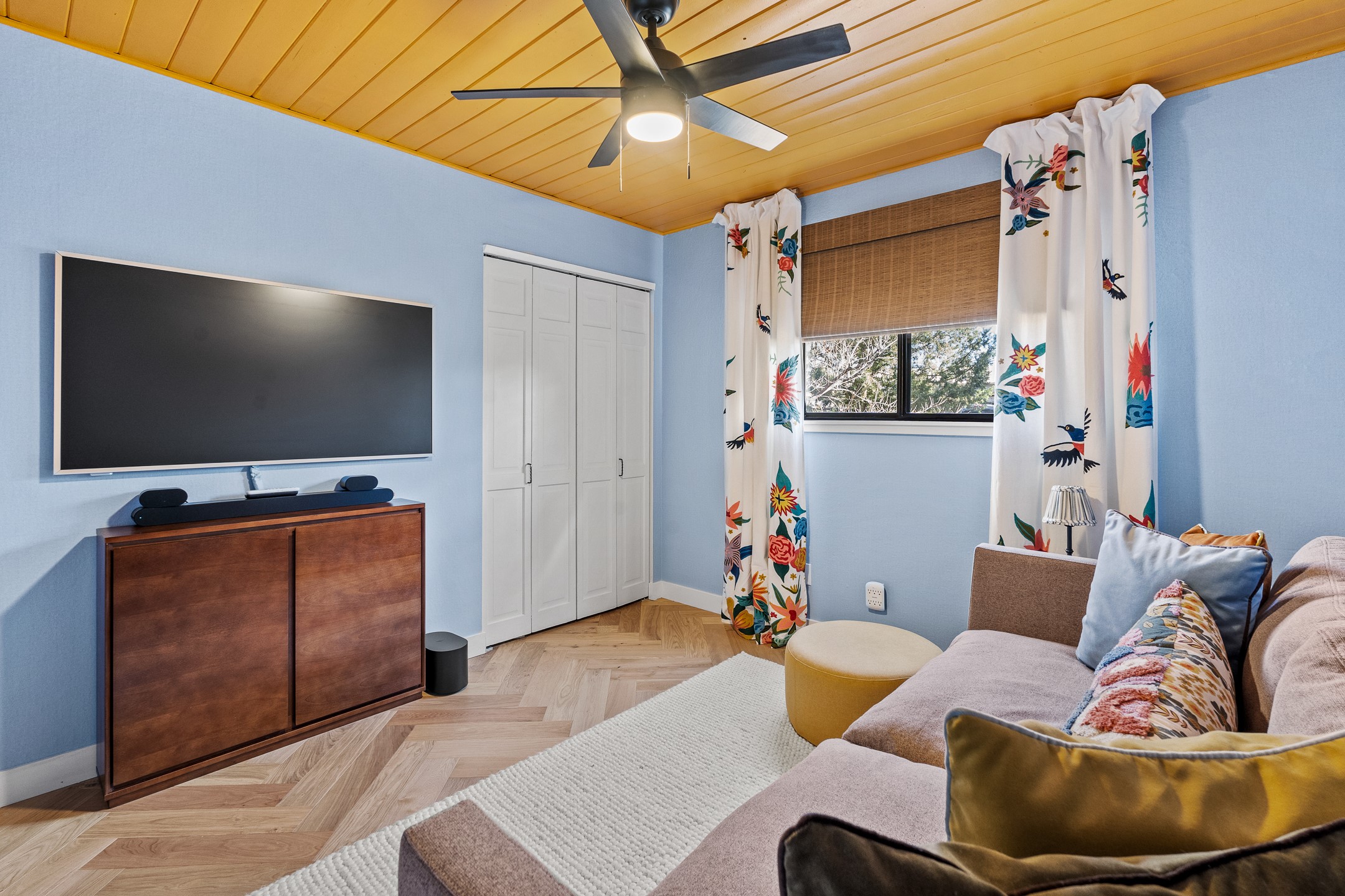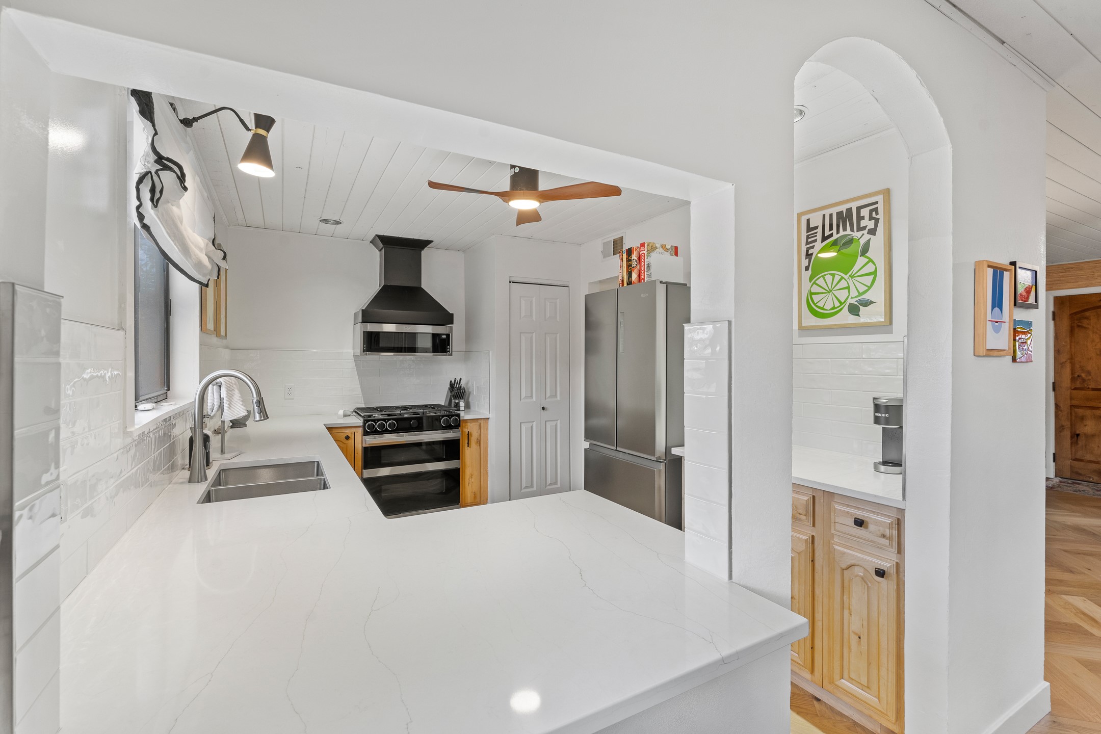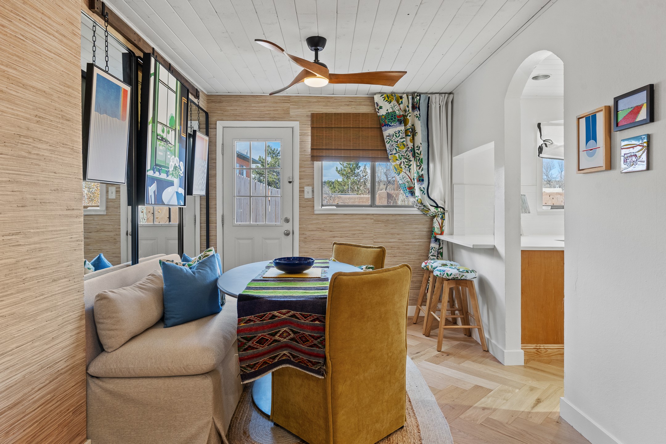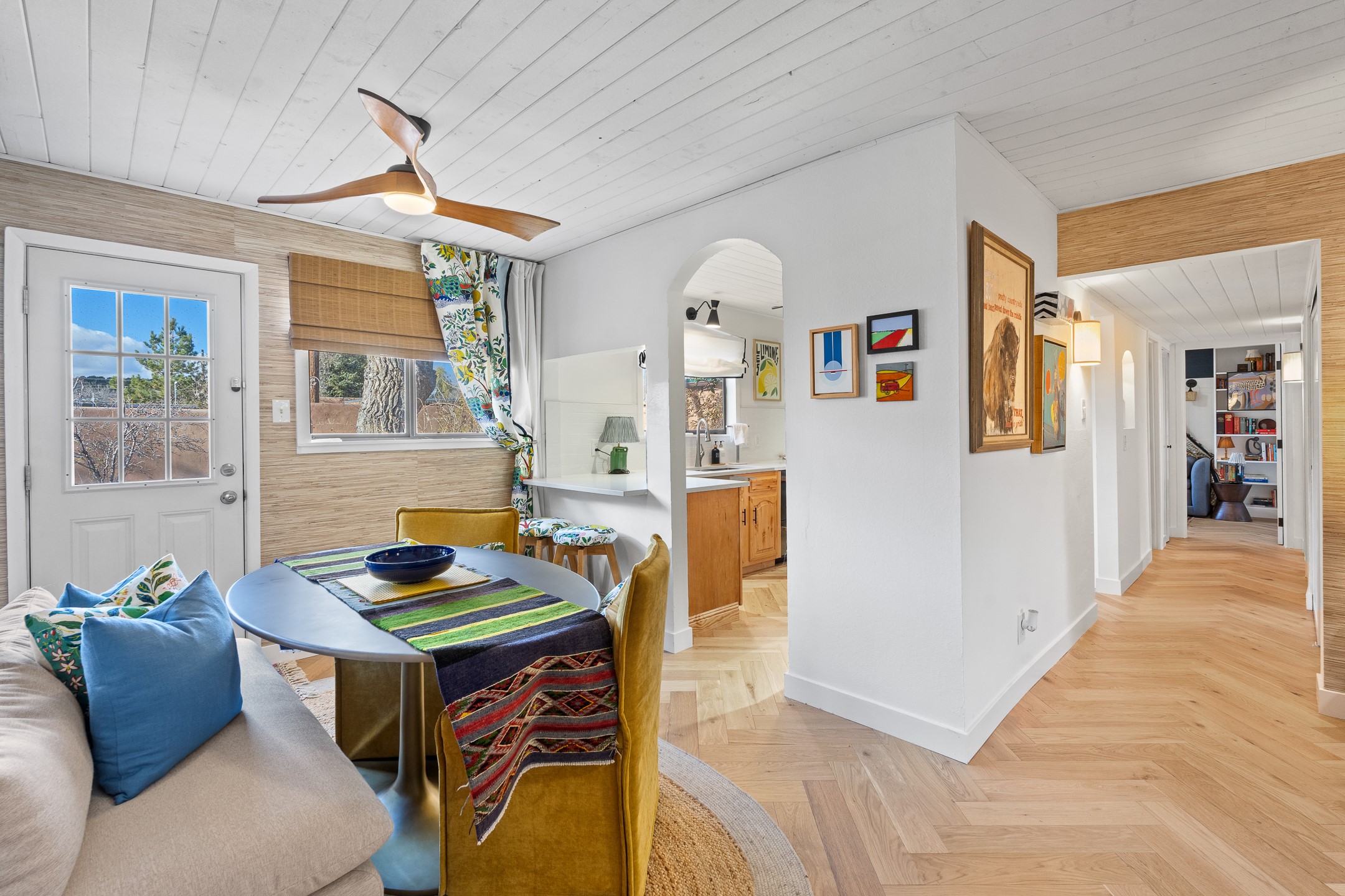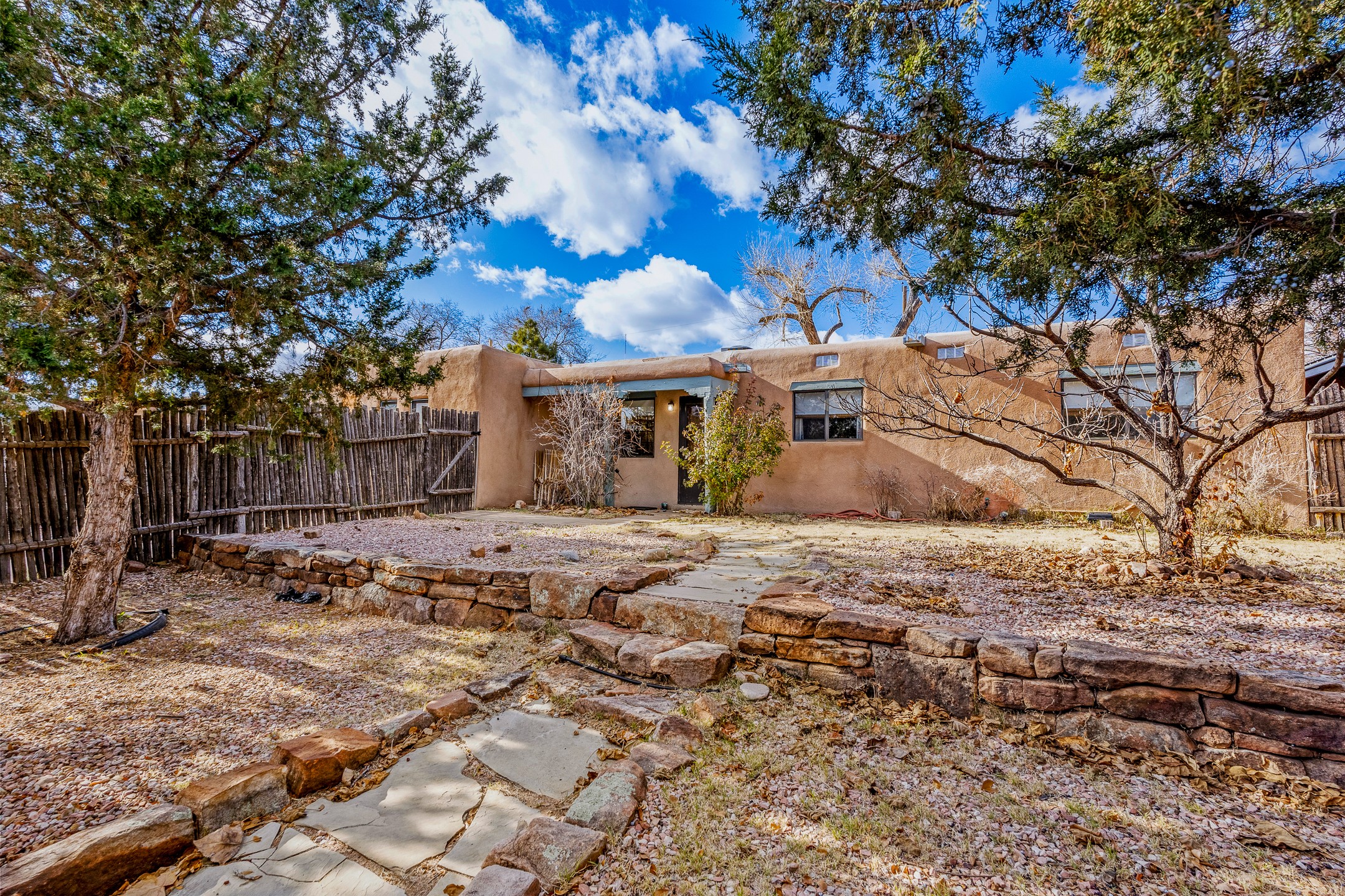 Completely remodeled and stylishly true to its mid-century roots, this three bedroom one bath house in Barrio La Canada with an attached one bed one bath is sure to wow. So much in this house has been improved or upgraded, there's nothing left to do but enjoy. The long list of upgrades includes but is not limited to new HVAC, appliances, kitchen counter tops, doors, flooring, walls and ceilings, as well as a new electrical panel and a roof sealing. The attached casita has its own entrance and yard and is just as charming as the primary. A shed in the back provides extra storage. Two miles from the plaza and short walk from the Santa Fe River, this move in ready home is convenient to everything. Priced at stated value from a recent (November 2025) appraisal.