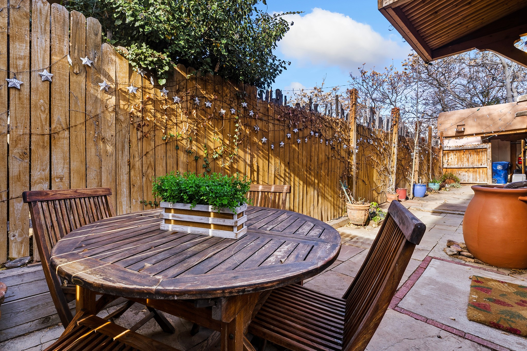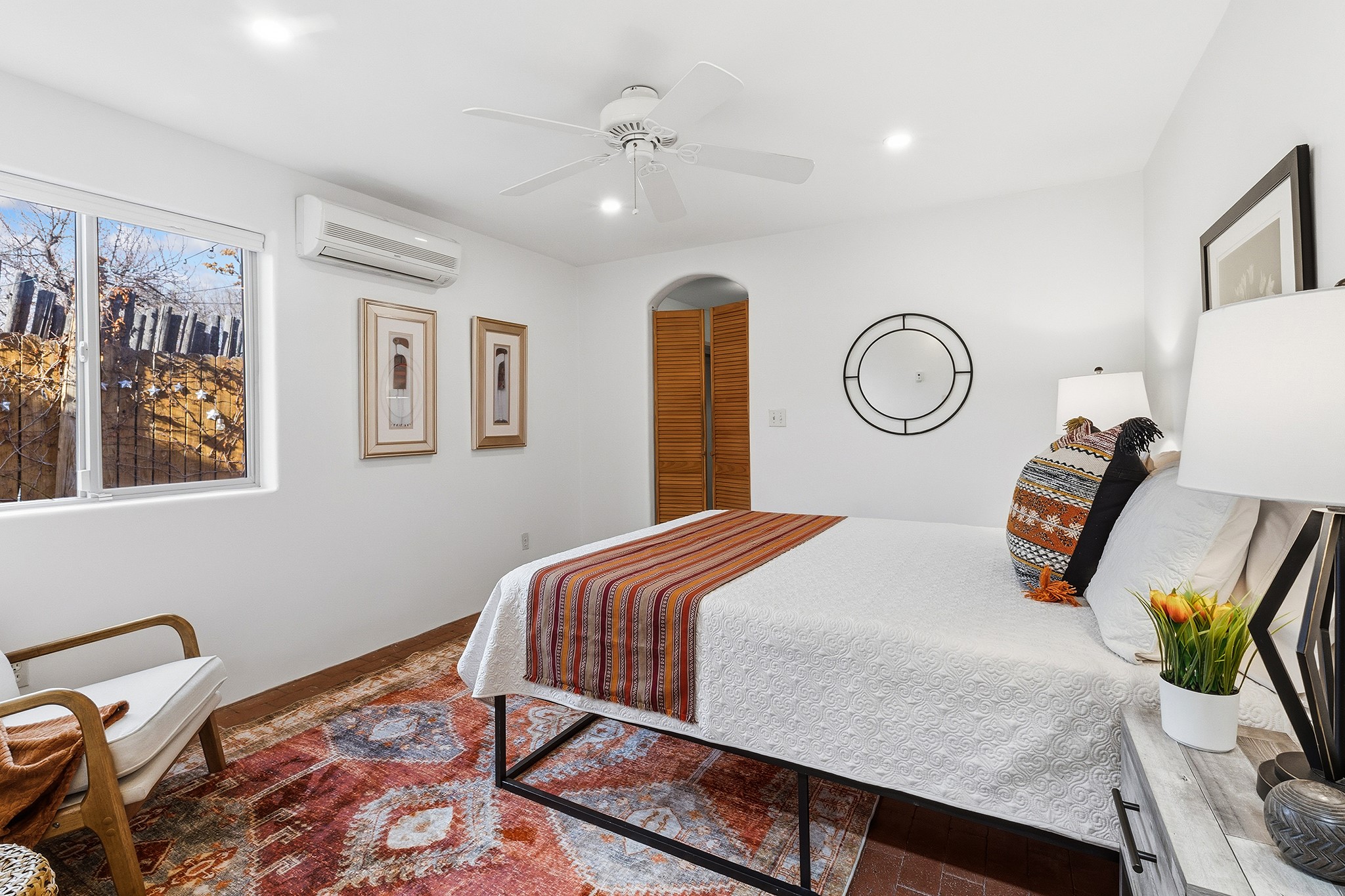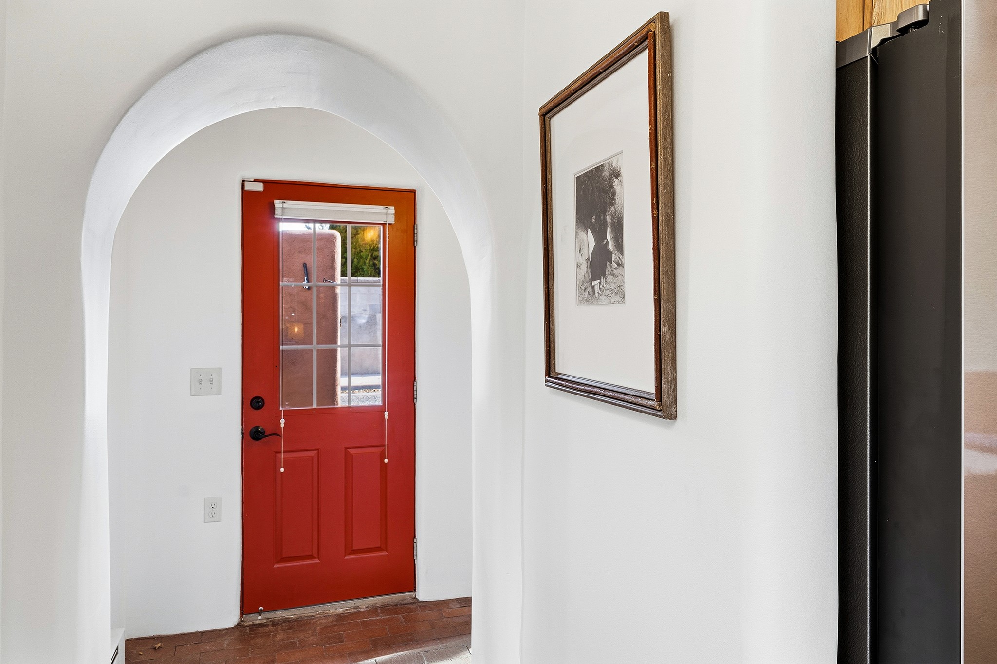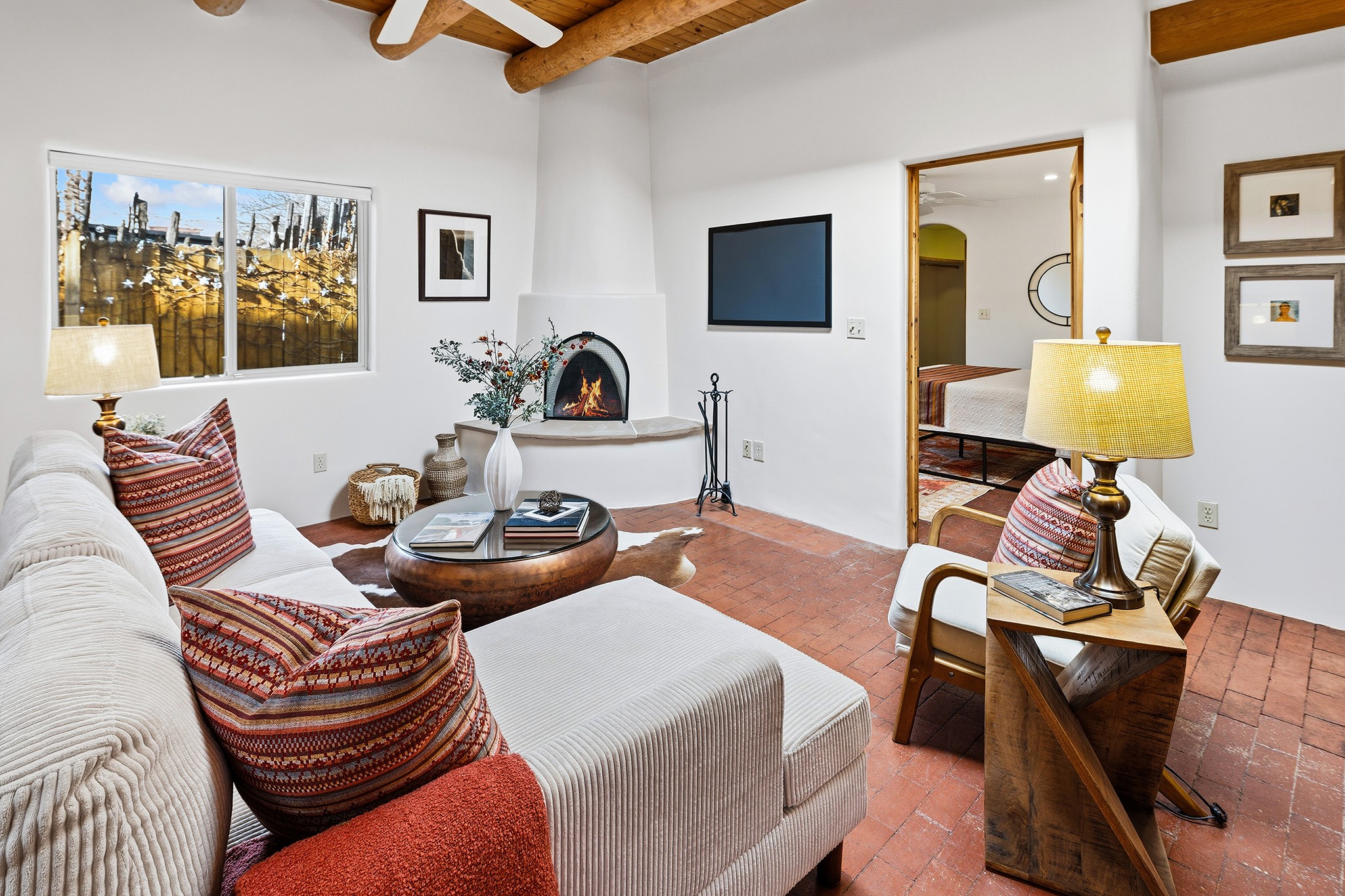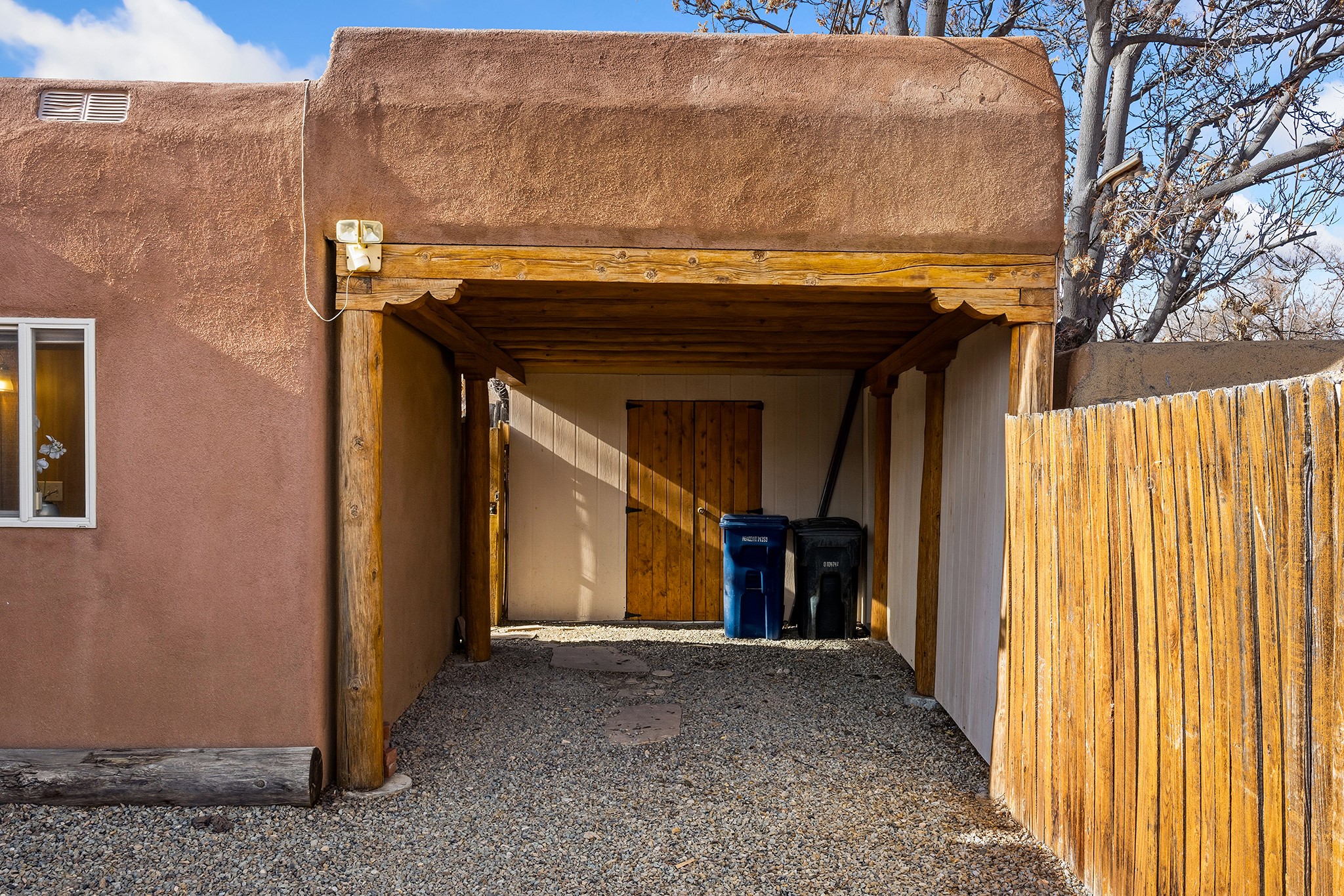 Rebuilt in 2006 on the foundation of an original 1940s adobe dwelling, this bright and open 2-bedroom, 2-bath home, with a 2013 office/studio addition, is a fine blend of traditional Santa Fe style and modern comforts. The kitchen features travertine countertops, hickory cabinetry, and all-new Samsung stainless-steel appliances (2025). Travertine tile graces both baths. There's in-floor radiant heat in all but the office, supported by a new high-efficiency boiler, plus a new, on demand water heater--both installed in 2025. Most of the home sports a new, TPO roof (2023). Fully enclosed behind walls and an electronic gate, this appealing property provides rare in-town privacy and secure parking just a half mile from the Coop, Leo's, and the Railyard's shops and galleries.