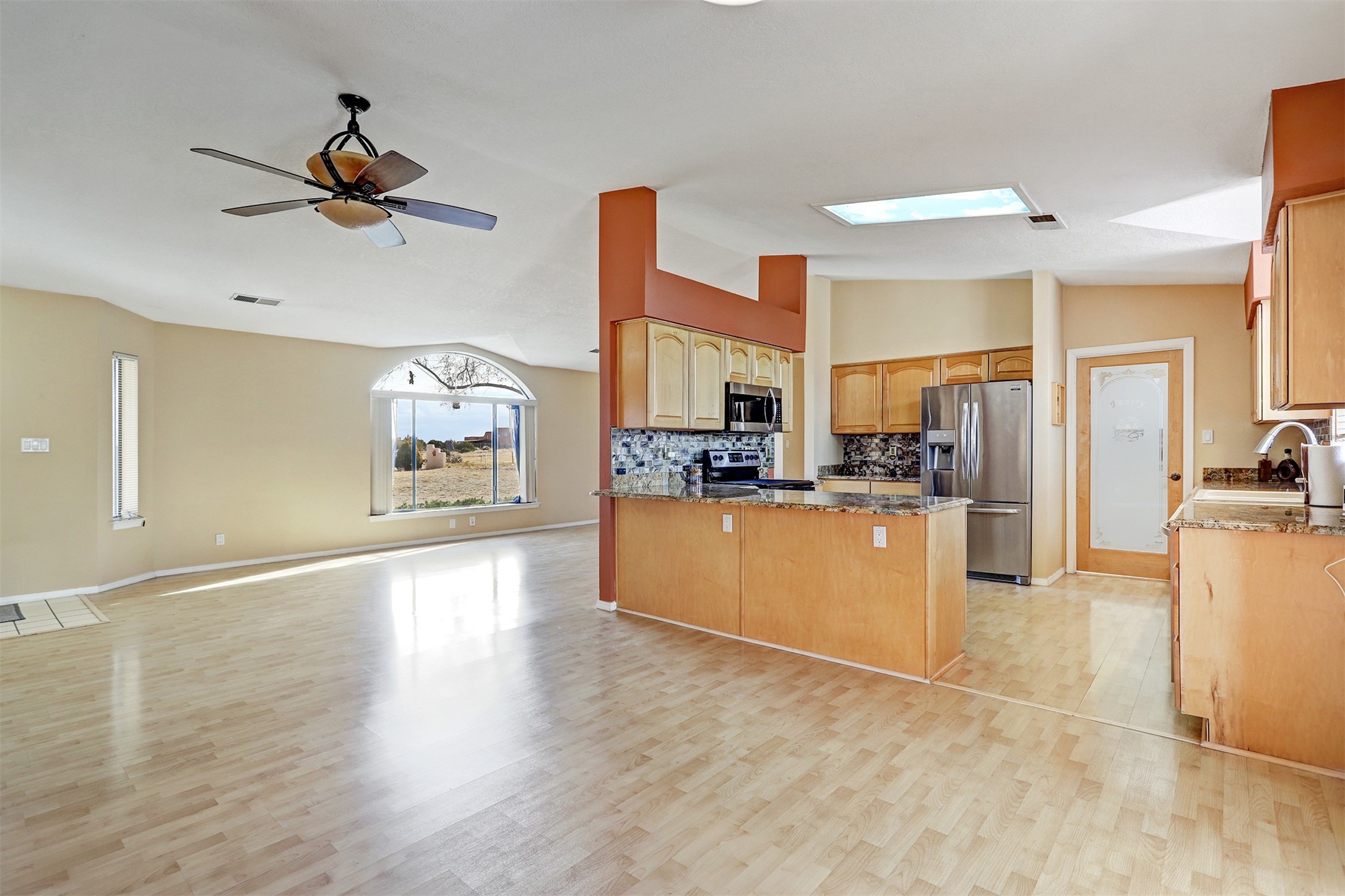 Listed below July 2025 appraisal on 2.5 tree-lined acres in La Cienega, 9 Puerto de Luna offers 3 bedrooms, 2 full baths a detached garage/shop and plenty of storage. This one-owner, well-cared-for property with its panoramic views offers year-round enjoyment both inside and out. Filled with an abundance of natural light, spacious layout with a nice sized kitchen, comfortable living areas and bedroom separation from the primary. The primary bedroom, closet and bath are huge! Utilities are provided by a private well, septic, and propane. The garage will house an RV with easy access off a private road, property is fully fenced. Enjoy the peace and SPACE of the community of La Cienega while being a quick drive into Santa Fe and access to the Santa Fe airport within minutes. Also, just minutes from Ojo Spa Santa Fe and Rancho de Las Golodrinas.