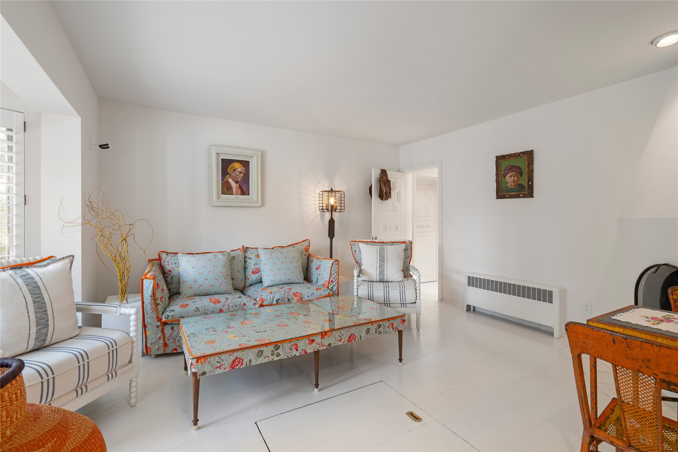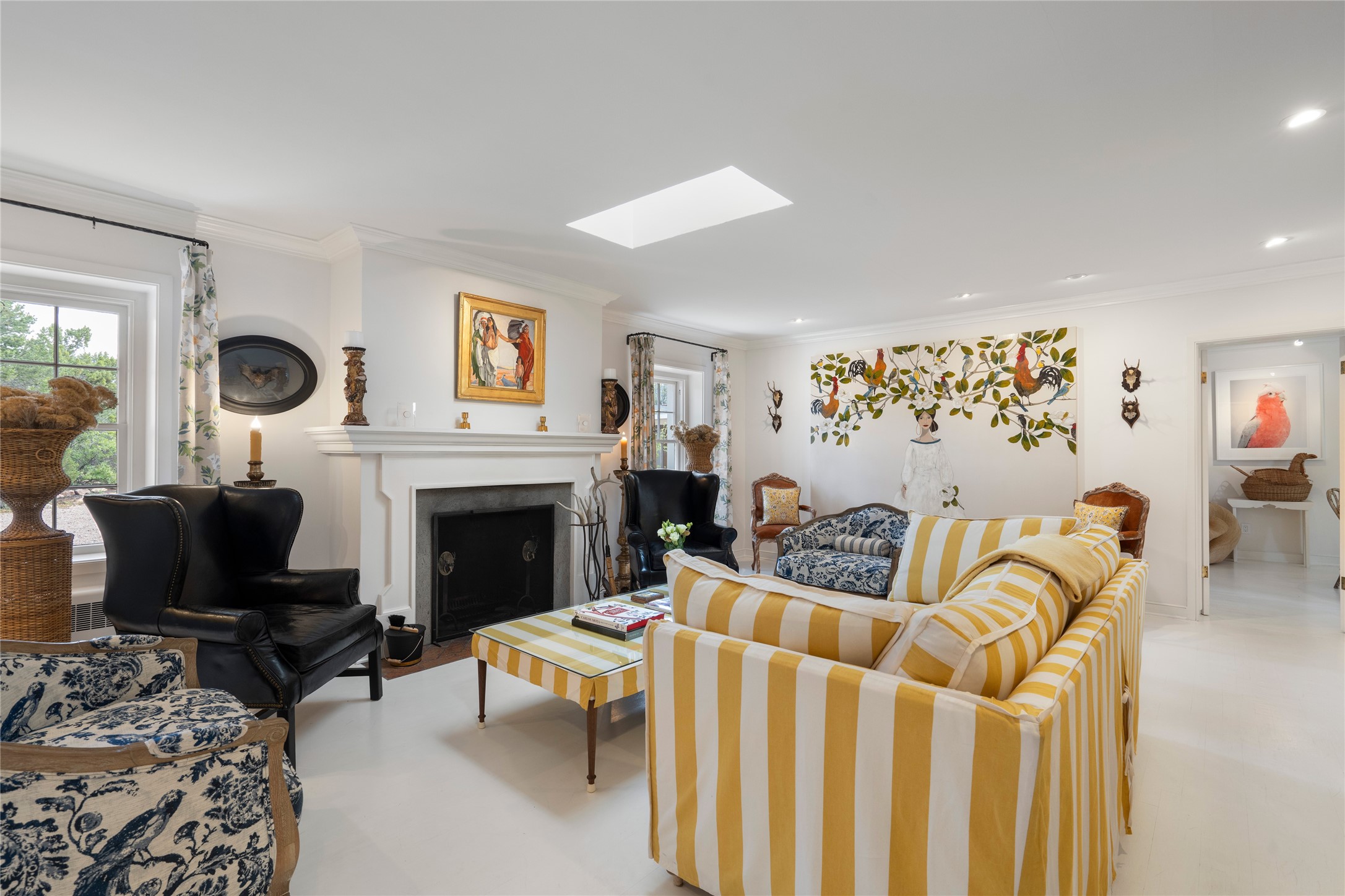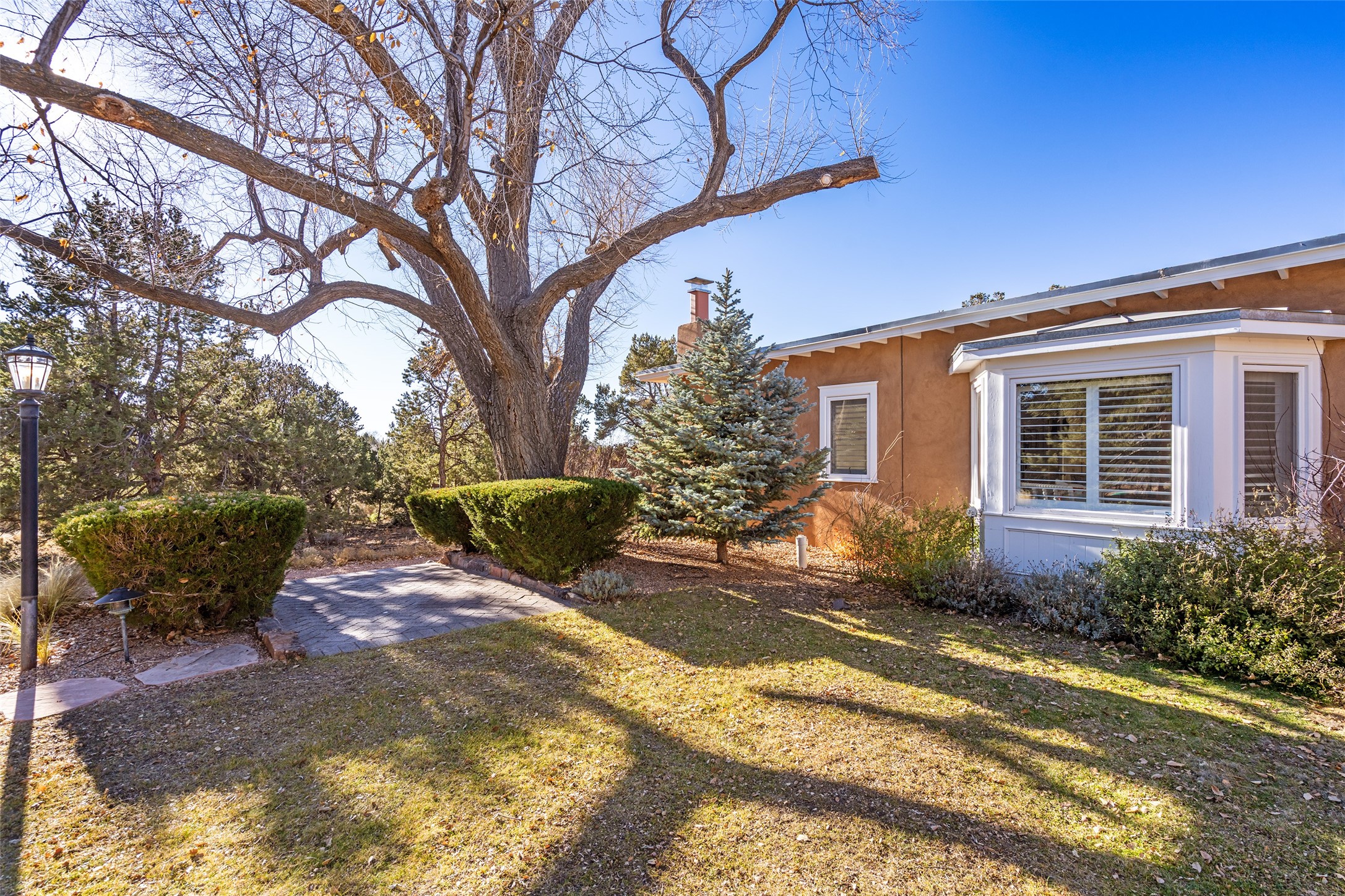 Privately nestled among mature trees on nearly three acres, this distinguished New Mexico Territorial-style estate captures sweeping views of the Sangre de Cristo, Sandia, and Ortiz Mountains. Timeless architecture and thoughtful craftsmanship define the 3,600-square-foot main residence, where a gracious brick-floored entry hall creates an immediate sense of arrival and seamlessly connects the home's refined living spaces. A separate one bedroom, one bath guest house offers a welcoming retreat for visitors, complete with a living and dining area, full kitchen, and private patio. The property also offers a substantial heated, detached garage/studio that presents endless possibilities as an artist's studio, workshop, or collector's showroom. Designed for both elegant entertaining and everyday comfort, the residence offers four bedrooms, four bathrooms, formal dining room, and a generous eat-in kitchen. The serene primary suite is a private sanctuary, featuring its own media room, walk-in closet, and secluded portal--perfect for quiet mornings or sunset views. Eight fireplaces throughout the home, including one on the expansive backyard portal, provide warmth, ambiance, and year-round livability. Multiple portals invite effortless indoor-outdoor living, ideal for enjoying Santa Fe's celebrated climate and breathtaking mountain vistas. Located in Santa Fe's coveted Historic Eastside, this exceptional property offers rare privacy just minutes from renowned hiking trails, Museum Hill, Canyon Road, and the Downtown Plaza--an extraordinary opportunity to experience refined living at the heart of Northern New Mexico's cultural landscape.