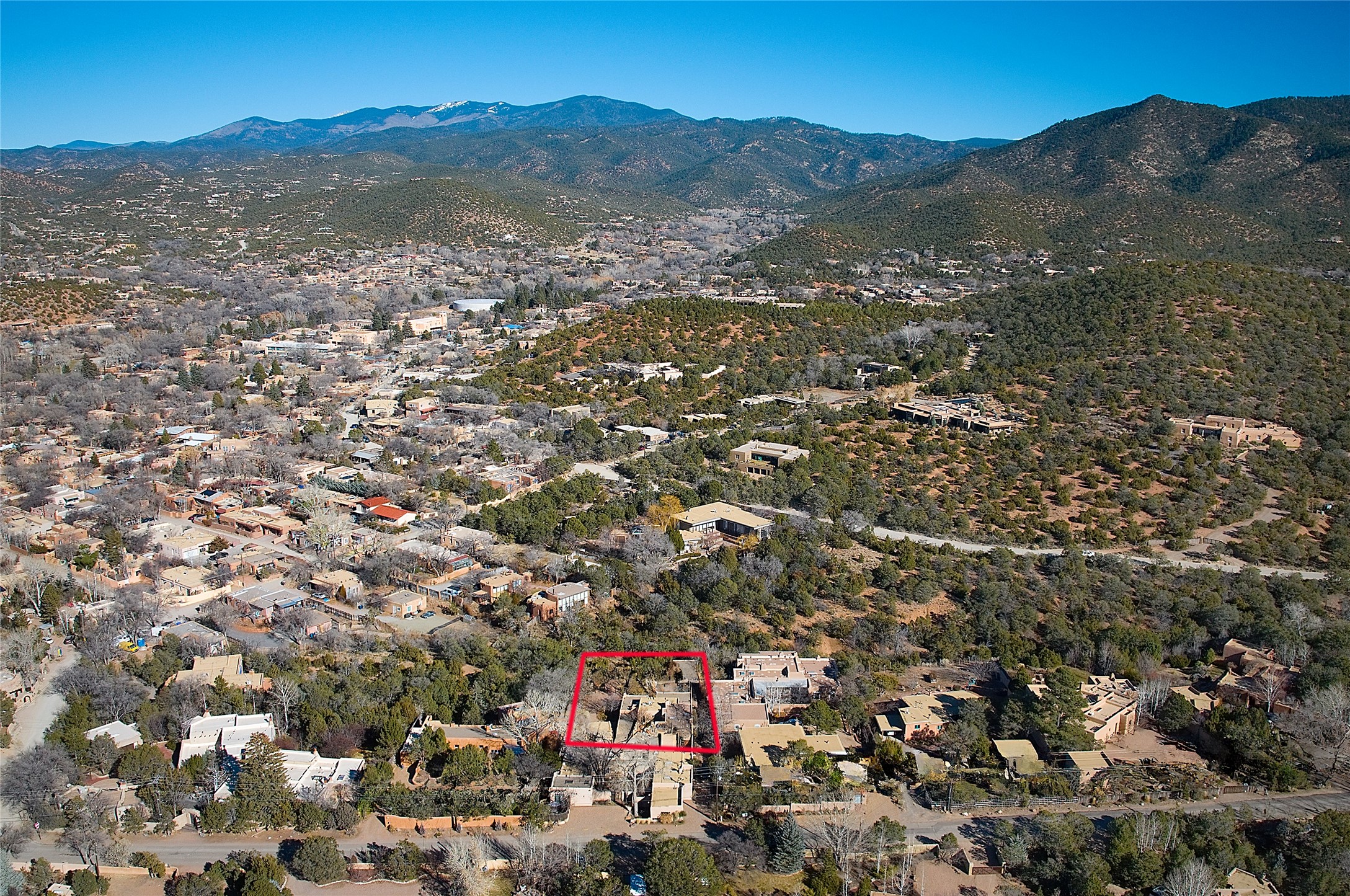A gated driveway leads to wide pastoral views, with a open Sangre de Cristo mountain backdrop. The widows and french doors take in the outside''s beauty within quiet adobe walls. It's a pleasant, short stroll on "The Camino" to Canyon Road, plus all that downtown Santa Fe has to offer. Prime location with authentic Santa Fe style.