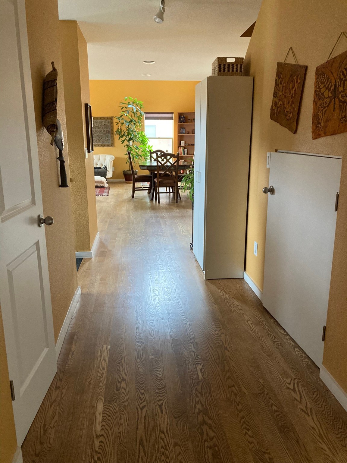 Discover an exceptional blend of comfort, style, and location at this beautifully upgraded 4 bed, 2 bath residence in River Trail Lofts. With direct access to the Santa Fe River Trail from your front door, this lightly used 1,877+/- sq ft home offers bright, inviting living spaces and a thoughtful two-story layout. Interior features include radiant heat, real red oak flooring, high and vaulted ceilings, deep closets, upgraded kitchen appliances, and top down bottom up cellular blinds throughout. The kitchen and baths feature padded gym flooring for added comfort, with tile in the laundry room. The private backyard has been transformed into a serene outdoor retreat with a custom hardwood deck, fountain, custom storage shed, flower beds, new ground coverings, shrubs, and automated irrigation. It feels like a true extension of the living space and works well for quiet enjoyment or outdoor dining. Ample parking adds to the convenience. River Trail Lofts is tucked below Alameda with no through street, offering a peaceful setting with minimal traffic while still being minutes from downtown, the Railyard, shopping, and the airport. The seller is open to conveying the home furnished, including art, rugs, TV, dishware, and washer dryer, which can create a seamless turnkey move-in experience or investment opportunity. All furnishings would be sold separately under a separate agreement. The seller would like to close near the end of March 2026.