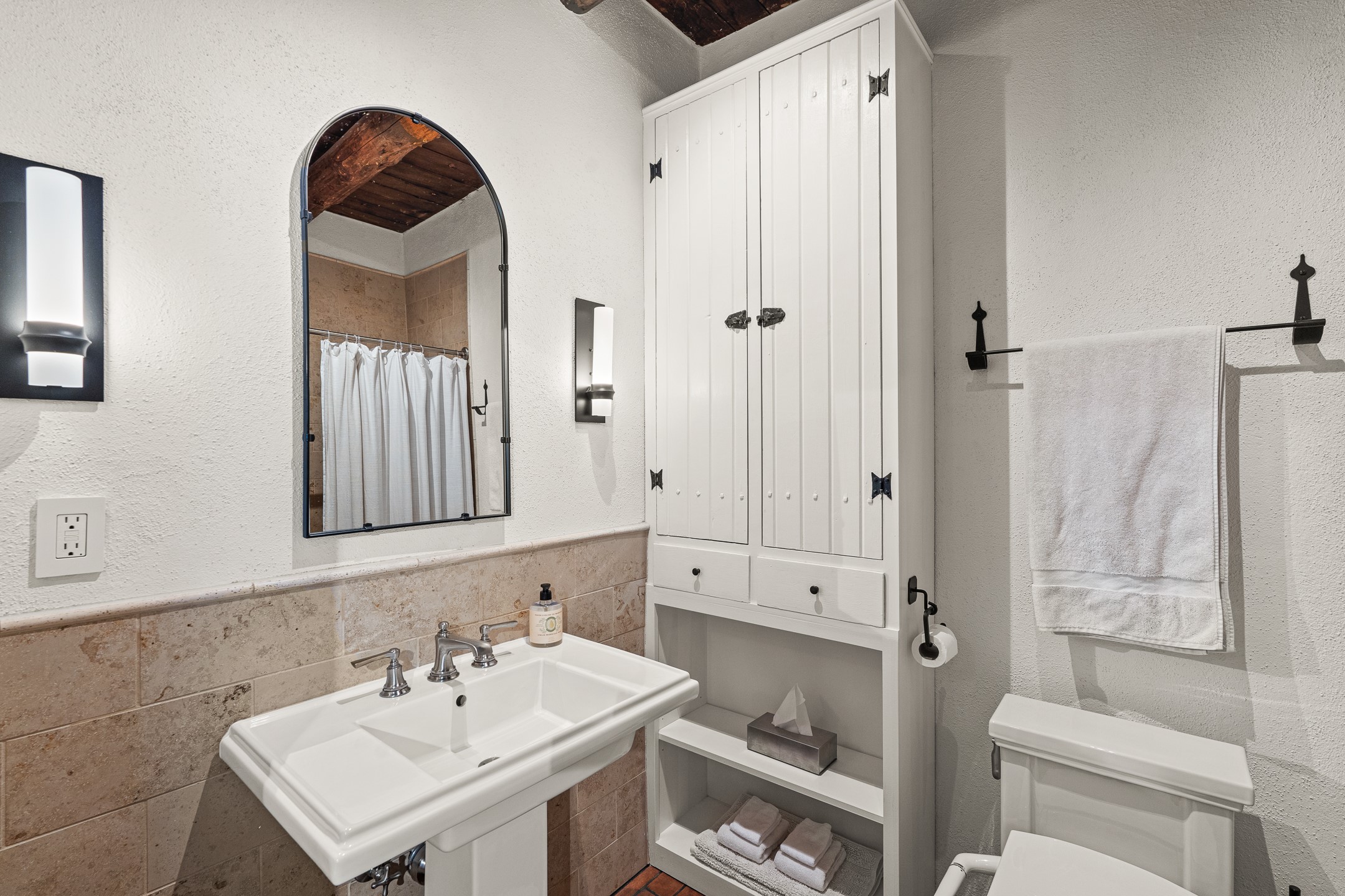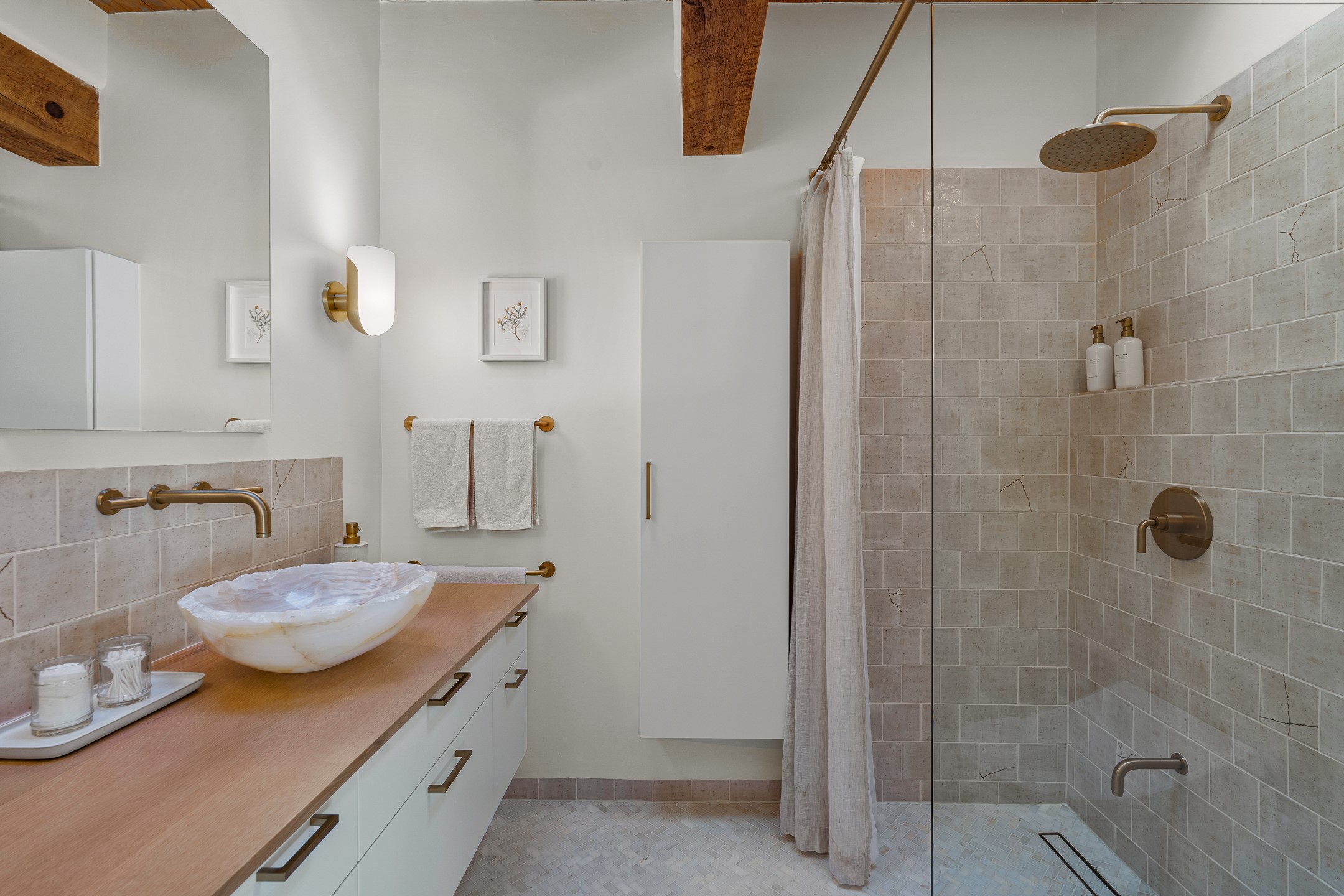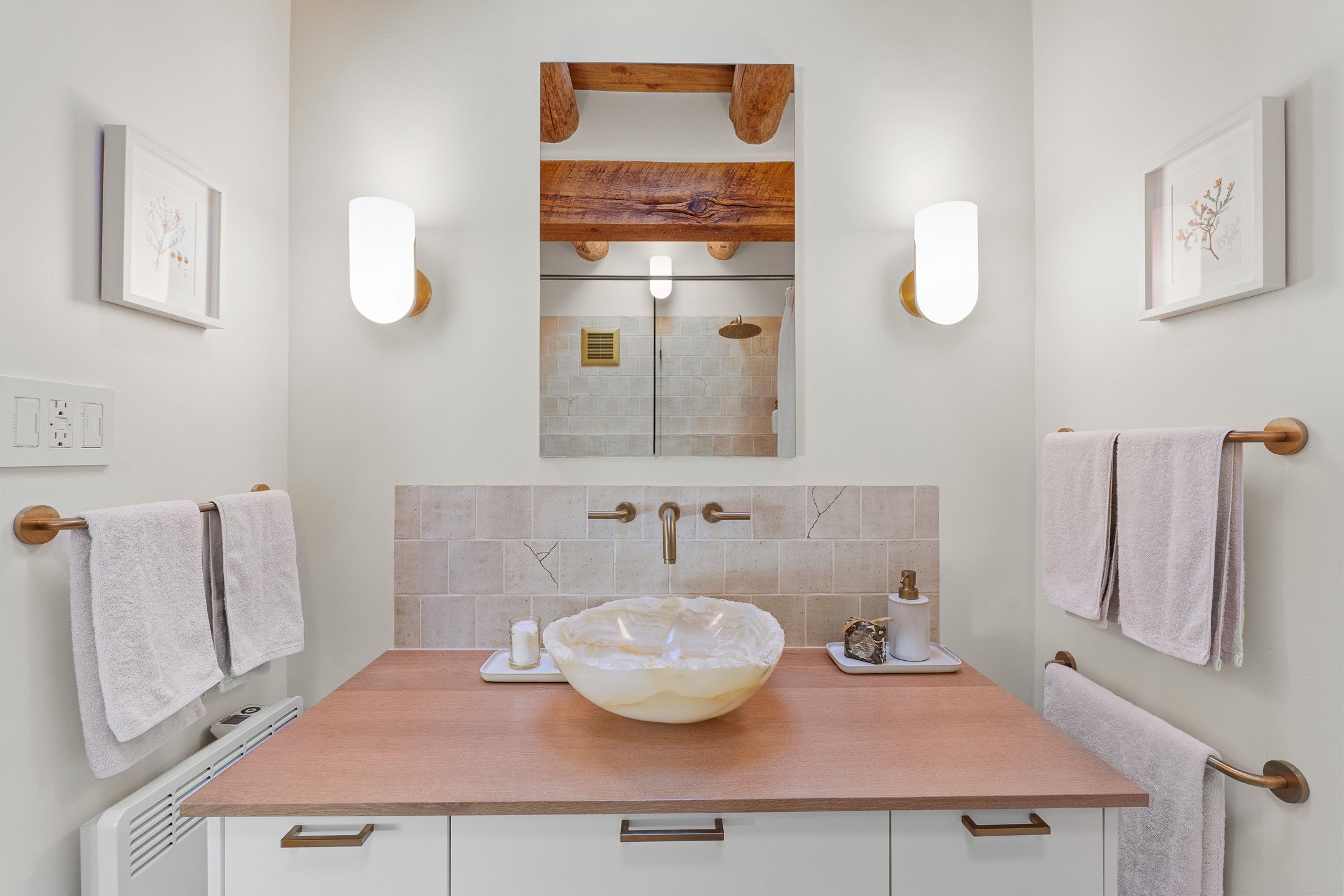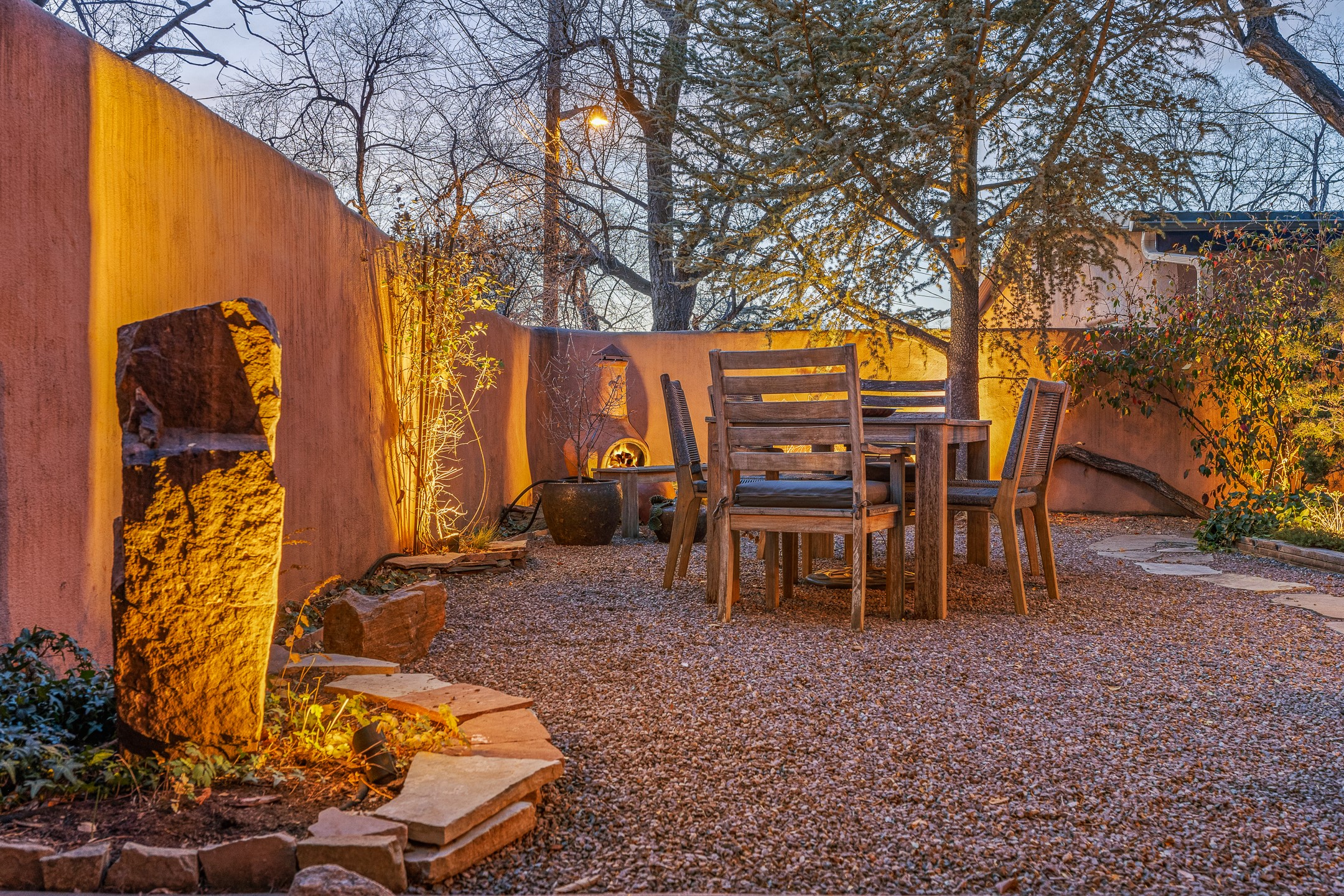 Tucked away on a quiet street in South Capitol, this charming 2-bedroom, 2-bathroom condo has been thoughtfully transformed by Santa Fe Kitchen Design. Every detail of the home reflects quality and craftsmanship with high-end finishes and an integrated design that maximizes style as well as space. The ground level includes the designer kitchen, dining area, a bath with laundry, and a flexible guest bedroom with a walk-in closet which is currently used as an office/sitting room--easily closed off with sliding barn doors. Beautiful hardwood floors run throughout and comfort is ensured year-round with mini-split heating and cooling. Upstairs, the sunny living room offers a warm and inviting retreat, perfect for relaxing or entertaining. The primary suite features a stylish built-in desk, a custom walk-in closet, and a beautifully renovated (2025) bathroom complete with a wall-mounted vanity, an onyx vessel sink, Toto wall-mounted toilet, floor-to-ceiling tiled walk-in shower, and radiant heat flooring. Solar panels, installed in 2023 and backed by a 20-year warranty, enhance energy efficiency and sustainability, while a curbside EV outlet is pre-wired for convenient electric vehicle charging. Located just minutes from downtown Santa Fe, this home is a rare opportunity to own a turnkey, design-forward residence in one of the city's most beloved neighborhoods.