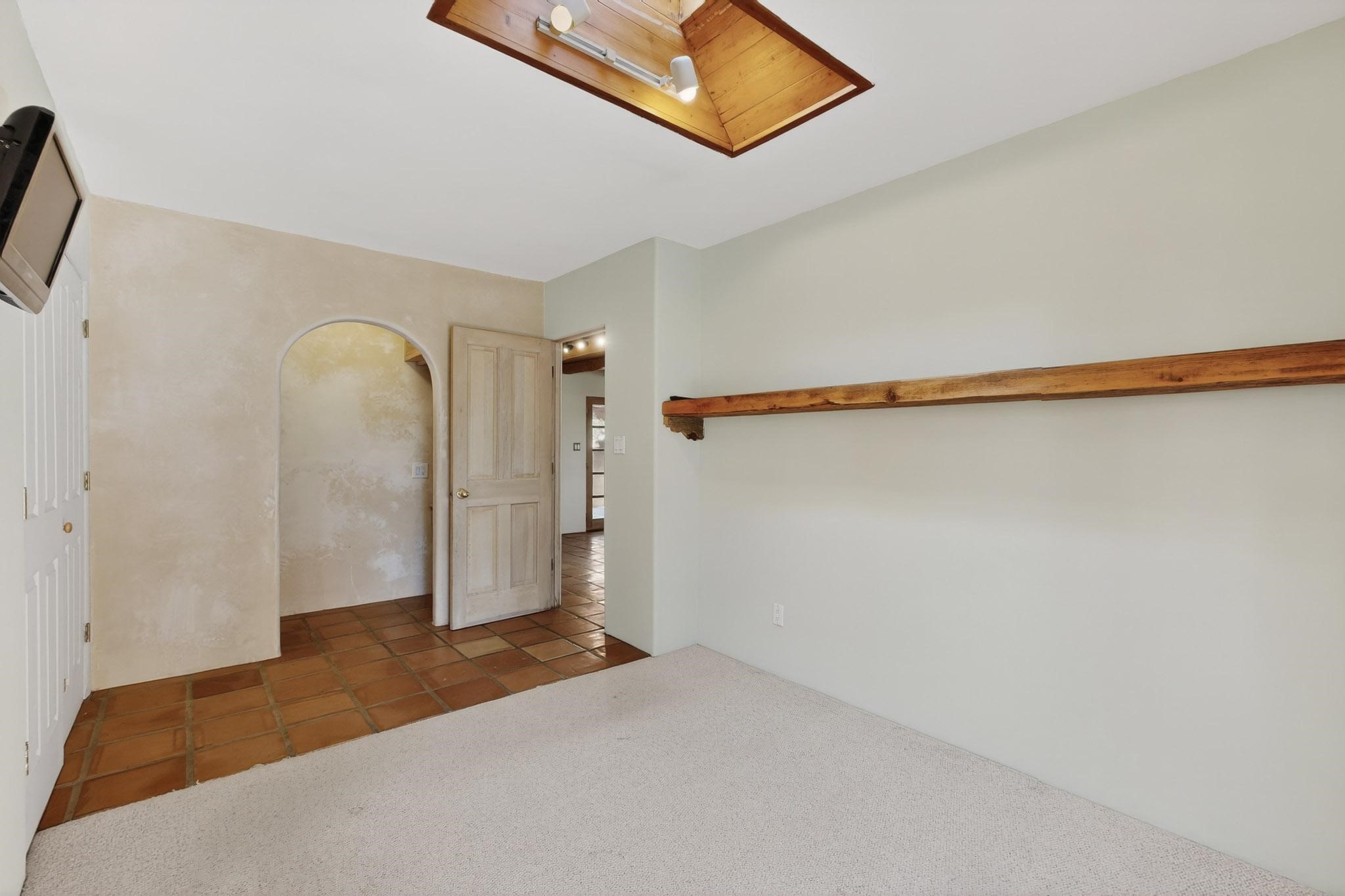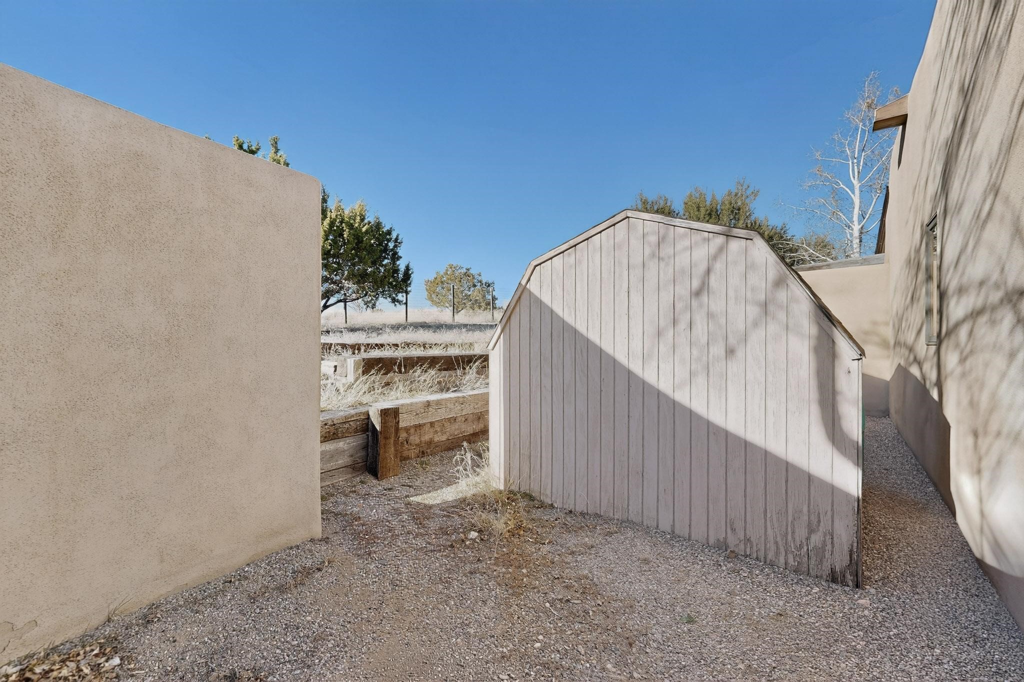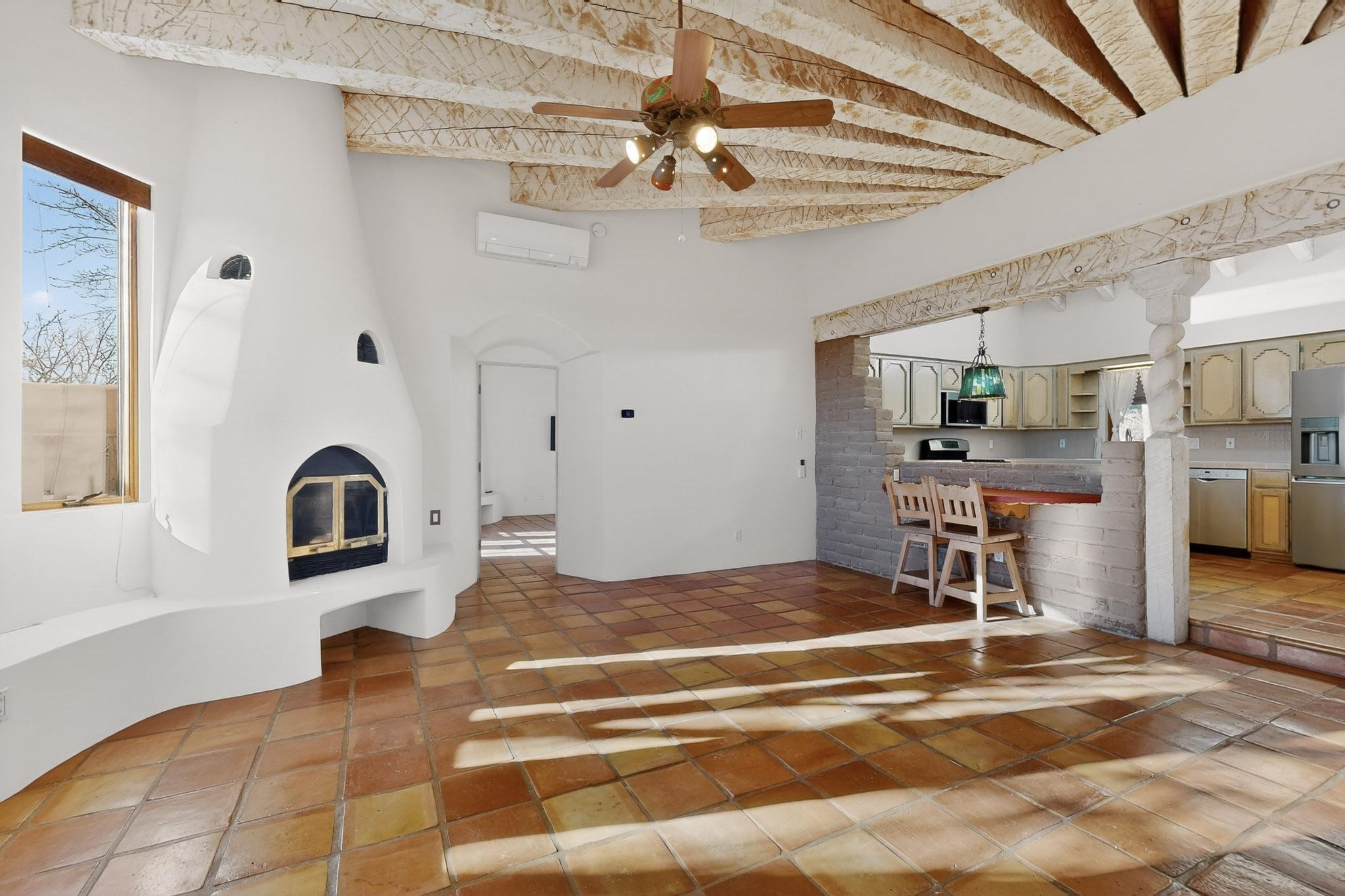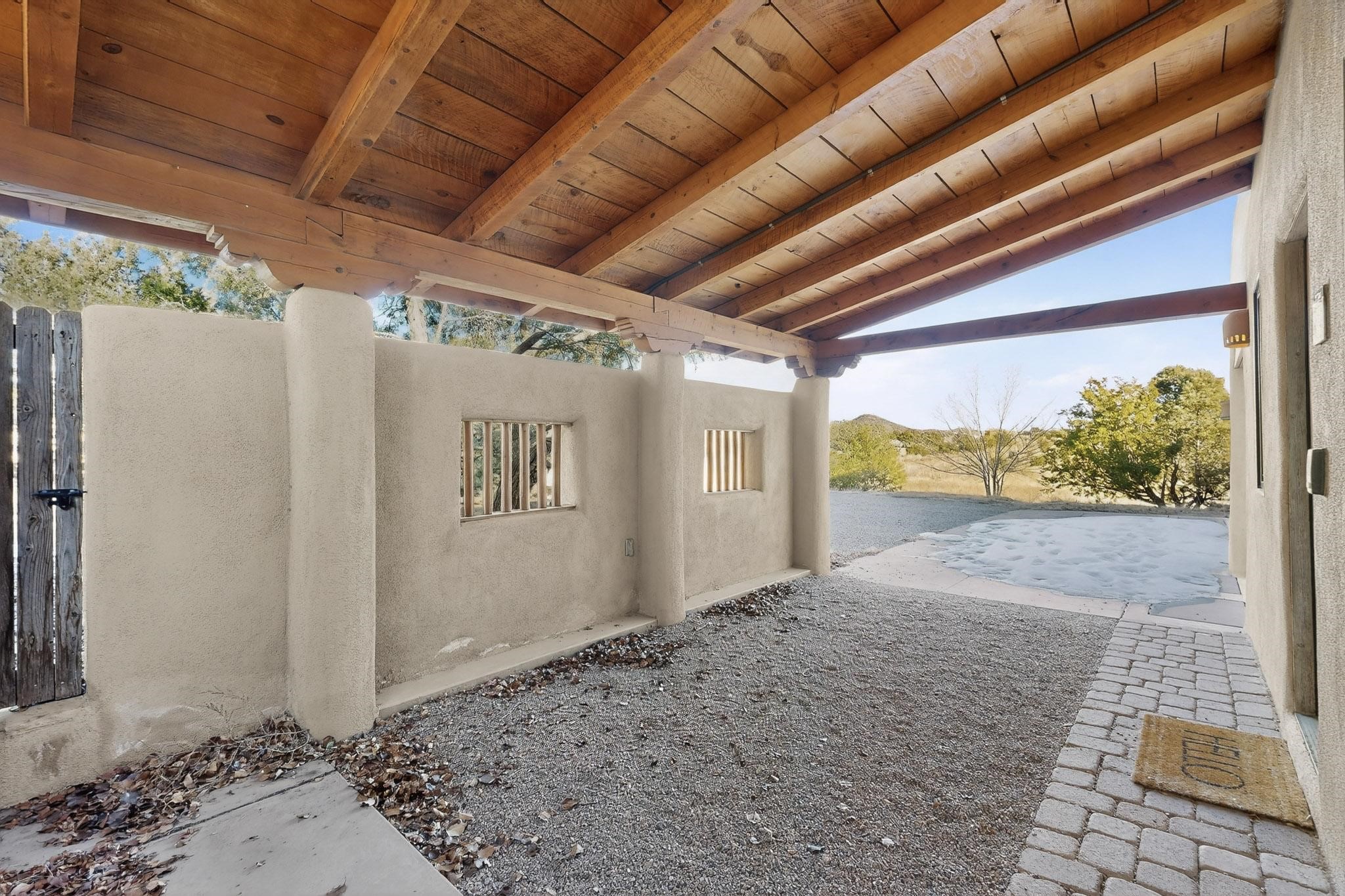 Custom designed and built for the first owner, this 4 bedroom 3 bath home is filled with eye catching hand carved details throughout. An excellent potential for multi family living with great separation of main bedroom and 2 guest wings. A sunny open plan concept with many extra rooms to expand your hobbies or private enjoyment areas. There is a new solar array, boiler, hot water heater and new above ground hot tub installed 2022/2023. New stucco, partial new roof and the 6 mini splits serviced in 2025. An oversized 2 car garage plus a studio bay with garage doors at both ends for easy access and plenty of guest parking. Two walled in private gardens for outside enjoyment accessed from north and south sides of the home. Ideally located bordering a large greenbelt, close to the community centre, hike bike trails, K-8 school, library, senior centre, 2 shopping plazas and only minutes into Santa Fe.