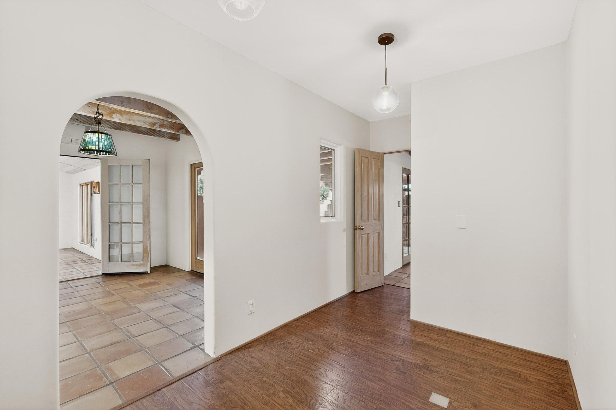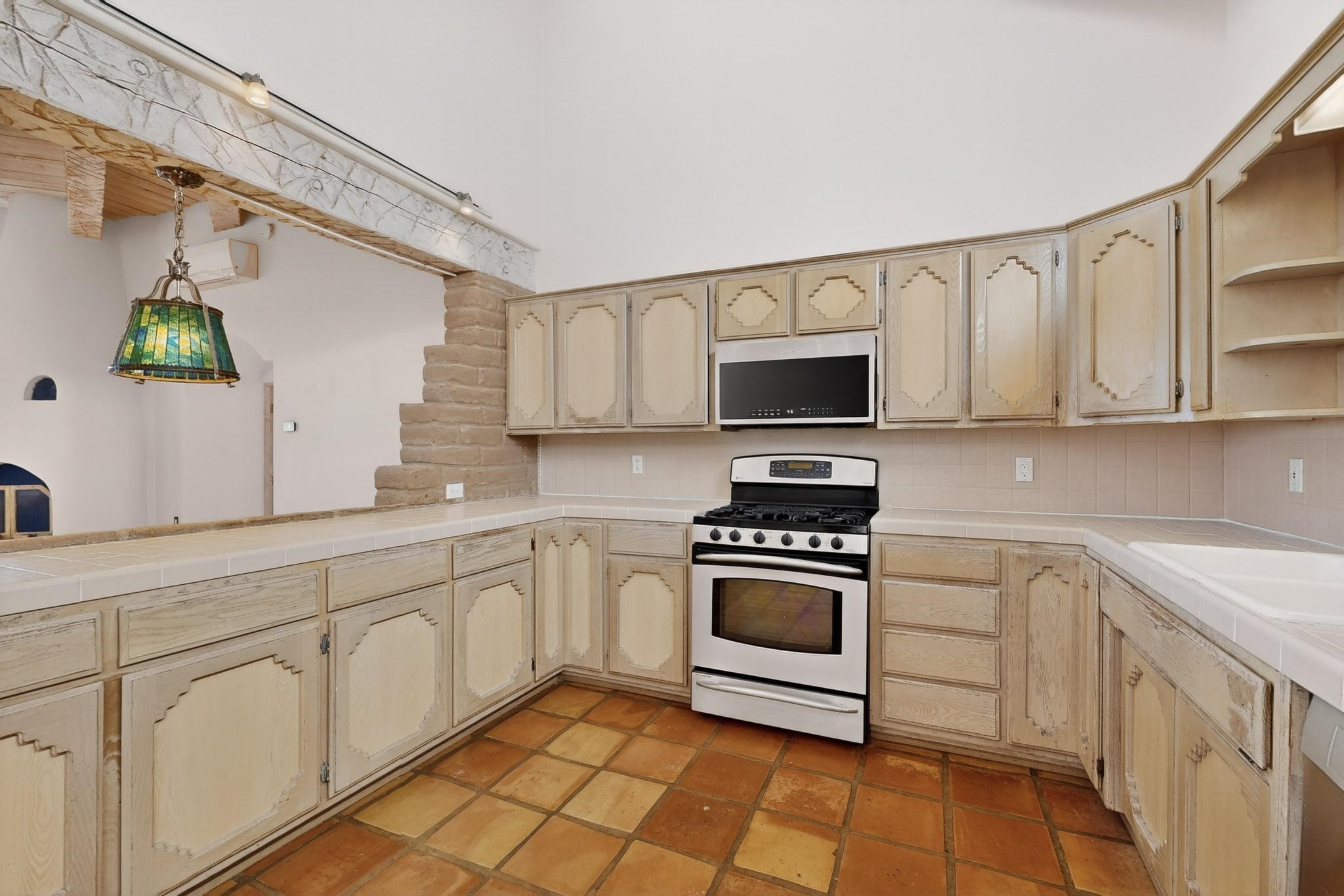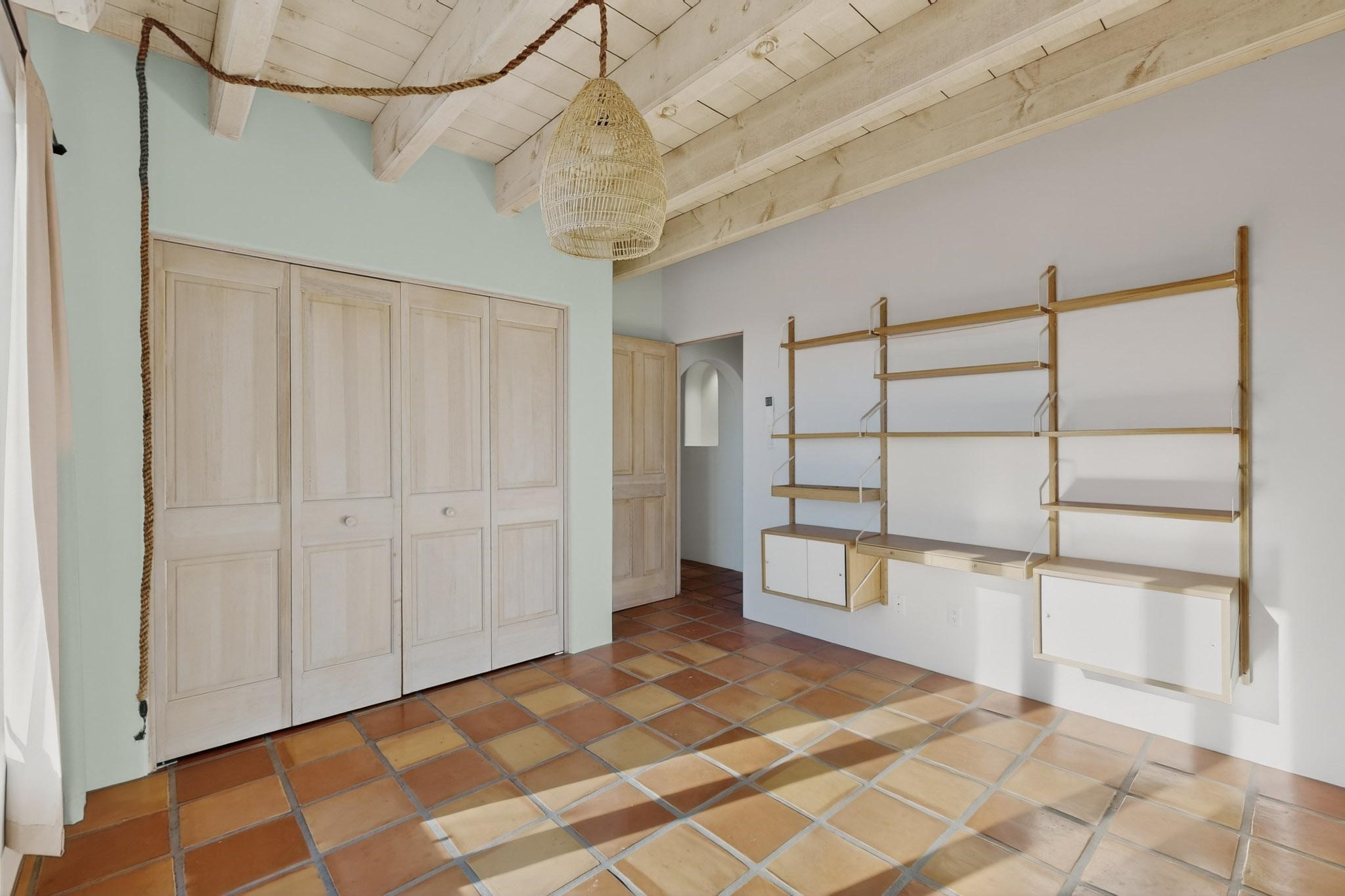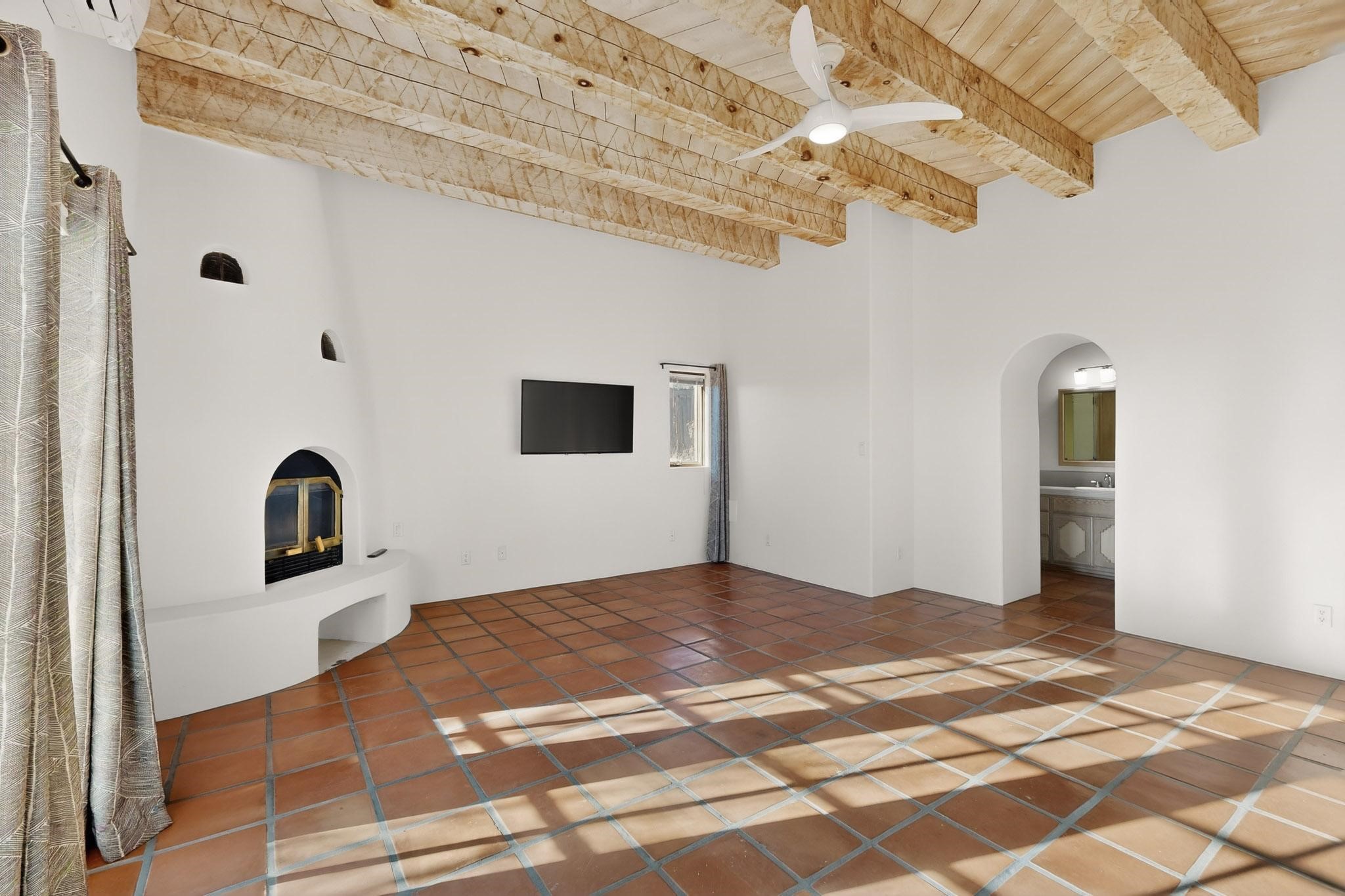 Custom designed and built for the first owner, this 4 bedroom 3 bath home is filled with eye catching hand carved details throughout. An excellent potential for multi family living with great separation of main bedroom and 2 guest wings. A sunny open plan concept with many extra rooms to expand your hobbies or private enjoyment areas. There is a new solar array, boiler, hot water heater and new above ground hot tub installed 2022/2023. New stucco, partial new roof and the 6 mini splits serviced in 2025. An oversized 2 car garage plus a studio bay with garage doors at both ends for easy access and plenty of guest parking. Two walled in private gardens for outside enjoyment accessed from north and south sides of the home. Ideally located bordering a large greenbelt, close to the community centre, hike bike trails, K-8 school, library, senior centre, 2 shopping plazas and only minutes into Santa Fe.