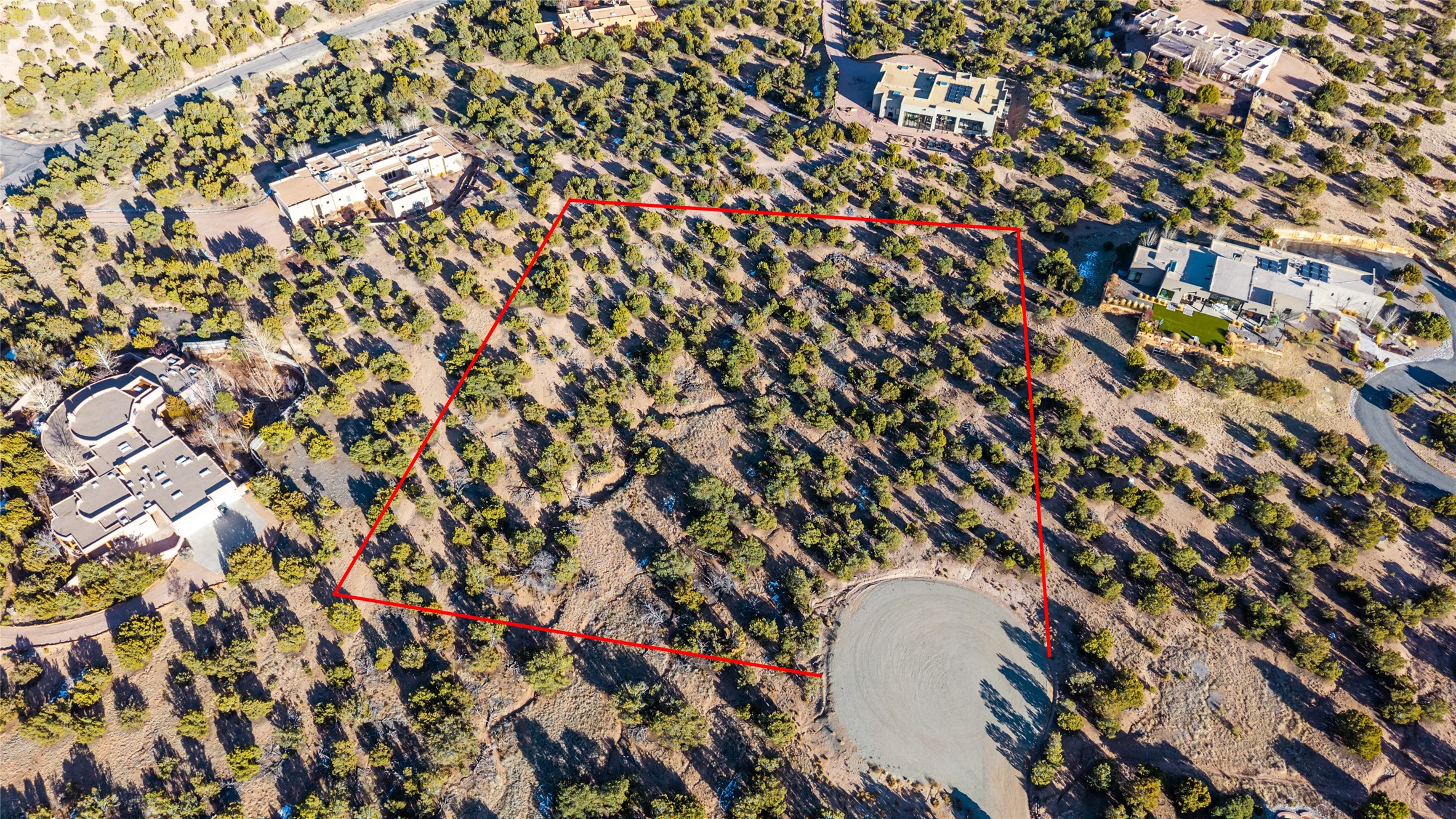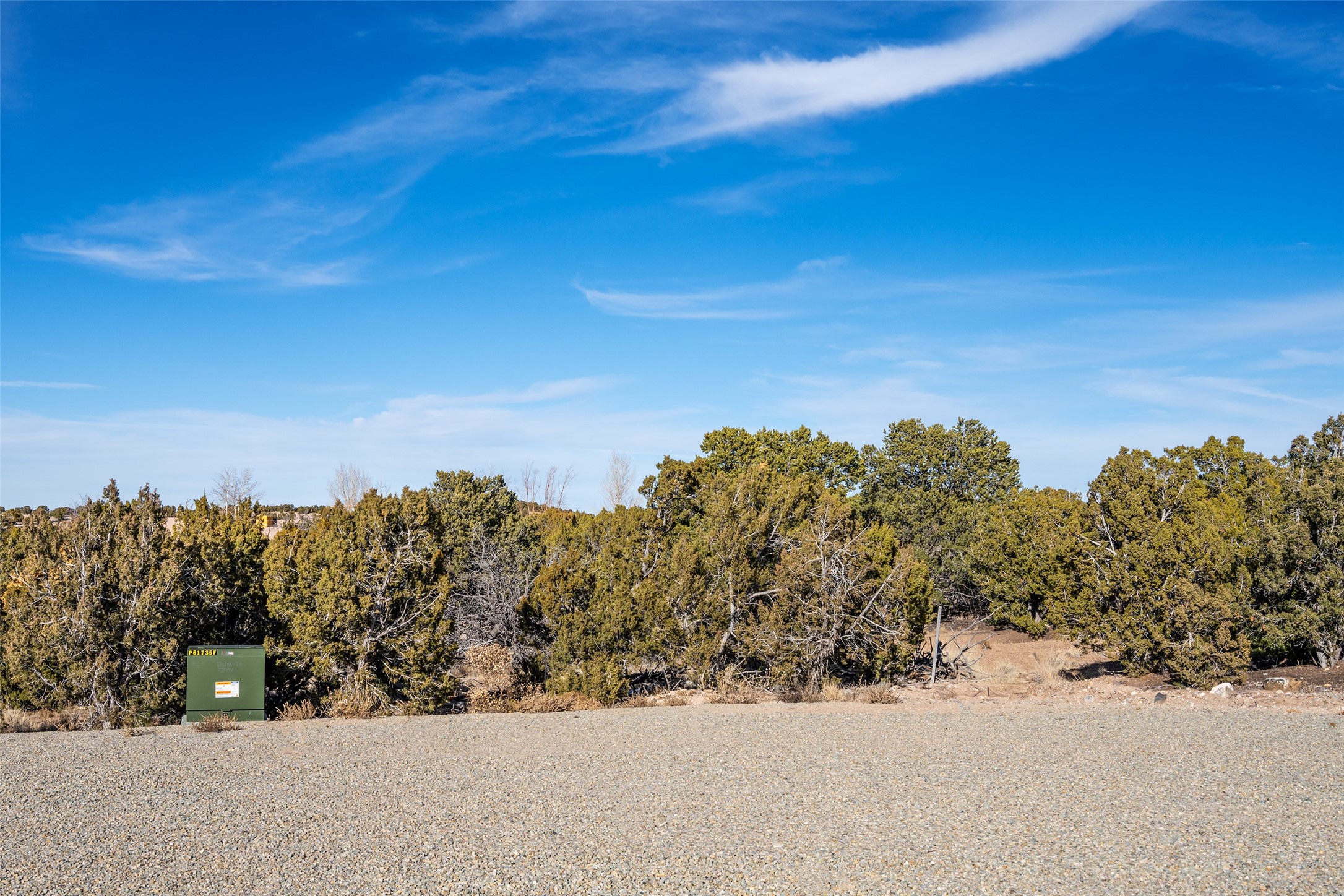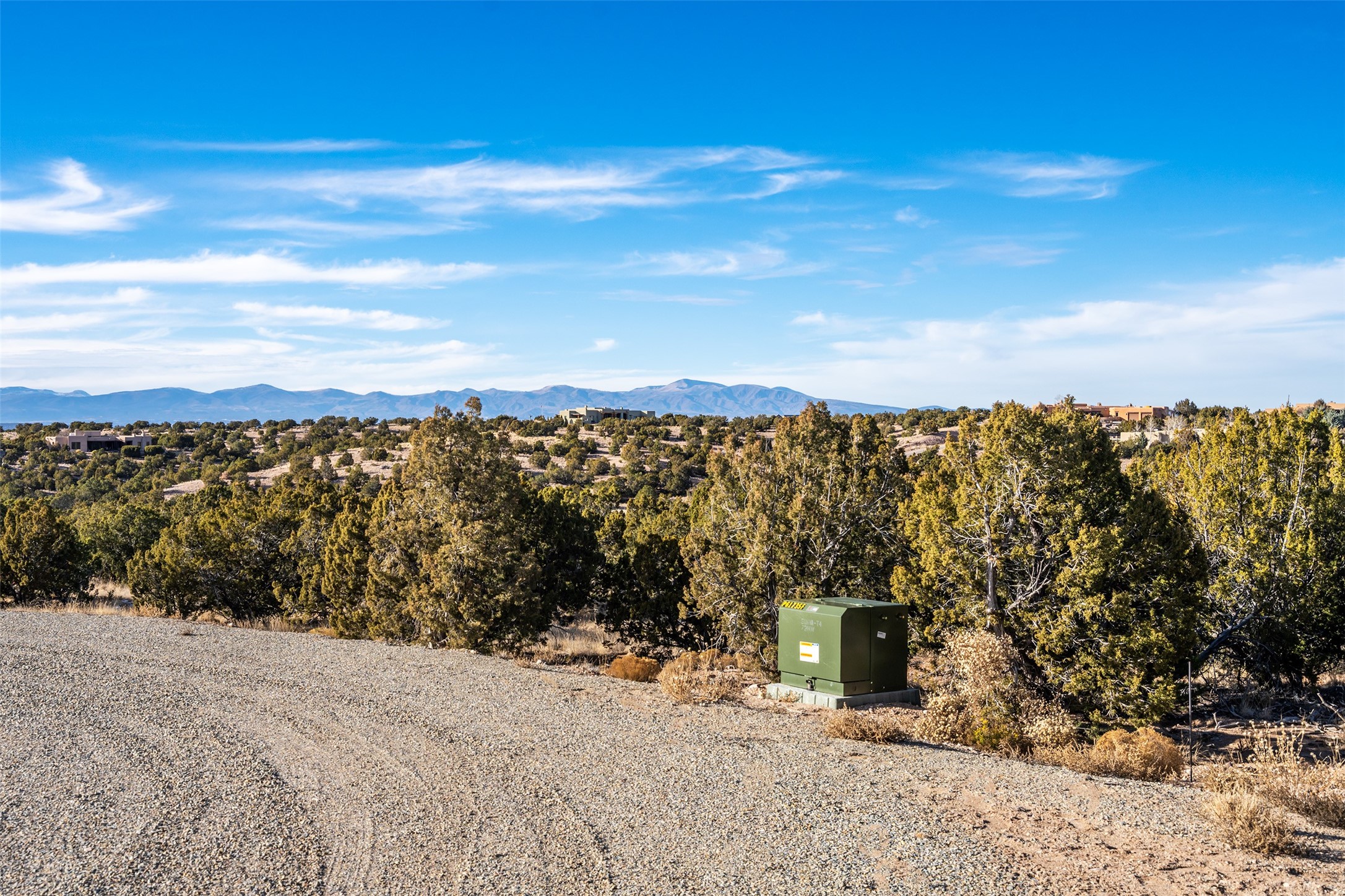 This gorgeous 2.5 acres plot sits at the end of quiet cul de sac and features a gentle slope and panoramic views of the Jemez mountains. Serene and tranquil, yet only minutes from downtown- this lot is an ideal location to build your dream home.Price includes a membership to the much desired Las Campanas Country Club. There is a Newly installed transformer on site. No HOA. Shared well.