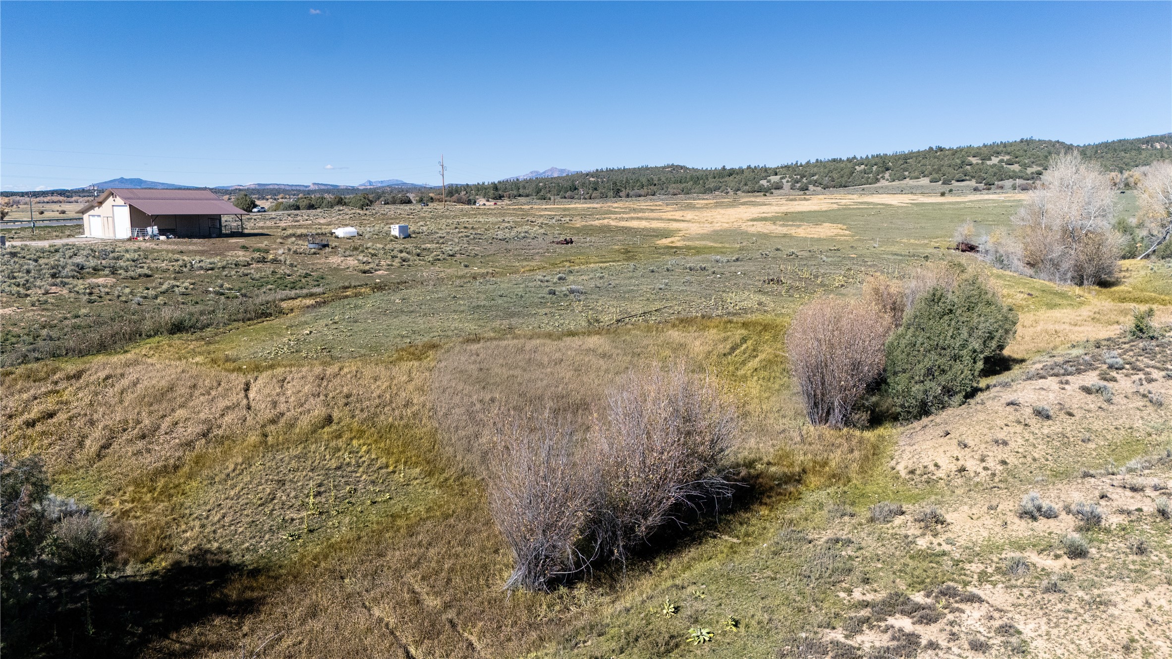 Not far from where the Brazos and Chama Rivers converge in northern New Mexico, lies El Baranco East, a beautiful 270 acre parcel of land. Located between Tierra Amarilla and Chama, the property boasts over a mile of highway frontage, providing easy year-round access. A newer metal barn with electric and water is the singular improvement on the property. There is a water right and stock pond that serves livestock and wildlife alike. Elk and mule deer are routine visitors, allowing hunting with a camera, rifle, or bow. The property is enrolled in the Elk Private Lands Use System (EPLUS) program with its sister property across the highway. In the event of the separation of the two properties, El Barranco East's new owners would need to enroll in the EPLUS program as a new entity. Due to its location and attributes, the property has several potential uses. Highway access might favor use as a development, private estate, or hunting property. Located near an existing development, the property is a great candidate for a conservation easement. An investment-minded buyer may consider retaining the 440 acre El Barranco on the Chama River property and El Barranco East as a single holding, with several potential conservation plays that could generate generous tax and income benefits. El Barranco is an approximately one-hour drive to Pagosa Springs, Colorado, where there is a full-service private airport, great restaurants, and, of course, the famed hot springs. Santa Fe, New Mexico, is a 90 minute drive south of El Barranco, where you can find a commercial airport, a multitude of great restaurants, and more art galleries per capita than any other city in the world.