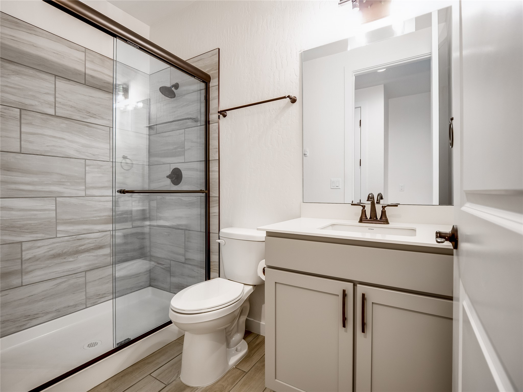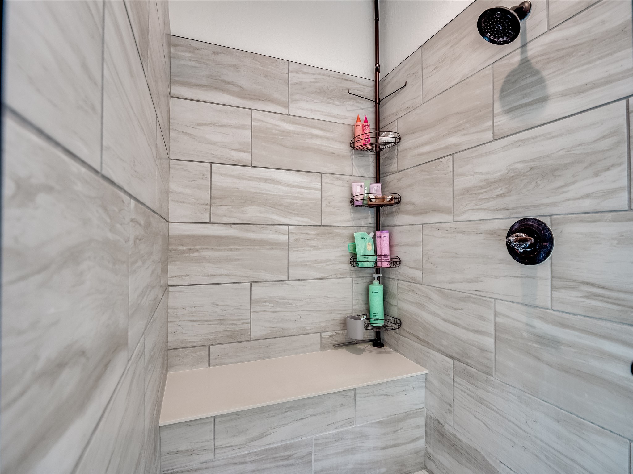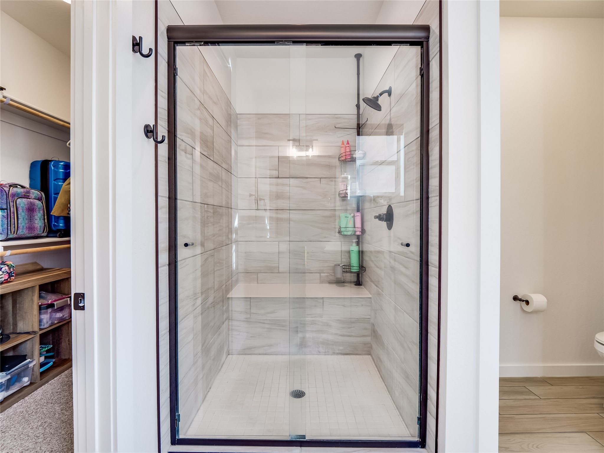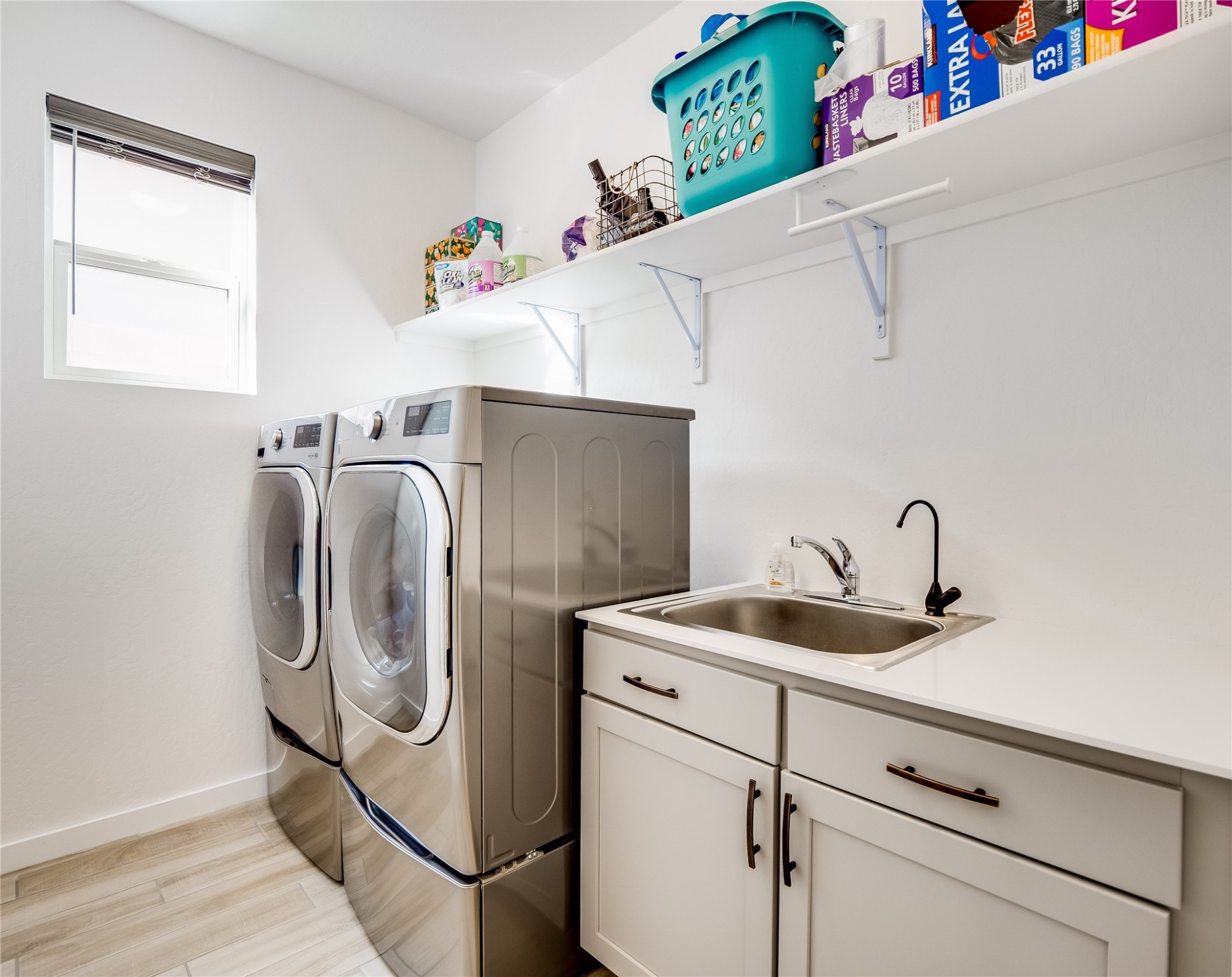 Gorgeous single level modern home blends clean design, natural light, and effortless livability in the desirable White Rock community. A low maintenance front yard invites you to a covered porch, creating welcoming curb appeal without the burden of upkeep. Step inside to a long, skylit foyer with durable tile flooring that flows through the main living areas. Natural light leads you into a bright, great room layout. The spacious living room easily accommodates a large sectional, perfect for movie nights and everyday comfort. Centered is a gas fireplace with decorative tile surround, framed by built-in cabinets for style and storage. The adjacent kitchen offers modern sophistication with warm, cohesive finishes. A large center island provides seating and workspace, highlighted by gold pendant lighting. Taupe cabinets with bronze hardware pair beautifully with a white tile backsplash, quartz counters, and stainless steel appliances. A sizable pantry enhances organization and convenience. The dining area features sliding doors that open to a covered patio and a fully fenced backyard designed for low-maintenance enjoyment. Complete with turf, trees, and mountain views, the space offers room for creativity, ideal for, planters, or personal design. Near the entry, two guest bedrooms with carpet share a Jack-and-Jill full bathroom for a smart, efficient layout. A secondary hallway hosts an additional guest bedroom and bathroom with single sink vanity and tiled walk-in shower with glass enclosure. This hall also includes a laundry room with sink and direct access to the two-car garage for added practicality. Tucked toward the back, the primary suite serves as a peaceful retreat with carpet flooring, expansive windows, and mountain views. The spa like ensuite features tile flooring, double-sink vanity, and a walk-in tiled shower with built-in bench. A custom-organized walk-in closet maximizes storage. Move-in ready and waiting for you to schedule your tour today!