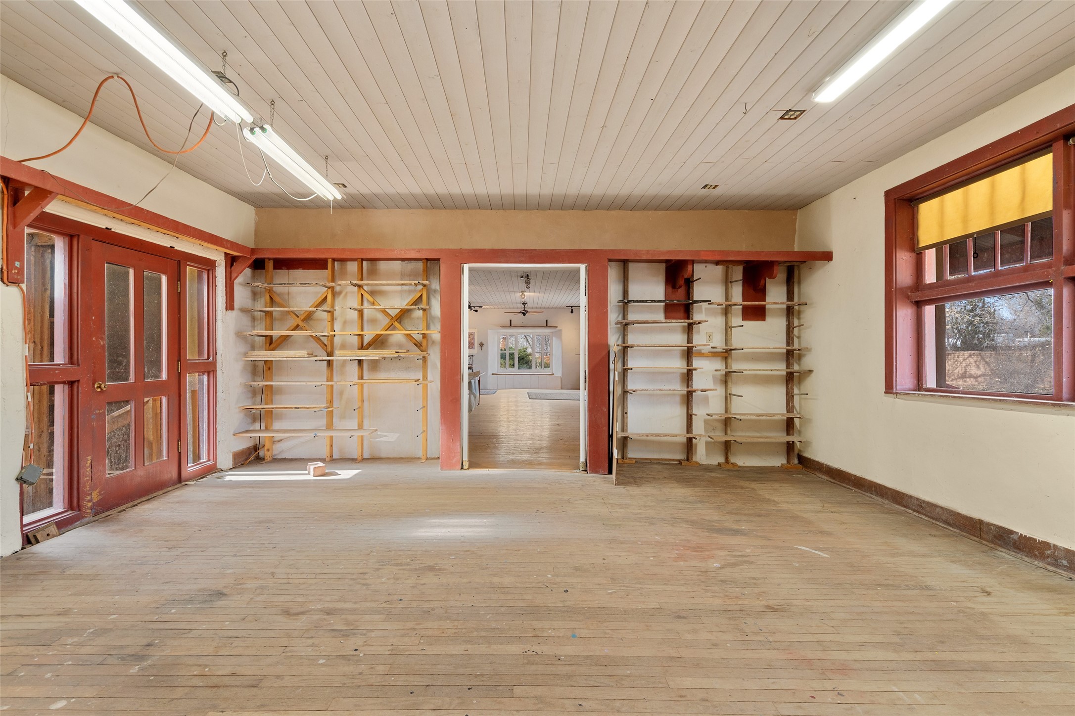 This historic Hacienda embodies the essence of old-world New Mexico charm and the deep, layered history of Galisteo, with the spirit of this venerable adobe reflecting the lore, legend, and mystery of the Galisteo Basin. Dating back to the 1800s, the property served as the headquarters of Don Jos Ortiz y Pino's sheep empire--a gathering place and general store--and later, beginning in the late 1970s, as the iconic Quartermill Farm - home, studio, and gallery of acclaimed potter and visual artist Priscilla Hoback, offering decades of creative nourishment to the local arts community.Nestled in the heart of Galisteo Village, still celebrated for its vibrant artistic culture, the long portal of the former gallery lines a central village road, while behind it sits the substantial adobe main house, rich with both intimate and grand spaces that speak to another era.The hacienda is composed of two wings--one with a single bedroom and bath, the other with three bedrooms and two baths--along with a large library, grand living room, formal dining room, several distinctive fireplaces, and an abundance of authentic architectural details. The generous inner courtyard is a place of quiet beauty with an ancient willow shading the koi pond. Together with the central kitchen and spacious living room, the layout suggests a home once designed for gatherings, celebrations, and meaningful connection. The grounds feature mature trees, fruit trees, flower gardens, and multiple outbuildings. This is a rare and significant property now ready for its next chapter. The home requires restoration and thoughtful renovation, offering a discerning buyer the opportunity to reimagine and revive an important piece of Galisteo history. For those with vision and appreciation for heritage, the potential is extraordinary--an invitation to become the next steward of this remarkable estate and to make your own mark on Galisteo's enduring story.
