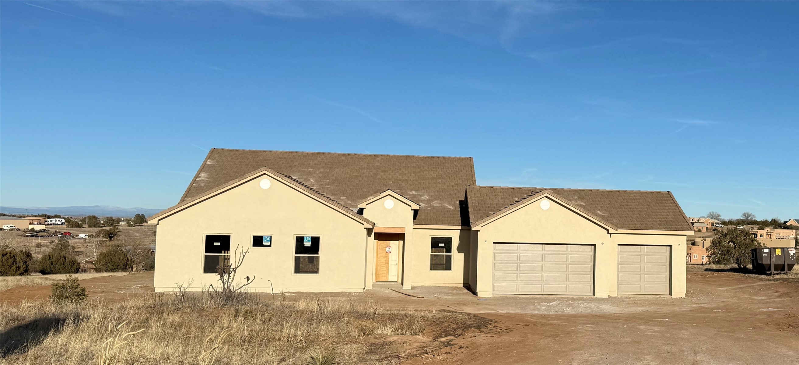 This a brand new 3 bedroom 2 bath home with a fabulous open living area perfect for todays flexible lifestyle. Spacious primary bedroom, good sized bedrooms, high ceilings throughout add to the spacious feeling of this wonderfully appointed home. Great outdoor patio areas, three car garage, occupancy available in the first quarter of 2026. Easy access to Albuquerque ... with great long range views