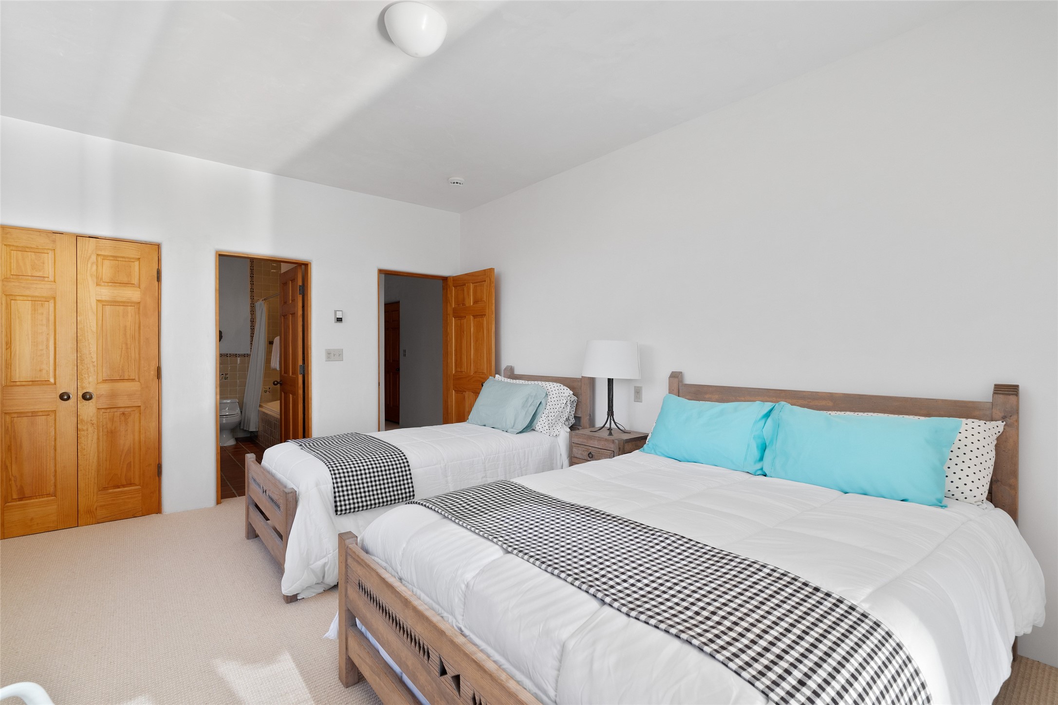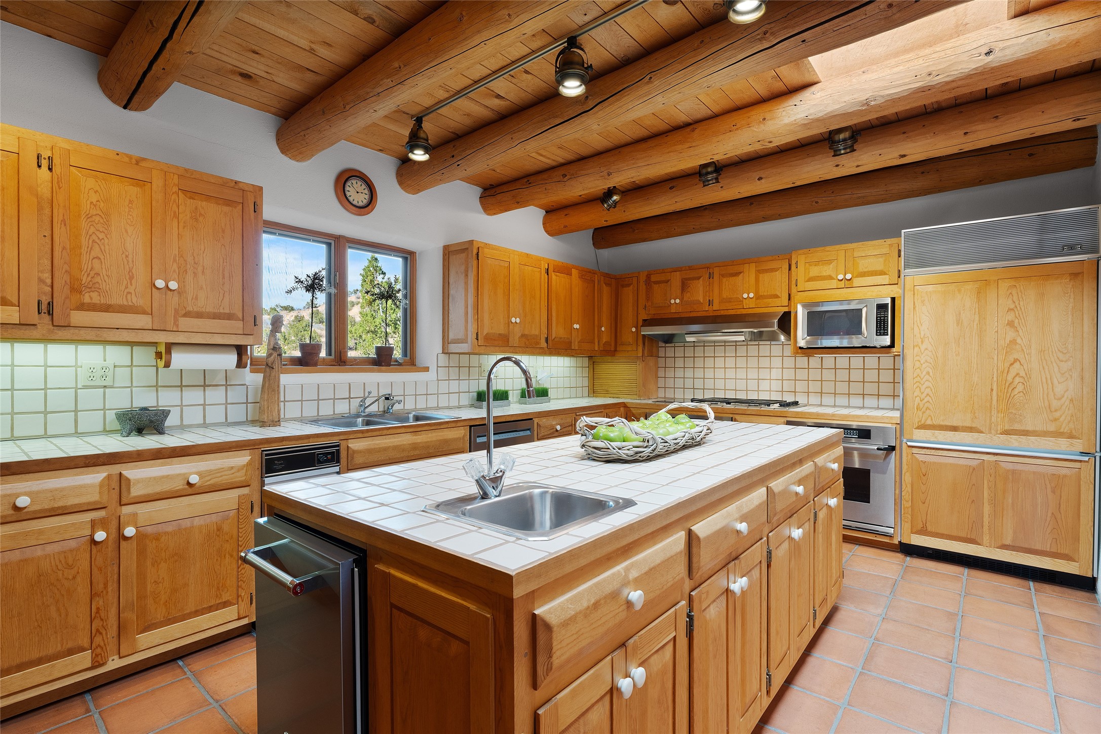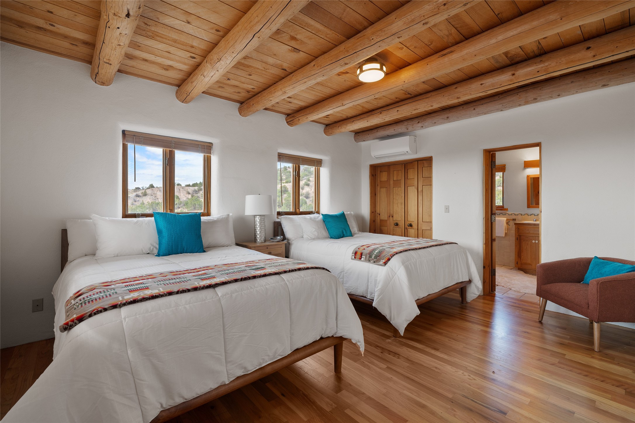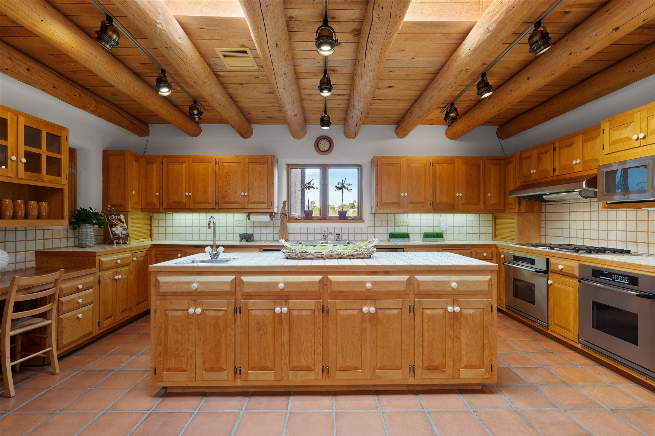 Here's a rare chance to own a very special property in gorgeous, exclusive Los Caminitos, and wouldn't you like to live on Love Street- Camino Amor! A classic Santa Fe Style Hacienda sits atop a glorious ridgeline on 27 lush, private acres in the luxurious green hills of private Los Caminitos with views that go on forever and ever, overlooking vistas far and wide for miles! This is easy living, with easy entertaining flowing through spacious rooms with high finished ceilings and all of the Santa Fe touches; vigas, corbels, lintels, nichos and bancos that enhance this happy ambience. 5 bedrooms and 6 baths with a nice separation of spaces comfortably accommodate all your family and friends! It is silent out here...You can hear the cicadas and the bluebirds, and see millions of stars at night in the big, deep, dark sky. You can be alone with the universe here. This impeccably maintained home is move-in ready now as it is, or you could take it to the next level and create a publishable showplace. As an owner in the lovely gated community of Los Caminitos, whose website you may visit for further information, you will be a member of the private Los Caminitos Clubouse with pool, tennis, pickleball, barbecue facilities and private party house for members use. A stones throw to elegant Encantado, and about 12 minutes to the plaza, you are sure to come back home to peace, serenity, and love here on Camino Amor.