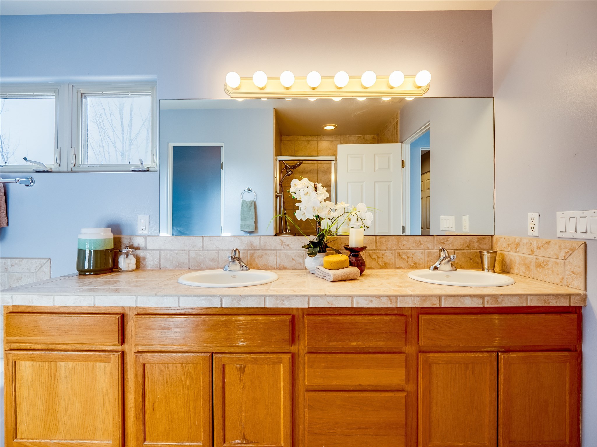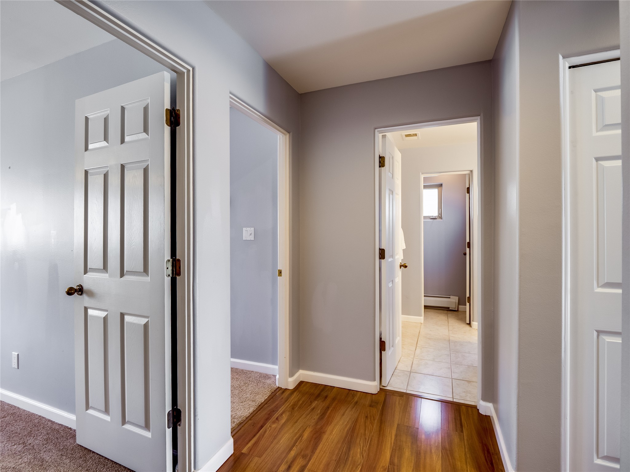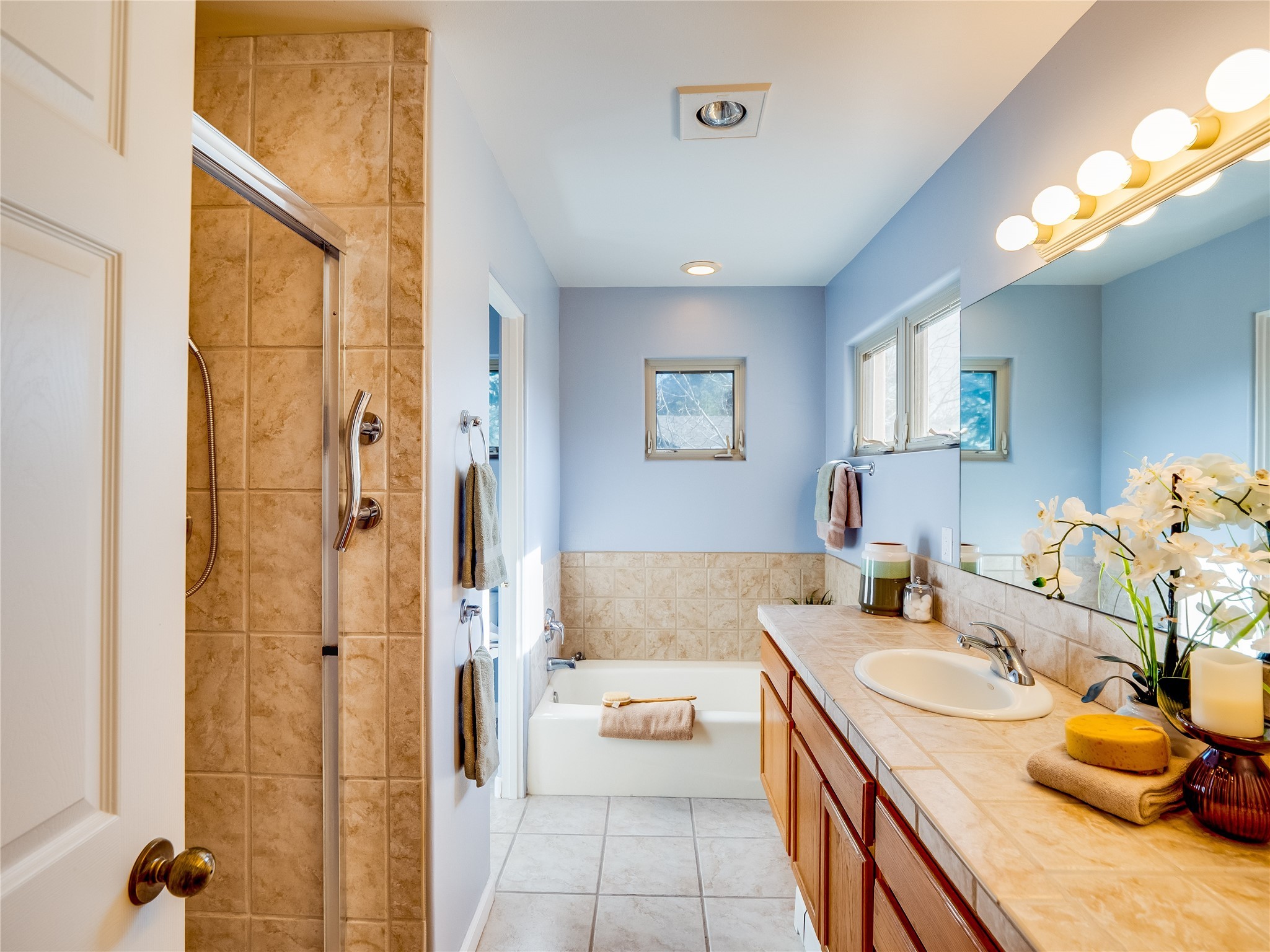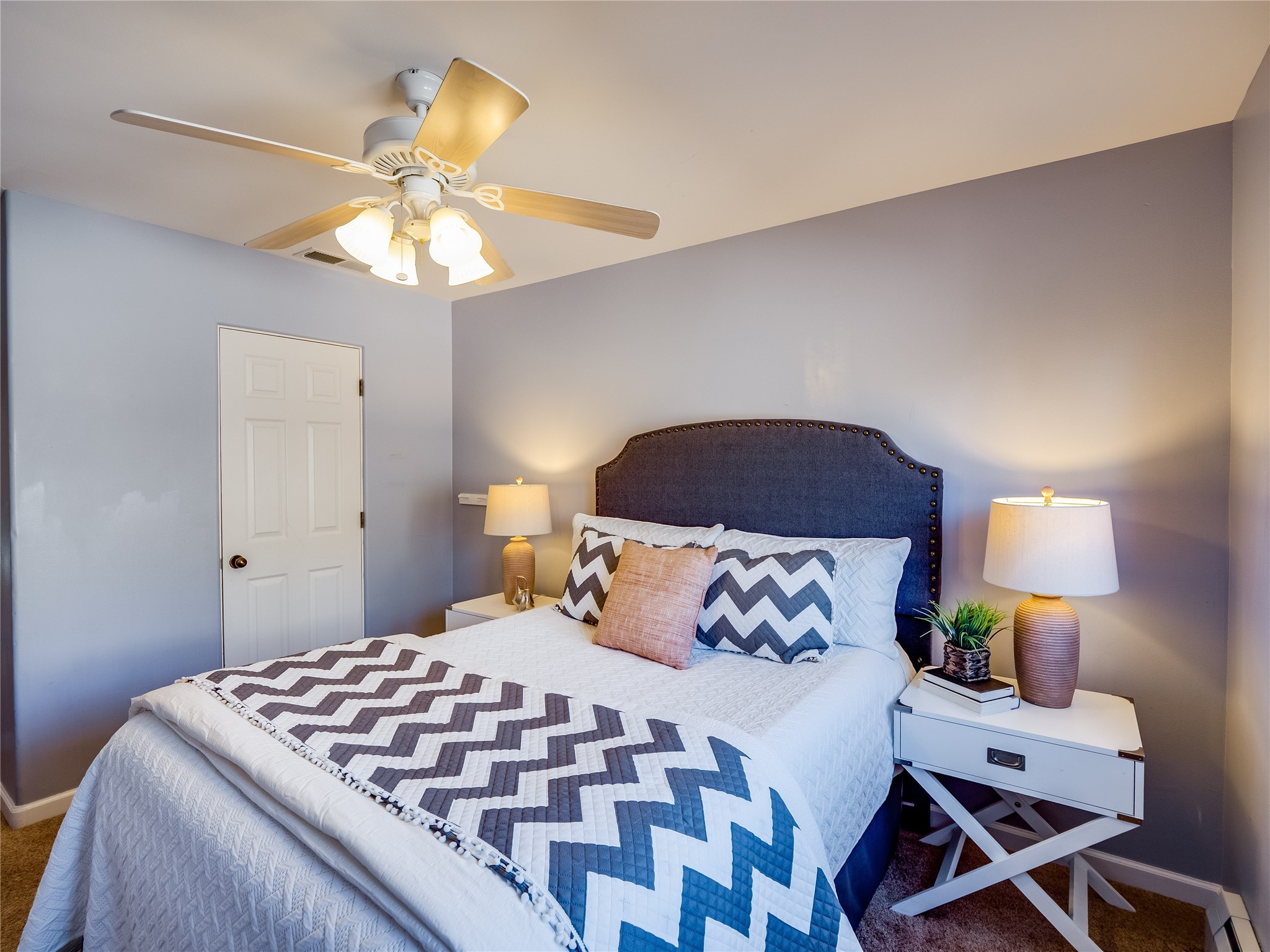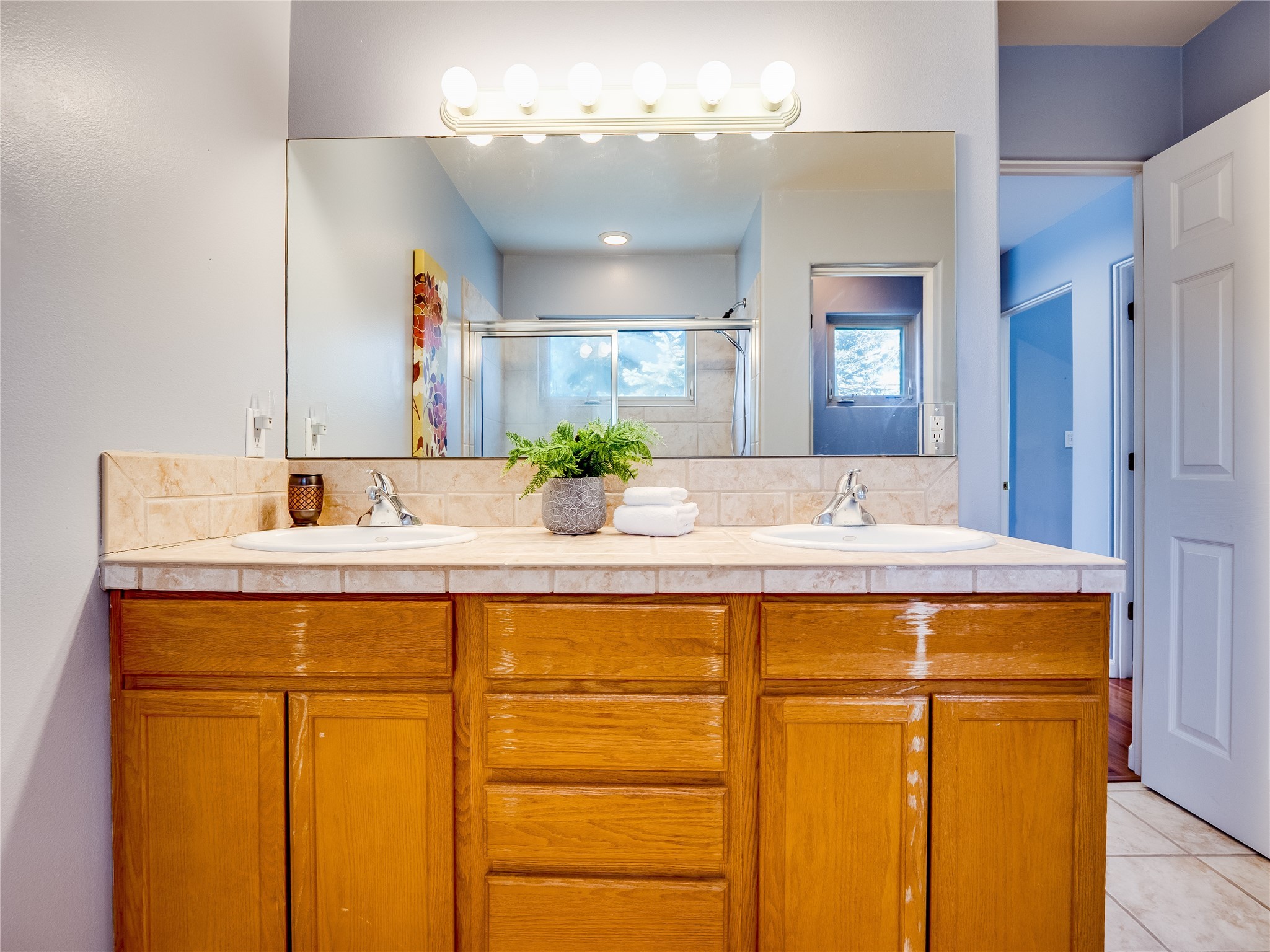 Set in the desirable Quemazon community, this modern two-story townhome offers canyon-edge living surrounded by natural beauty. The mature front yard welcomes you with tall aspens, soft landscaping, and a covered patio leading to the main entrance. Step inside to a large foyer that opens into a bright, living room featuring rich laminate flooring throughout the main living areas. A wood-burning fireplace anchors the living room, framed by windows that capture views of the surrounding forested terrain. Sliding glass doors extend the space onto the front patio for seamless indoor-outdoor living. Just a short set of stairs up, the dining room awaits, complete with a spacious walk-in pantry and storage closet, plus a convenient powder room on the same level. Toward the back of the home, the kitchen blends modern style and function with granite countertops, painted gray cabinetry, and durable tile flooring. Stainless steel appliances, a peninsula island with bar seating, and flexible layout options, including room for a sit-down dining table or casual breakfast area. Step out to the private back courtyard patio, finished with pavers, planter beds, and space for outdoor dining or gardening. Stairs lead directly to the attached two-car garage for everyday convenience. Upstairs, two well-sized guest bedrooms include carpet flooring, walk-in closets, and generous natural light. A full guest bathroom features a double-sink vanity and tiled shower and tub surround. The hallway also includes a dedicated laundry closet for easy access. The primary en-suite offers a peaceful retreat with vaulted ceilings, plush carpet flooring, a large walk-in closet, and a spa-inspired bathroom. Relax in the separate tiled soaking tub or unwind in the oversized walk-in tiled shower. A double-sink vanity completes the space with elevated style and functionality. Move-in ready and thoughtfully designed, this home enjoys an exceptional location close to trails, and parks. Book your showing today!