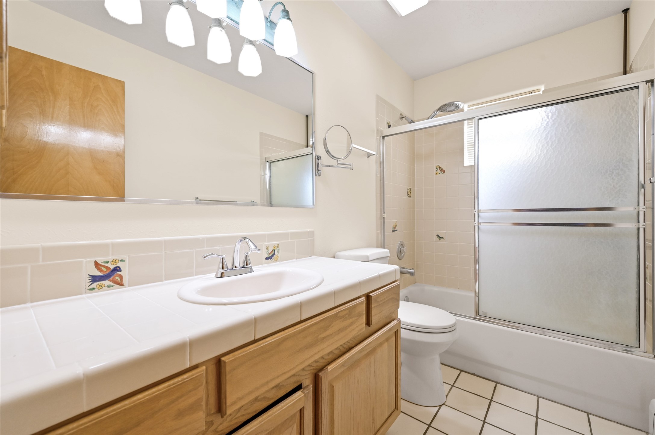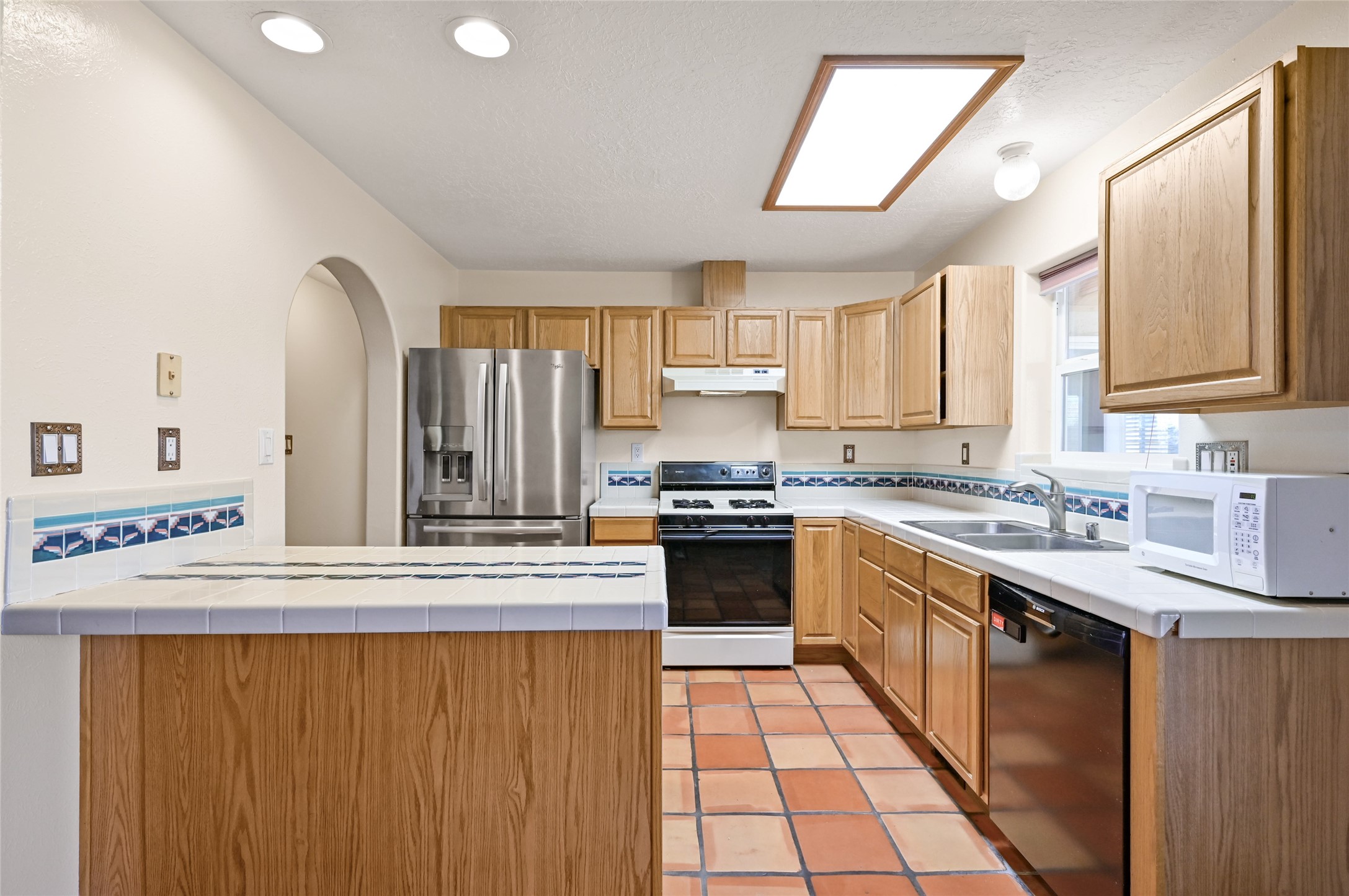 Southwestern Charm Near Cochiti Lake. Discover the perfect blend of tradition and comfort in this lovely 3-bedroom, 2-bathroom home located near the high end of Cochiti Lake on Vooscane Avenue. From the mature, thoughtfully landscaped front yard to the classic covered portal entry, this residence exudes authentic New Mexico character.Inside, the Great Room makes a dramatic impression with soaring ceilings adorned with traditional vigas and herringbone decking. At the heart of the home sits a sculpted Kiva fireplace, offering a warm and inviting focal point. The flooring is a beautiful mix of classic Saltillo tile and rich, engineered hardwood, providing a timeless aesthetic that is as durable as it is stylish.The kitchen and bathrooms carry the theme with classic NM tile motifs and ample oak cabinetry, while the kitchen is updated with a sleek stainless steel refrigerator. Comfort is prioritized year-round with radiant baseboard heating, evaporative cooling, and multiple ceiling fans throughout.Step out onto the spacious outdoor deck and covered portal, an ideal spot for entertaining or quiet reflection. The fully fenced backyard, secured by high-quality wood fencing, offers privacy and a limited view toward Tetilla Peak. Practicality is also built-in, with a handy backyard storage shed and organized garage shelving for all your gear.Don't miss this one. Schedule your showing today!