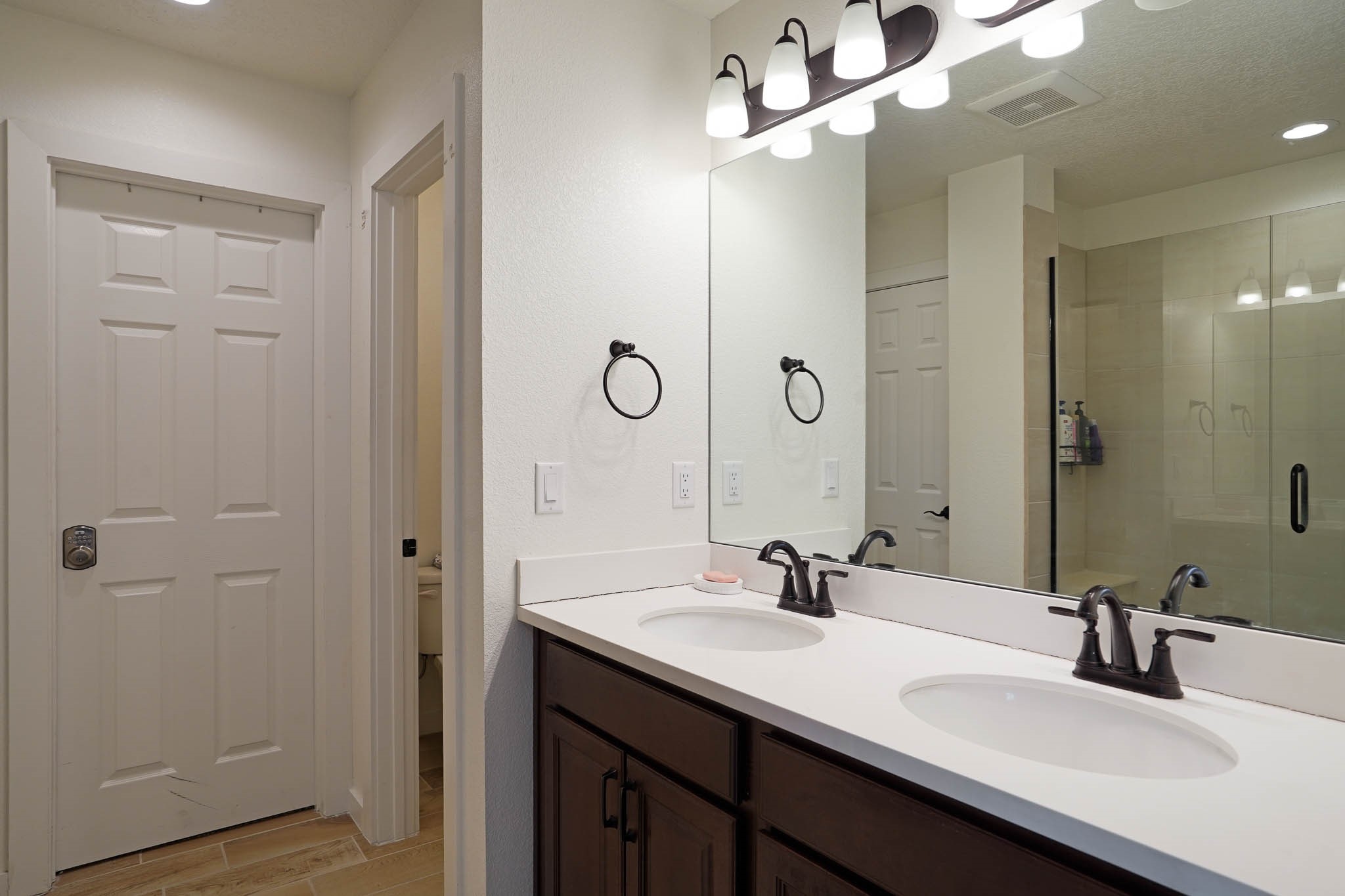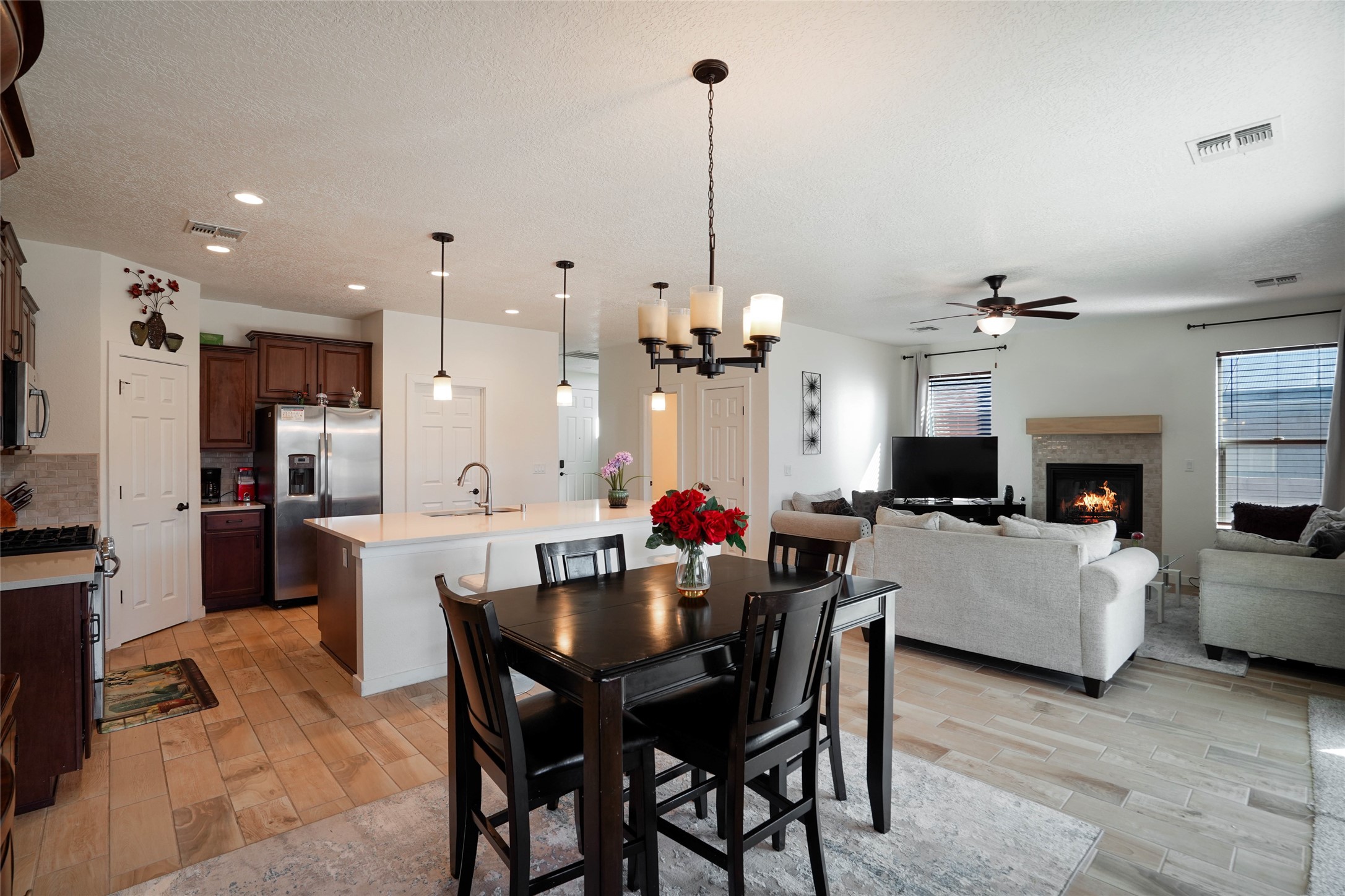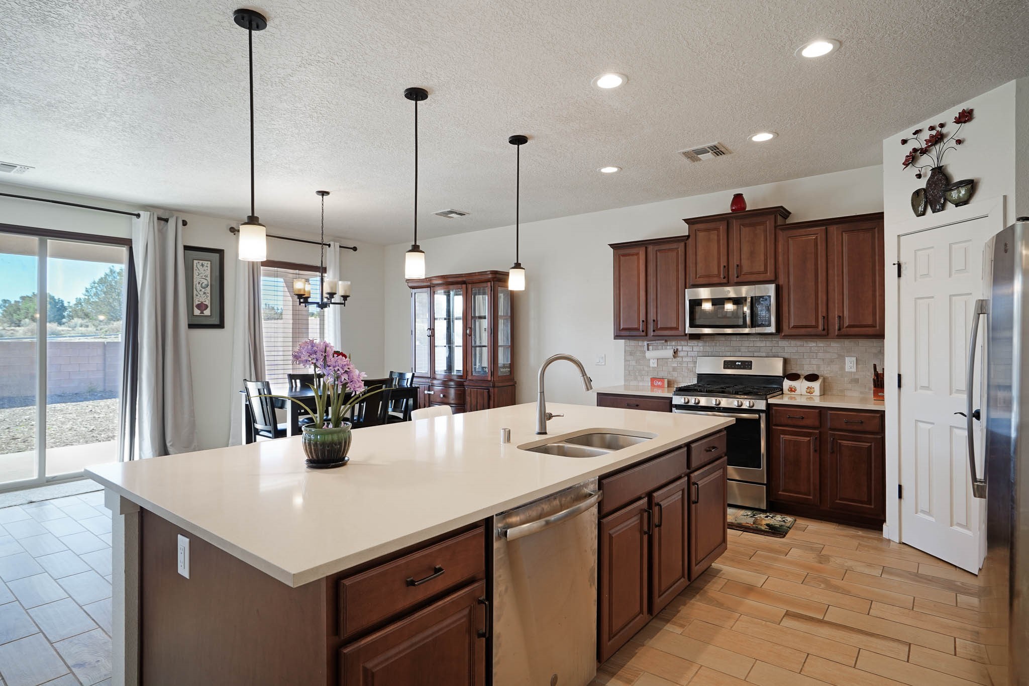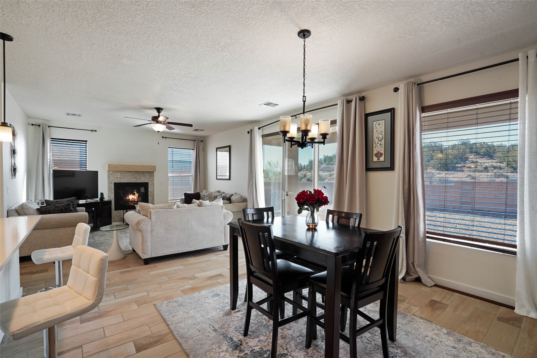 Deluxe 5 year new resale in desirable Mirador neighborhood in the heart of White Rock, close to Los Alamos National Laboratory! Step into comfort w/this thoughtfully designed 4 bed/2.5 bath ~1900sf "Cougar" layout on two levels of living space. Main level features sleek open eat-in kitchen w/marble counters, maple cabinets, stainless steel appliances, & generous walk in pantry. Also separate dining area, bright 'n wide living room w/South + East exposures, half bath, bonus storage room, and direct access to back portal + fully fenced backyard. All 4 bedrooms up w/primary suite featuring private balcony w/mountain views, double sink + walk in shower bathroom that leads to walk in closet. 2 car garage + driveway parking all on a quiet dead end street in a peaceful, scenic community close to parks, trails, & local amenities. Whether looking for a forever home, versatile investment property, or a part time in-town spot - this home presents an outstanding opportunity to own in a special location. Eligible veterans may qualify to assume current VA loan and realize significant savings at a low interest rate!