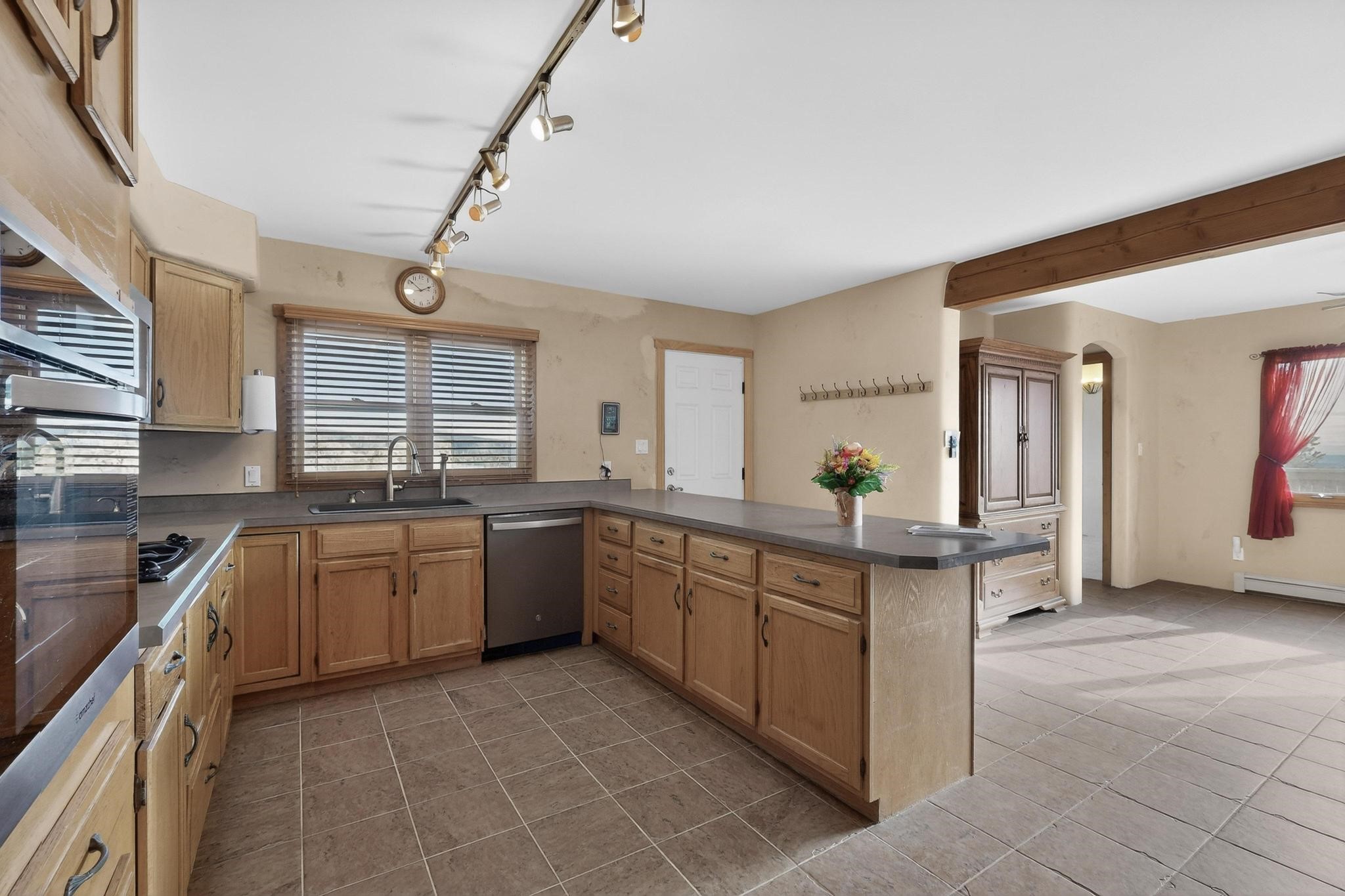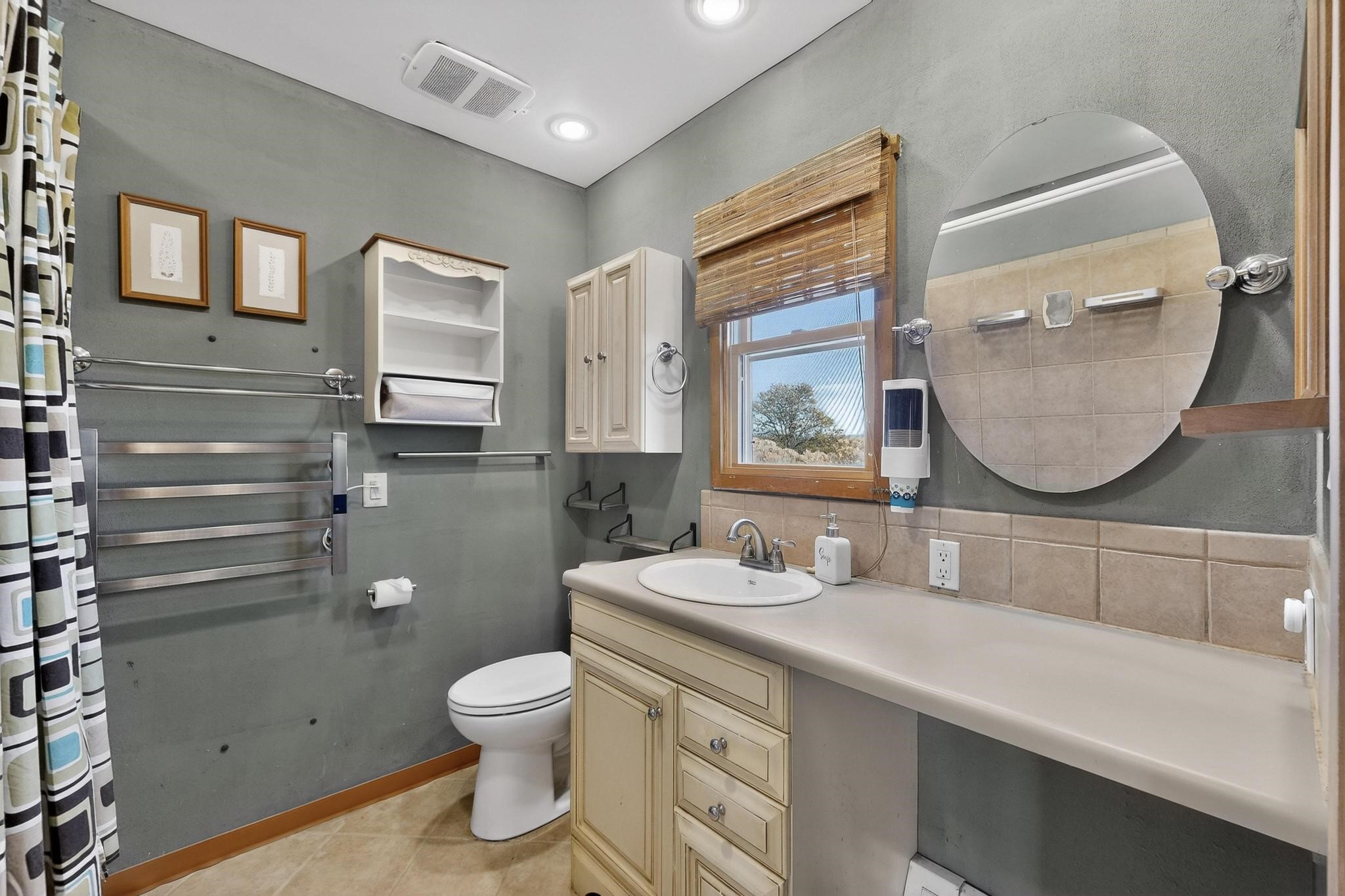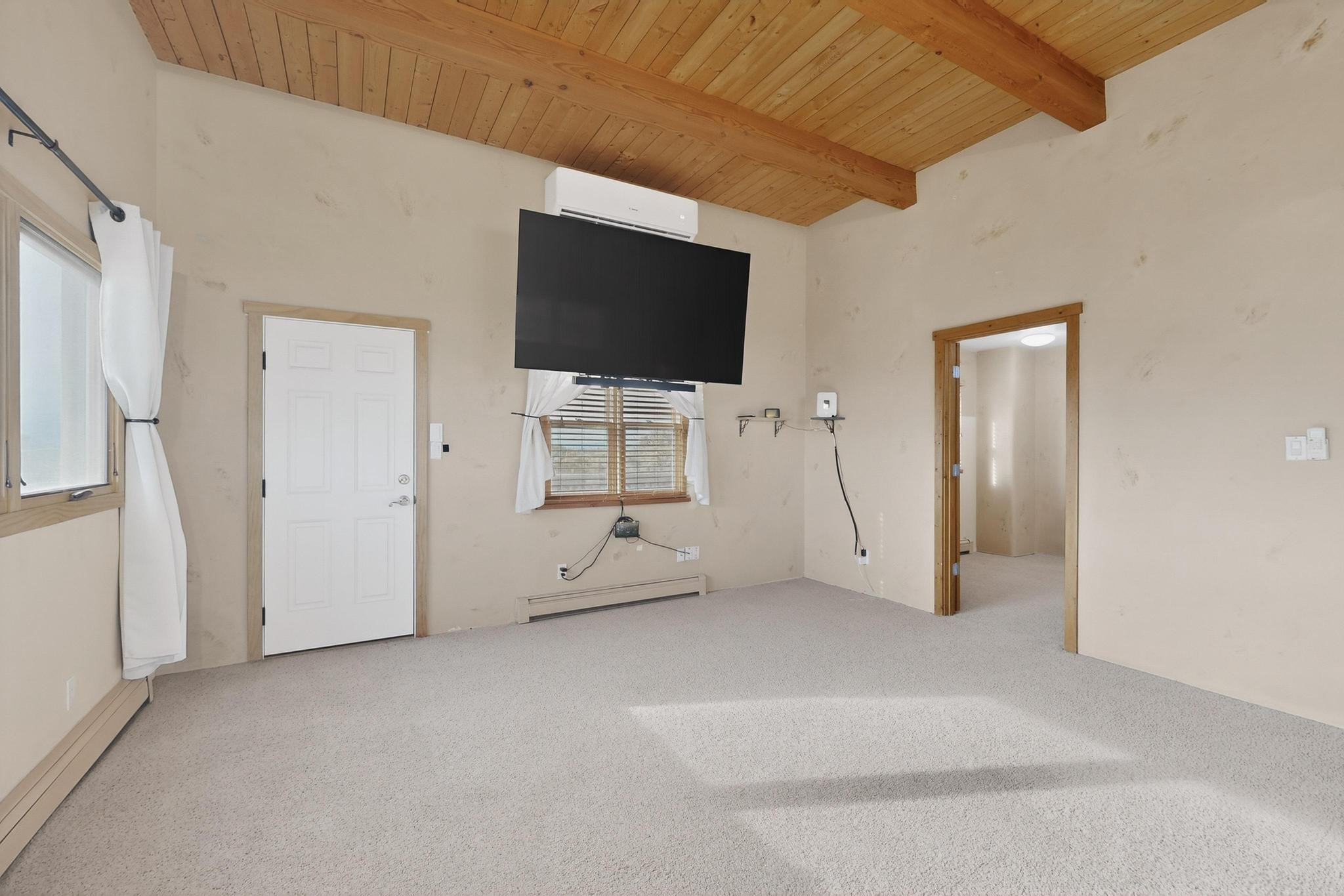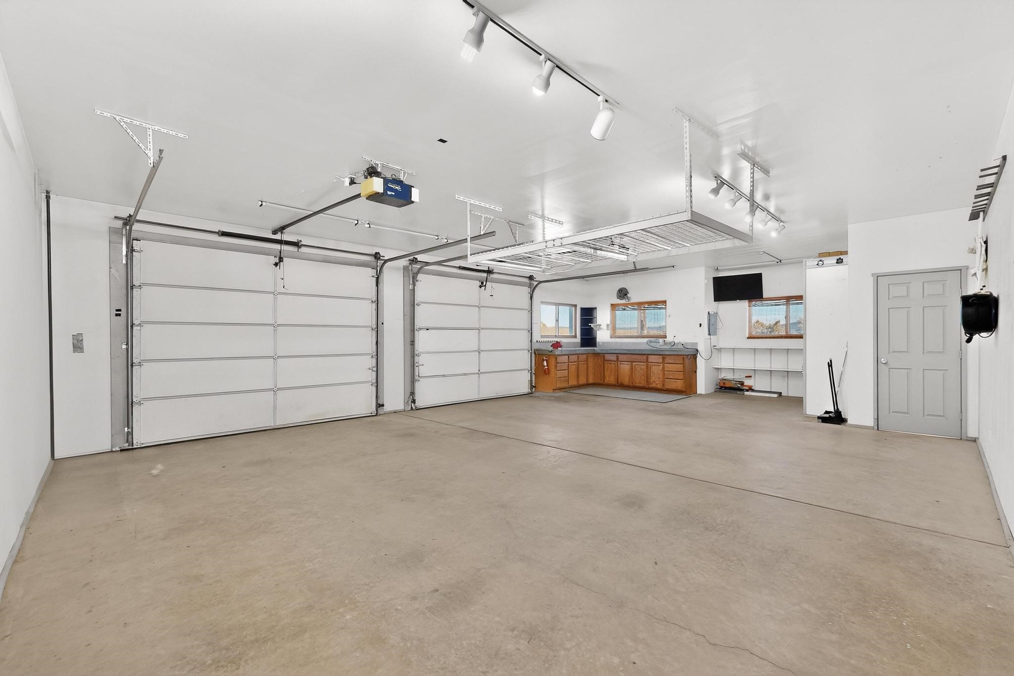 Move in Ready! Priced to Sell. Wonderful passive solar trilevel design nestled on a hilltop with decks and a romantic lighted gazebo to enjoy the sweeping Sangre's and Pecos mountain views. A flexible floorpan with the owners suite, kitchen, dining and living areas on the main level. A TV / family room, and an office upstairs with a view deck. A walk out lower level includes 2 guest bedrooms, a full bath and laundry. The 36' x 29' finished garage also has a workshop and storage room. In 2023 the stucco and roof were replaced, 3 Bosch mini splits added, a brand new tankless hot water heater, plus new windows and storm doors, 2 trex/wood decks, rain downspouts and the kitchen appliances. In 2024 the well pump was replaced, and there is a 1500 gallon underground cistern. The underground 500 gallon propane tank is owned, the hot tub is ready with fabulous views. All this on 5 acres, No HOA, horses and chickens welcome, only minutes to Eldorado area local shopping and services, or into historic Santa Fe.