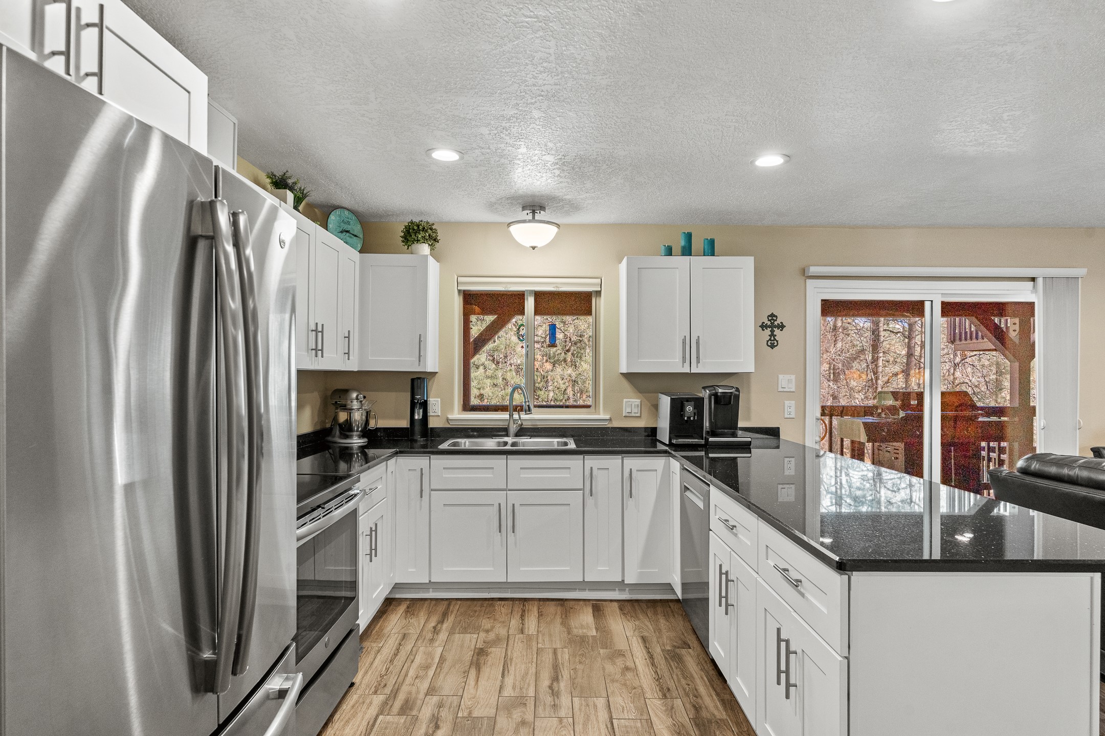 Beautifully remodeled townhome with a desirable multi-level floor plan, multiple decks with scenic views, mini split air conditioning, and a bright loft to top it all off. Welcome to 998 Alamo!Nestled among towering pines, this home offers a peaceful sense of retreat while still showcasing lovely views in North Mesa. Upon entry, you're greeted by updated recessed lighting and flooring that flows seamlessly throughout the main level. Just around the corner, a formal dining area opens to an inviting open-concept layout, connecting the kitchen and living room and extending onto a spacious deck--perfect for entertaining or simply enjoying the tranquil setting. The modern kitchen is equipped with stainless steel appliances, solid-surface countertops, and a charming window over the sink with views of the pines beyond. A conveniently located powder room completes this level.Upstairs, the living quarters await! The primary suite includes an en suite bathroom with a beautifully-tiled, modern shower, as well as a private deck to enjoy views of the night sky. The guest wing features two additional bedrooms, a full bathroom, and a dedicated laundry room.The next level reveals a bright and cheerful loft with large windows, offering flexibility as a home office, reading nook, or additional living space.On the lower level, you'll find a generous recreation area set up with a hot tub--perfect for relaxing after a long day. The spacious two-car garage includes ample storage.This thoughtfully updated home combines comfort, style, and serene mountain living. Don't miss the opportunity to make it yours--schedule a showing today before it's gone!