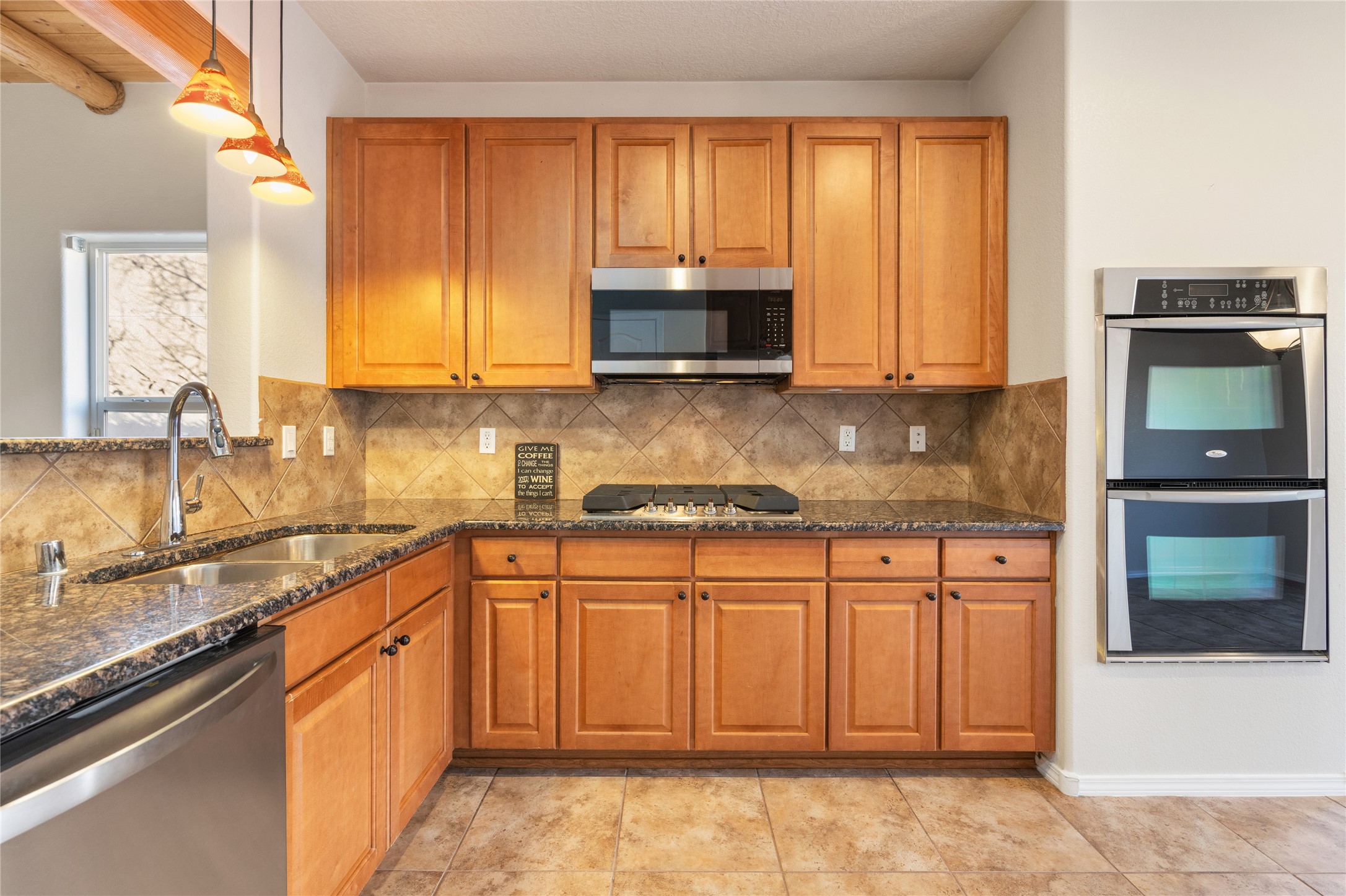Welcome home to the desirable Villa Sonata neighborhood, where comfort and convenience come together just minutes from Santa Fe's Historic Plaza.Step inside to lofty ceilings that provide the Santa Fe charm with vigas and wood beams, and a warm gas fireplace anchoring the living room, creating an inviting space ideal for both everyday living and entertaining. The open-concept floor plan seamlessly connects the living, dining, and kitchen areas, providing a bright and flexible layout that is perfect for hosting friends and family.This spacious 2-bedroom, 2-bath residence also includes a versatile flex space that can serve as a home gym, media room, office, or potential third bedroom. The kitchen is equipped with new stainless steel appliances, including a gas range, built-in microwave, dishwasher, refrigerator, and double built-in ovens.Additional features include central air conditioning, tile flooring throughout the main living areas, brand-new carpet in the bedrooms, and a new Samsung washer and dryer.The primary suite offers a generous walk-in closet, soaking tub, and step-in shower. Outdoors, enjoy a private back patio and enclosed backyard--ideal for pets, gardening, or relaxing in Santa Fe's beautiful climate.A two-car garage and a new TPO roof with a warranty provide peace of mind and long-term value.Located just moments from coffee shops, Trader Joe's, Whole Foods, acclaimed restaurants, and all the culture and charm of downtown Santa Fe, this home delivers the perfect balance of lifestyle and location.