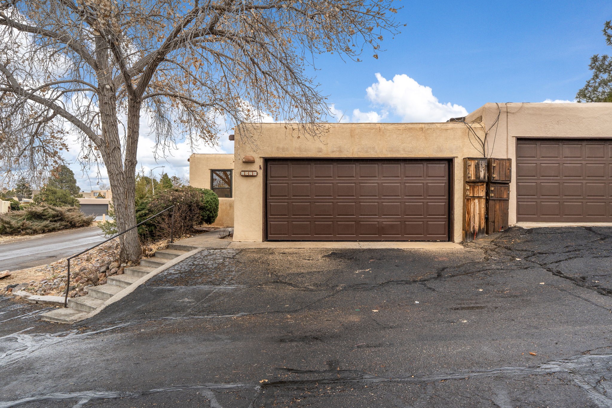 Welcome to this adorable single-story gem in coveted Park Plazas, where charm, comfort, and community come together beautifully.Step through a sweet blue gate into a private entry courtyard that sets the tone for the warmth and character found throughout. Inside, a welcoming front hall lined with classic brick tile creates an inviting first impression. To the left, a spacious dining room is bathed in natural light, featuring laminate floors and picturesque views of the Jemez Mountains -- the perfect backdrop for memorable dinners and gatherings.The L-shaped kitchen offers both functionality and style, with tile countertops, generous cabinet and pantry space, and stainless steel appliances, including a brand-new dishwasher. Whether you're preparing a quiet meal at home or entertaining friends, this kitchen is ready to serve.The living room is rich with Southwestern charm, highlighted by a corner Kiva fireplace, beamed ceiling, and laminate wood floors. Sliding doors lead to an enclosed portal that functions beautifully as a sunroom, office, or creative retreat -- a bright and versatile space to enjoy year-round.The primary bedroom is newly carpeted and features a wall of closets along with a private bath. A second bedroom and bath provide comfortable accommodations for guests or family. The entire home has been freshly painted, with new carpet in both bedrooms and the sunroom, giving it a crisp, refreshed feel inside and out. Truly move-in ready.A two-car garage adds convenience and storage.Located in the lovely and centrally situated Park Plazas neighborhood, you're just minutes from restaurants, shopping, and a short drive to the Plaza. Residents enjoy miles of walking trails, tennis courts, an off-leash dog park, community garden, children's playground, and basketball courts -- an active and welcoming community with something for everyone.This is a wonderful home in a wonderful neighborhood -- ready to welcome its next owner.