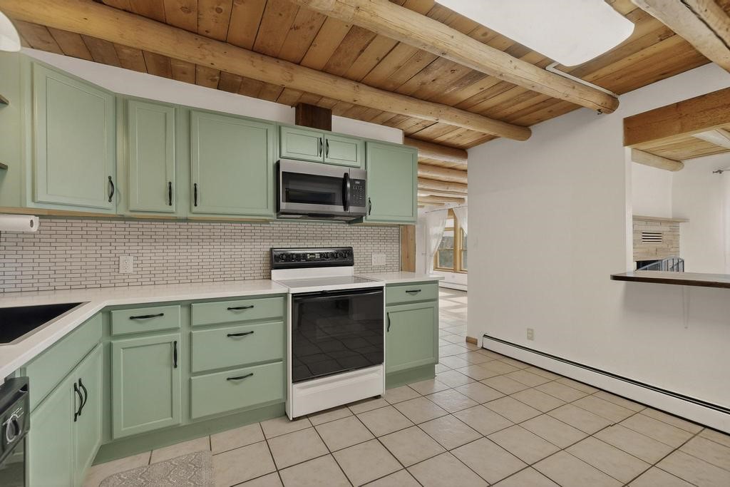 Have you ever wanted space to breathe and still be close to amenities? This zen home has that! Surrounded by native trees and plants, the mountains peak through when you're on the front deck. Enter the home to see large beams , lots of light, and SW MCM style. A passive solar dining room stays comfortable year around, and the fireplace & wood stove keep things cozy when the snow is falling. The updated kitchen has plenty of space with an eat-in bar top that looks outside, as well as a separate pantry and laundry room. Up a short flight of stairs, you'll find 4 bedrooms where the primary bedroom has a kiva fireplace to create a peaceful retreat. Outside, there are places to gather, and down the little path you find the hidden gem of a casita. Enter to find stone and brick and a luxury rustic vibe. The casita is full equipped with its own wood stove, a stackable washer/dryer, fridge, lots of light, and a separate bedroom/bathroom. Its private patio is a lovely South facing area perfect for hanging out or contemplation. In just a few minutes you're at the dog park or are on your way to the Plaza. If you're heading up to Los Alamos, the freeway is easy to access for a faster commute. Come take a deep breath and see this lovely home soon.